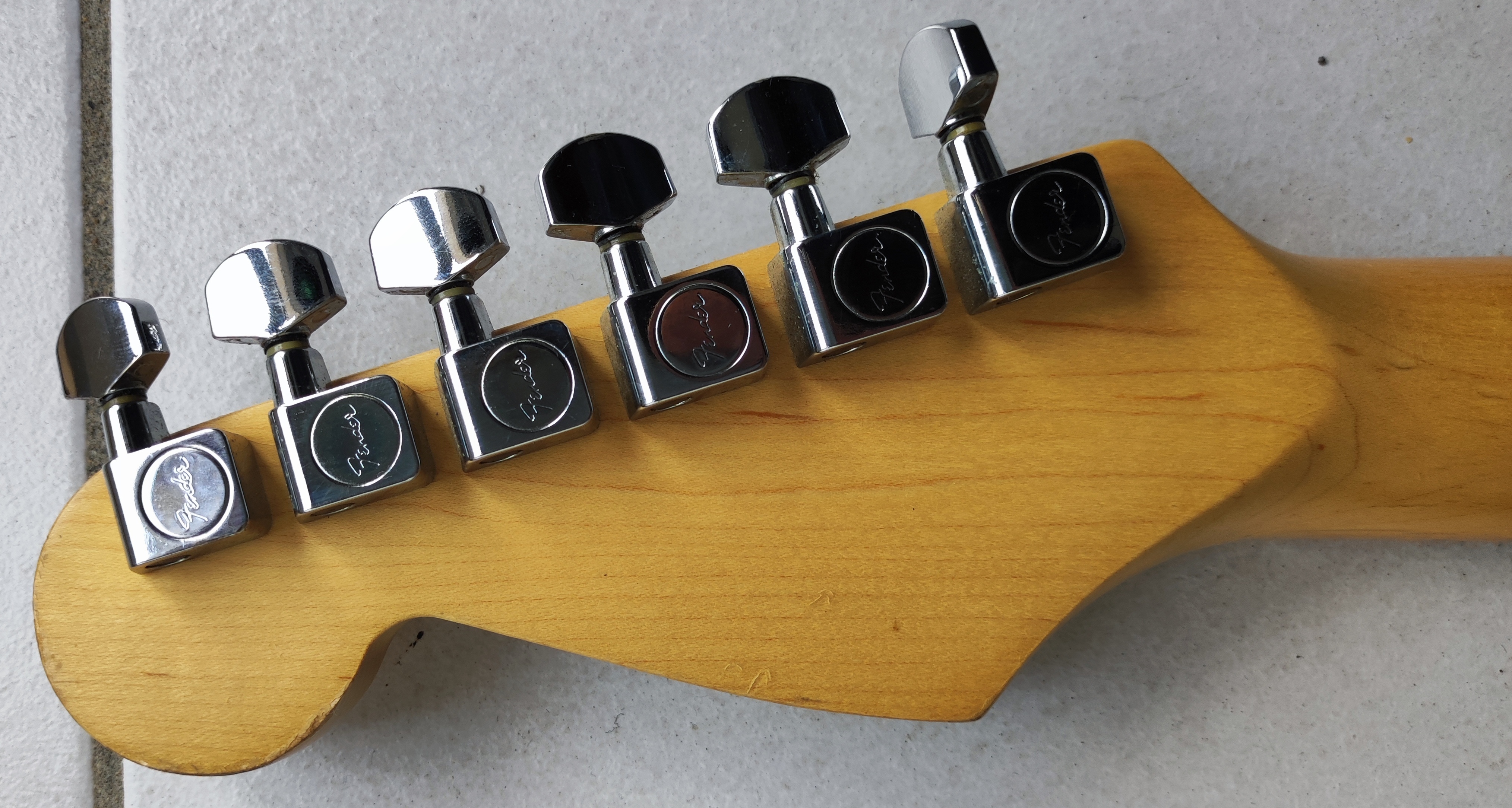 On verra tout de suite au niveau du verni du manche qu'elle n'est pas restée dans sa housse toutes ces années et qu'elle a été bien utilisée !