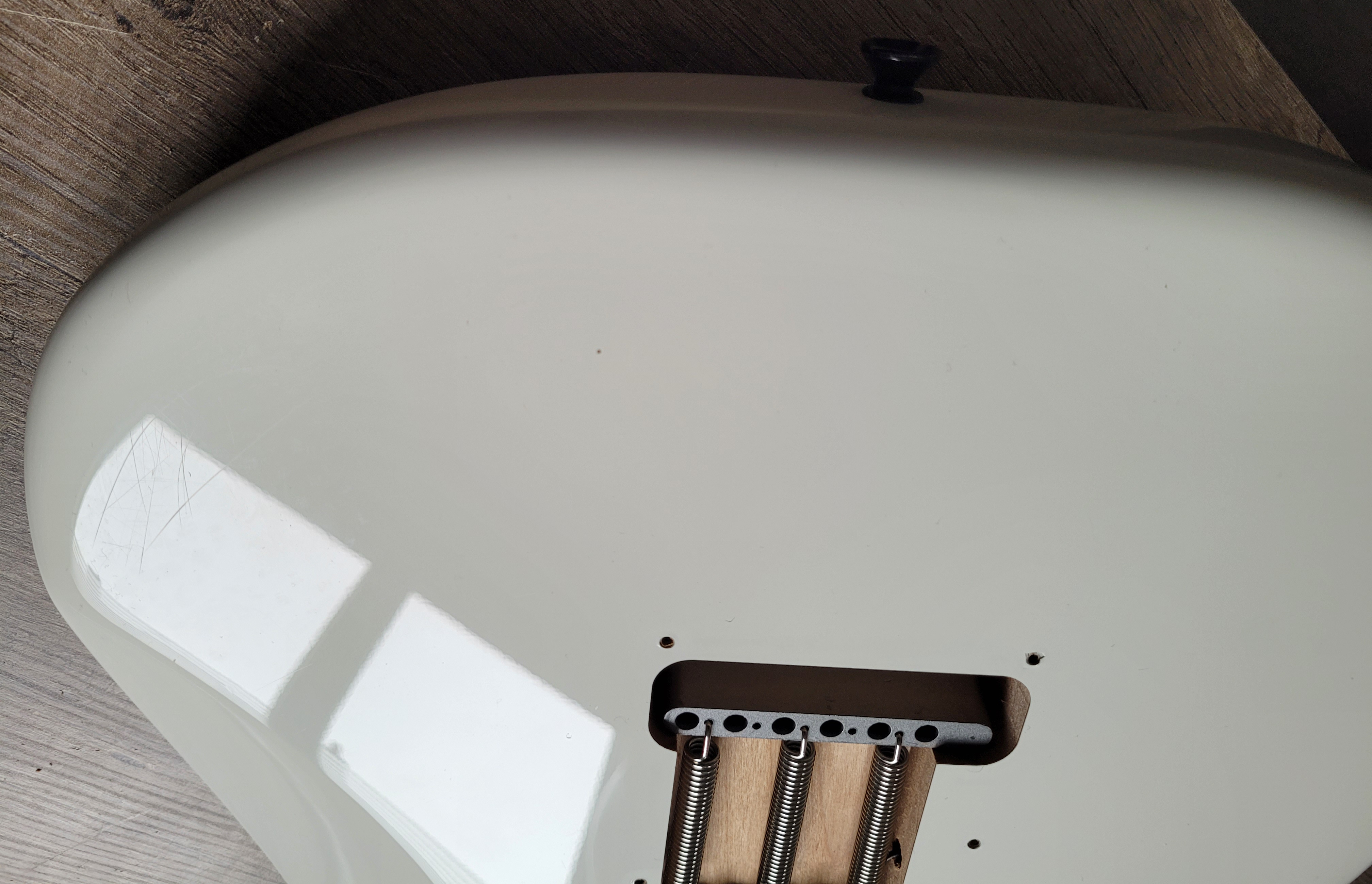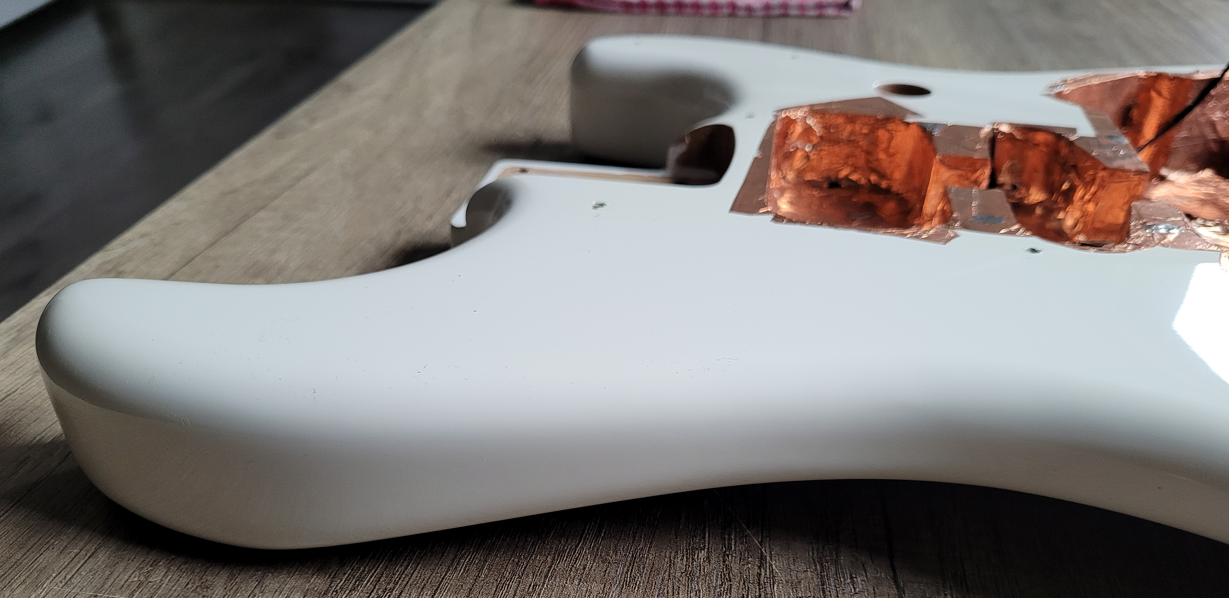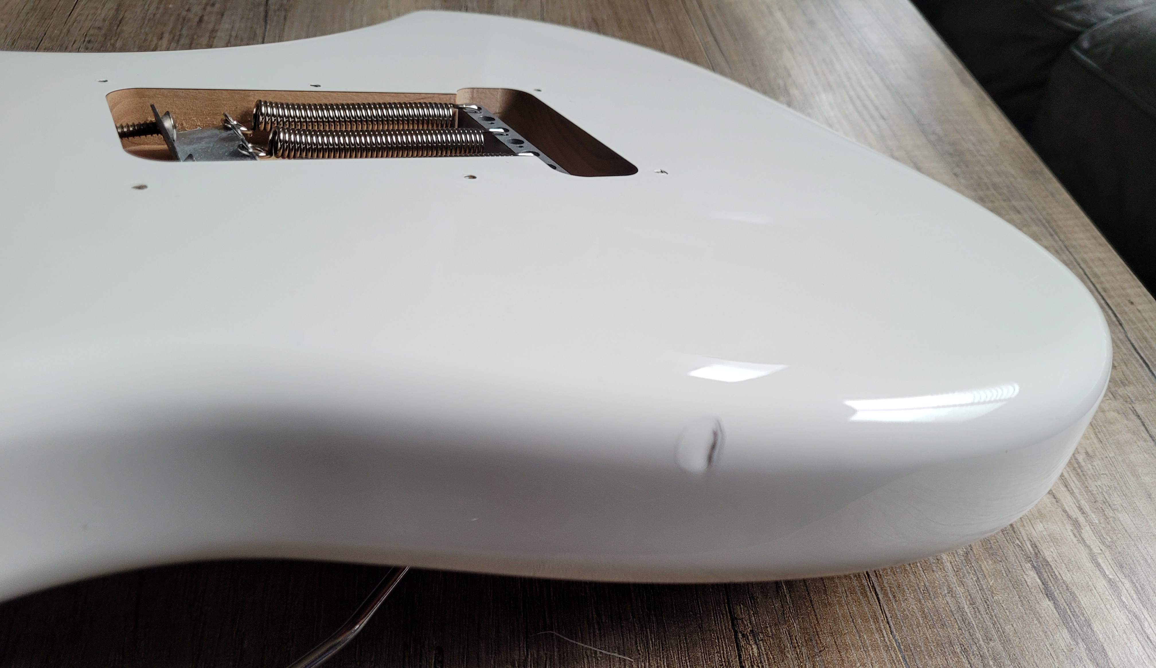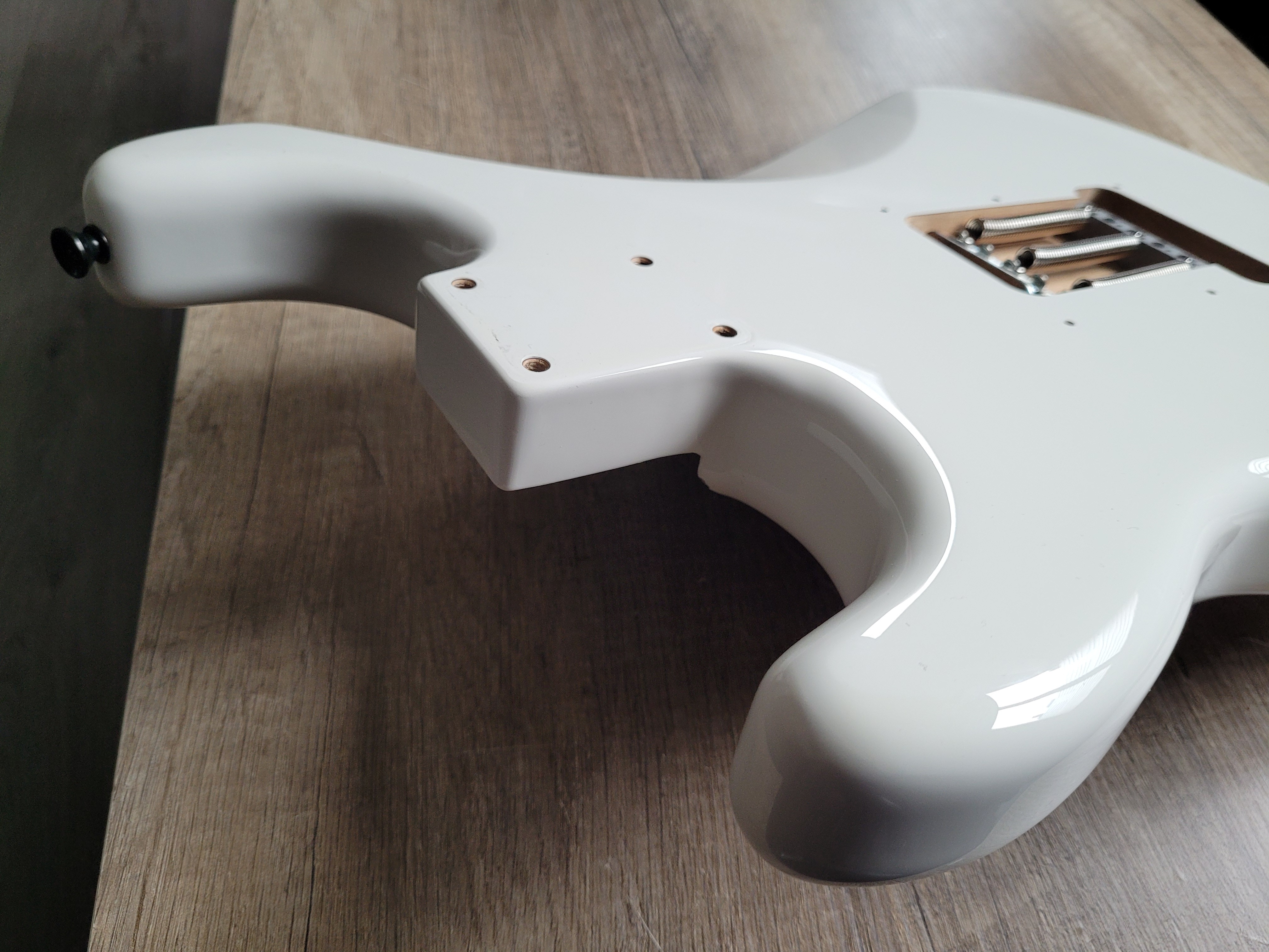 Bonjour, je vends ce corps en Aulne de Fender Stratocaster Player couleur Artic White avec Vibrato Fender 2 points.Comme vous pouvez le voir sur les photos, l'intérieur de la cavité a été recouvert de cuivre pour protéger l'électronique des ondes qui peuvent générer du bruit et il y a 2 impacts au niveau de la peinture. Le corps est en très bon état mais il a été joué, la peinture n'est donc pas en état neuf.