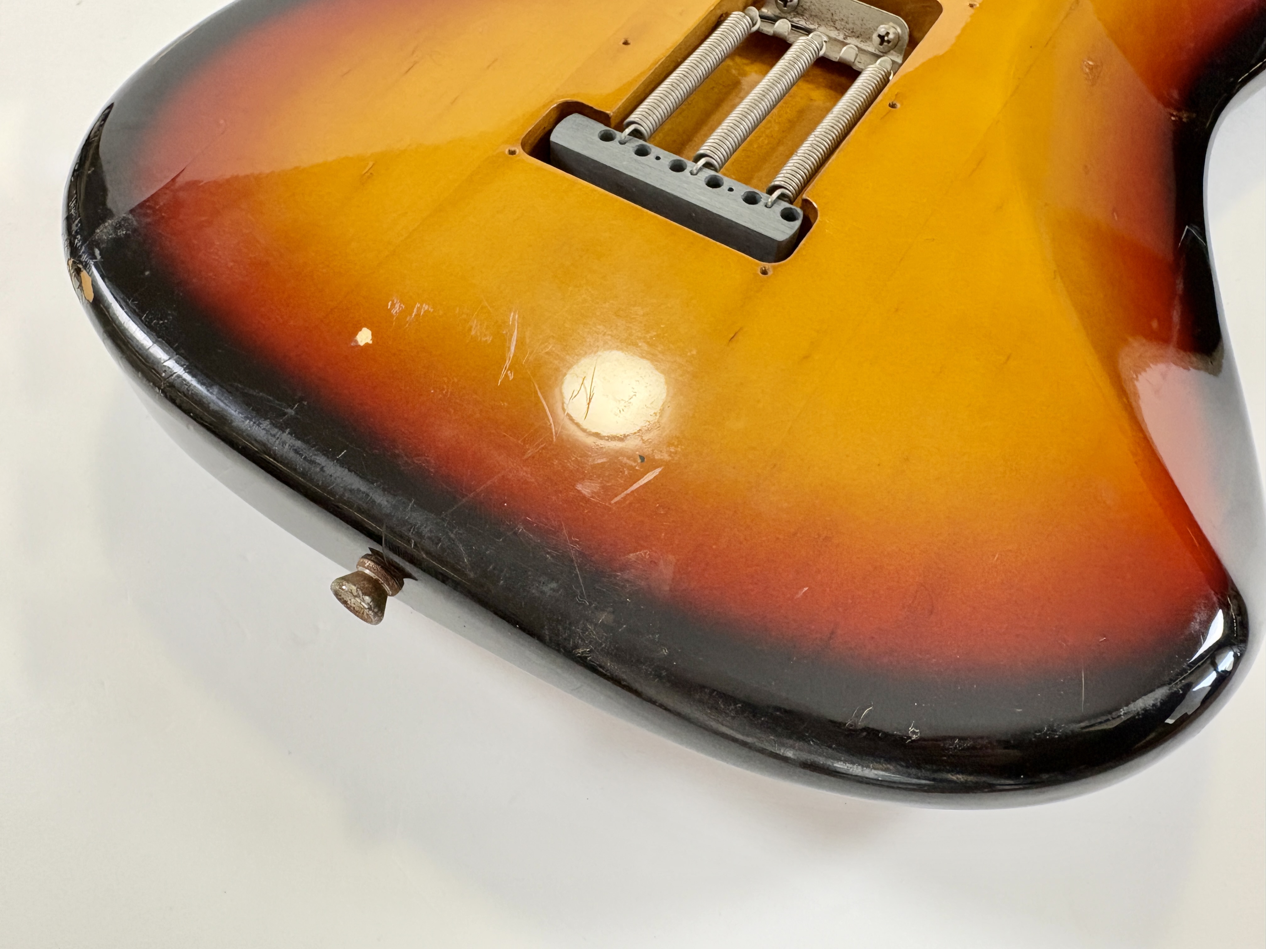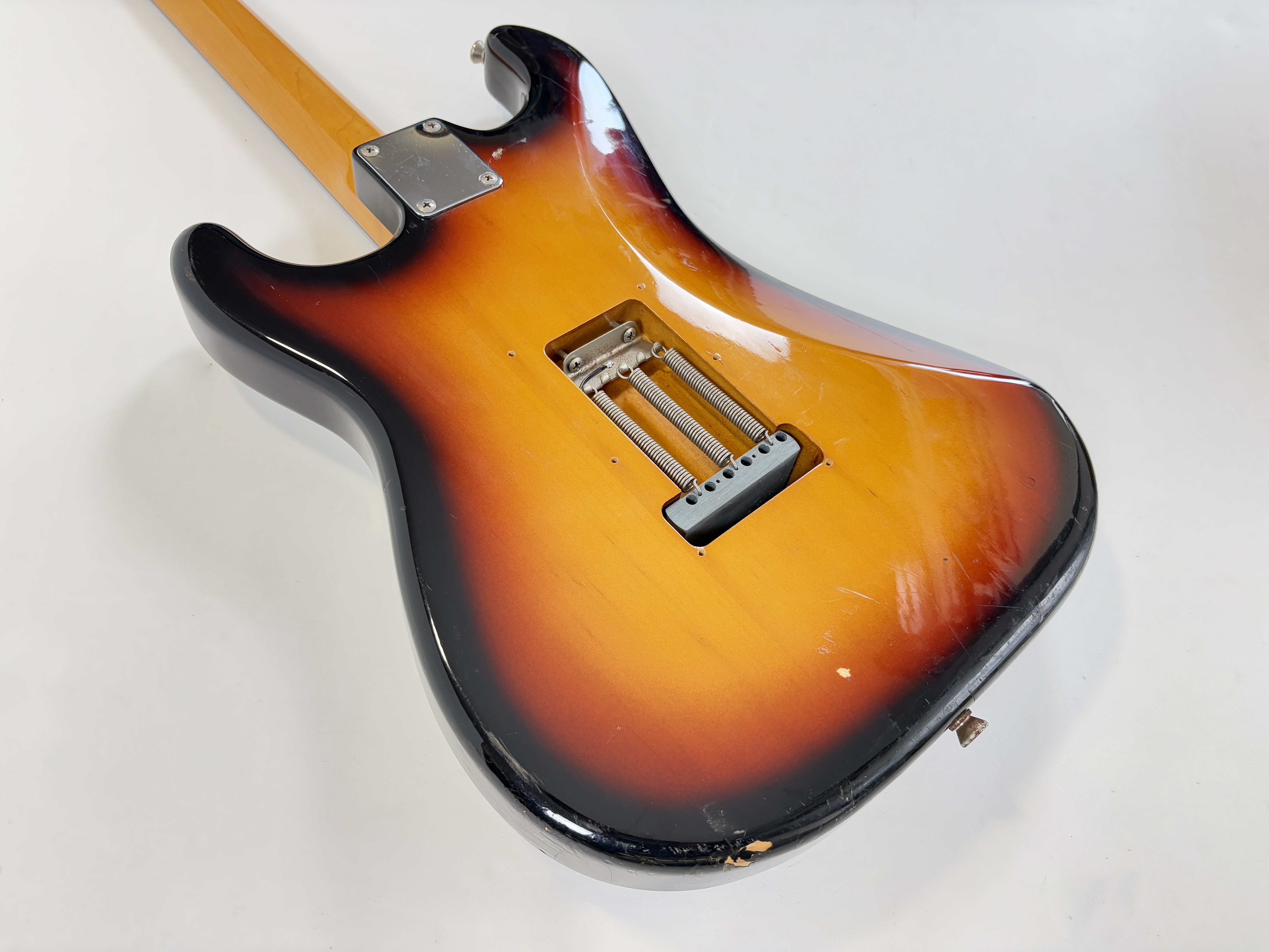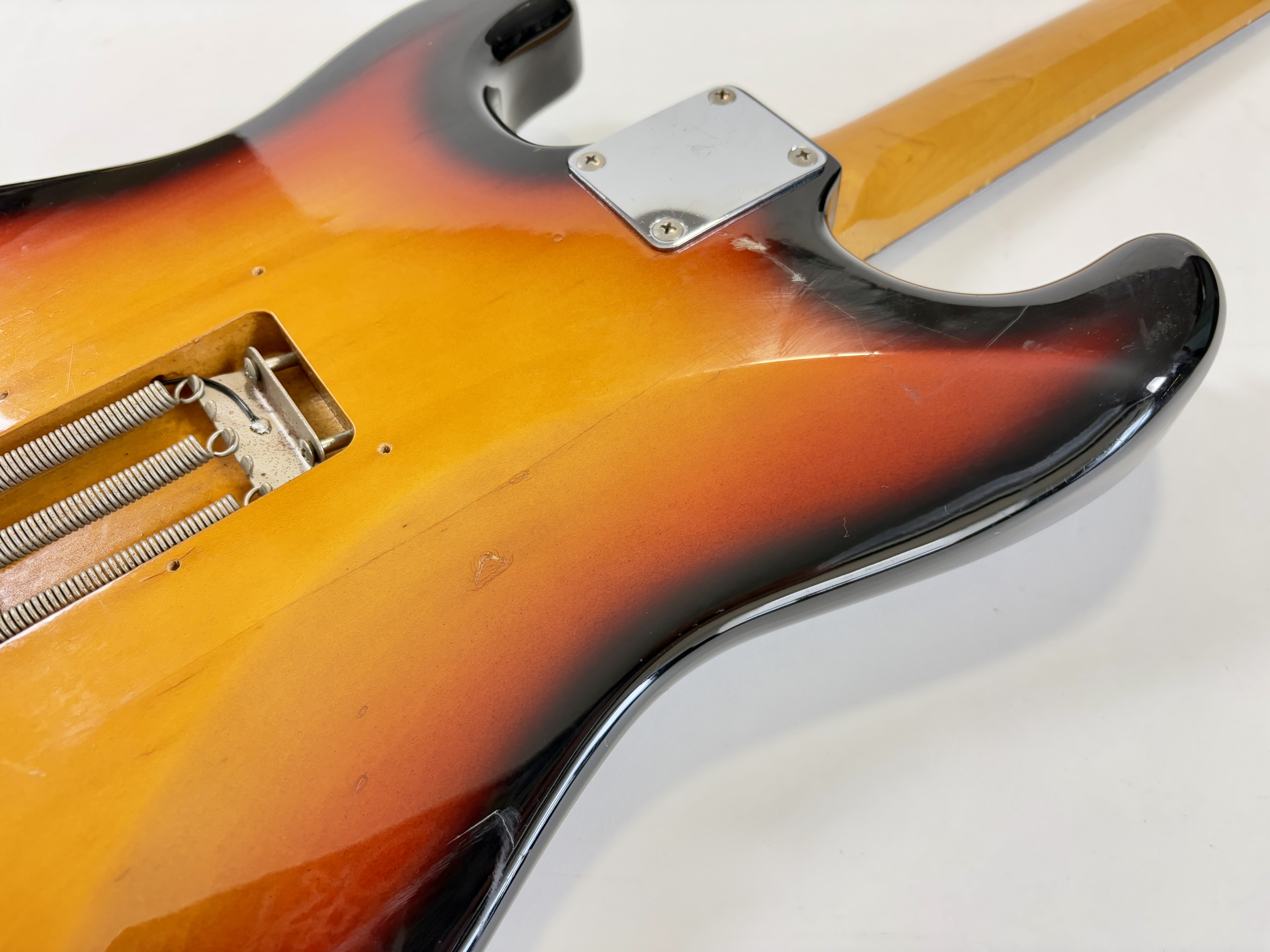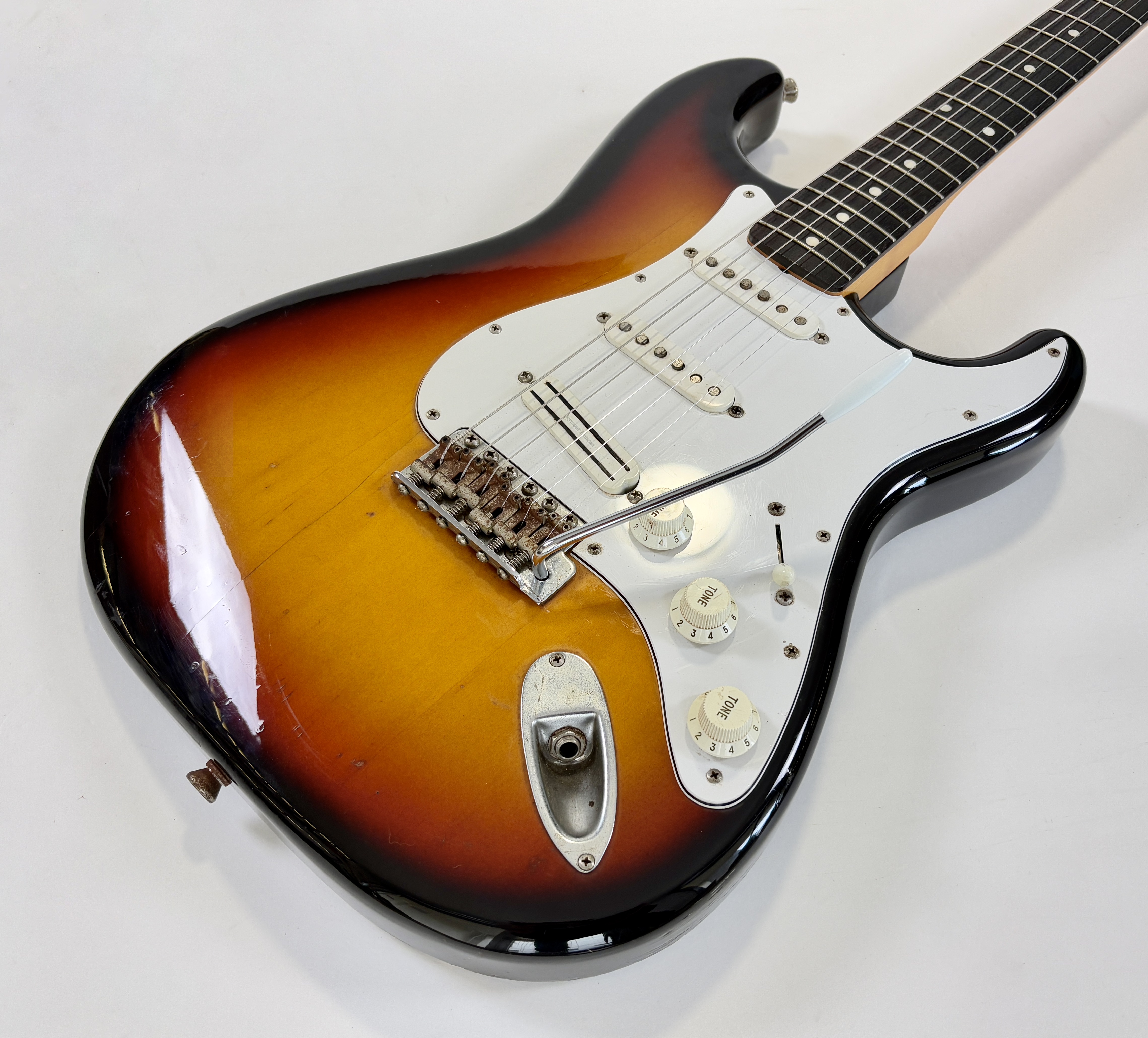 Comme d’habitude on retrouve la qualité de lutherie et l’assemblage sans faille typiquement nippons sur cette Strat faite entre 2004 et 2005. Les micros ont ici le bon goût d'être des Fender, made in USA, black bottom avec en chevalet un Seymour Duncan double format simple : SHR-1B, Hot Rails. Par la même occasion, les potentiomètres sont changés ici par des CTS. Reproduction de l'année 1962, elle s'offre ici un manche érable, touche palissandre épaisse type slab. Le dos de la tête a été signé par Paul Gilbert.Dépôt-vente, achat, vente, reprise, location.