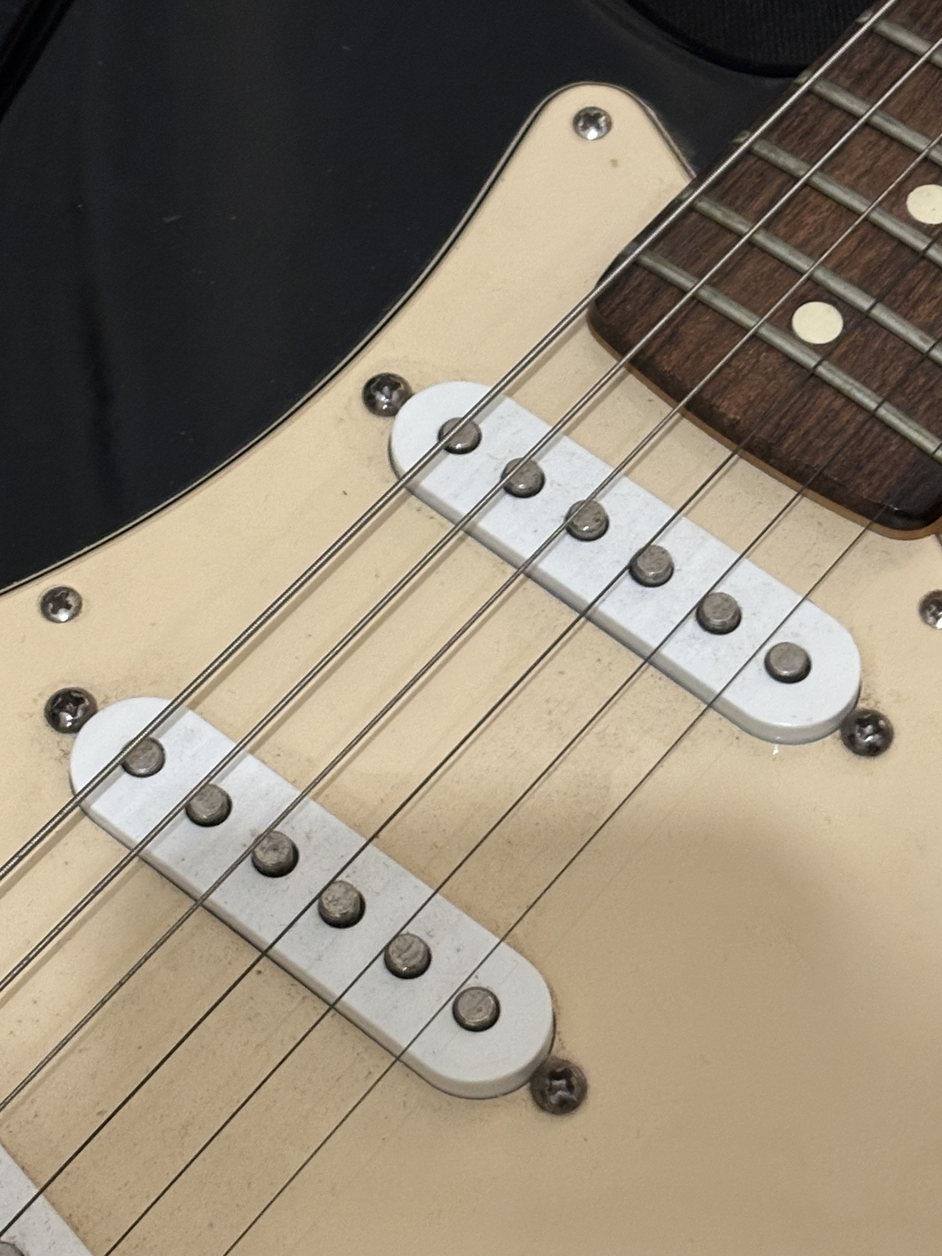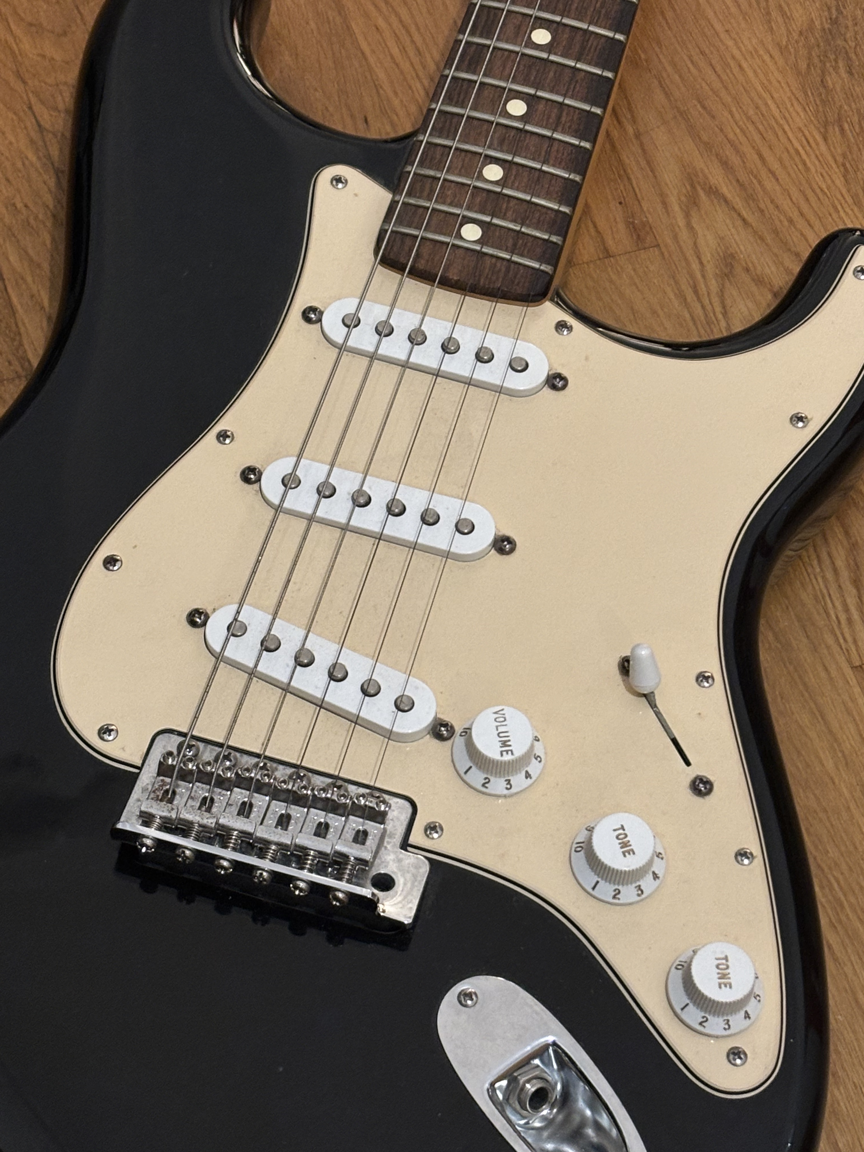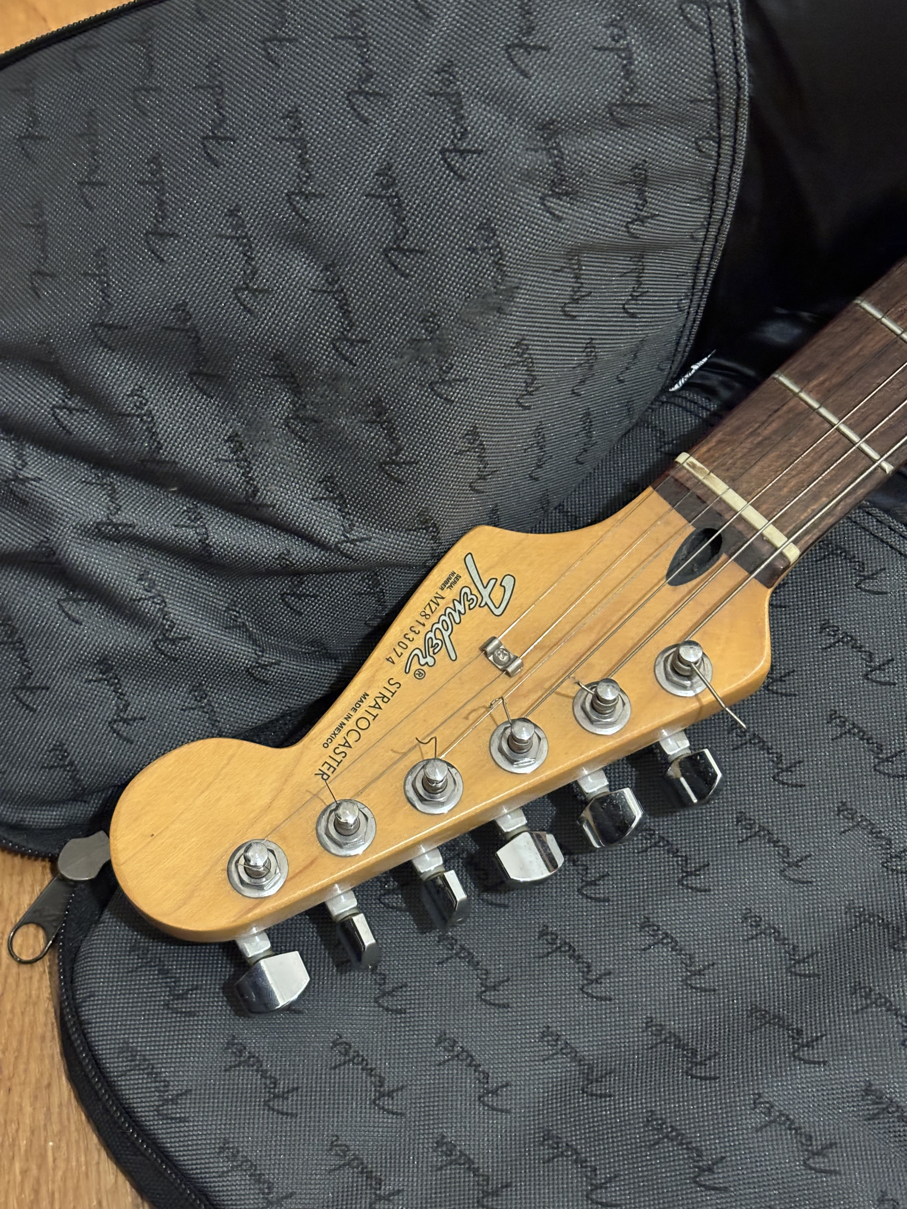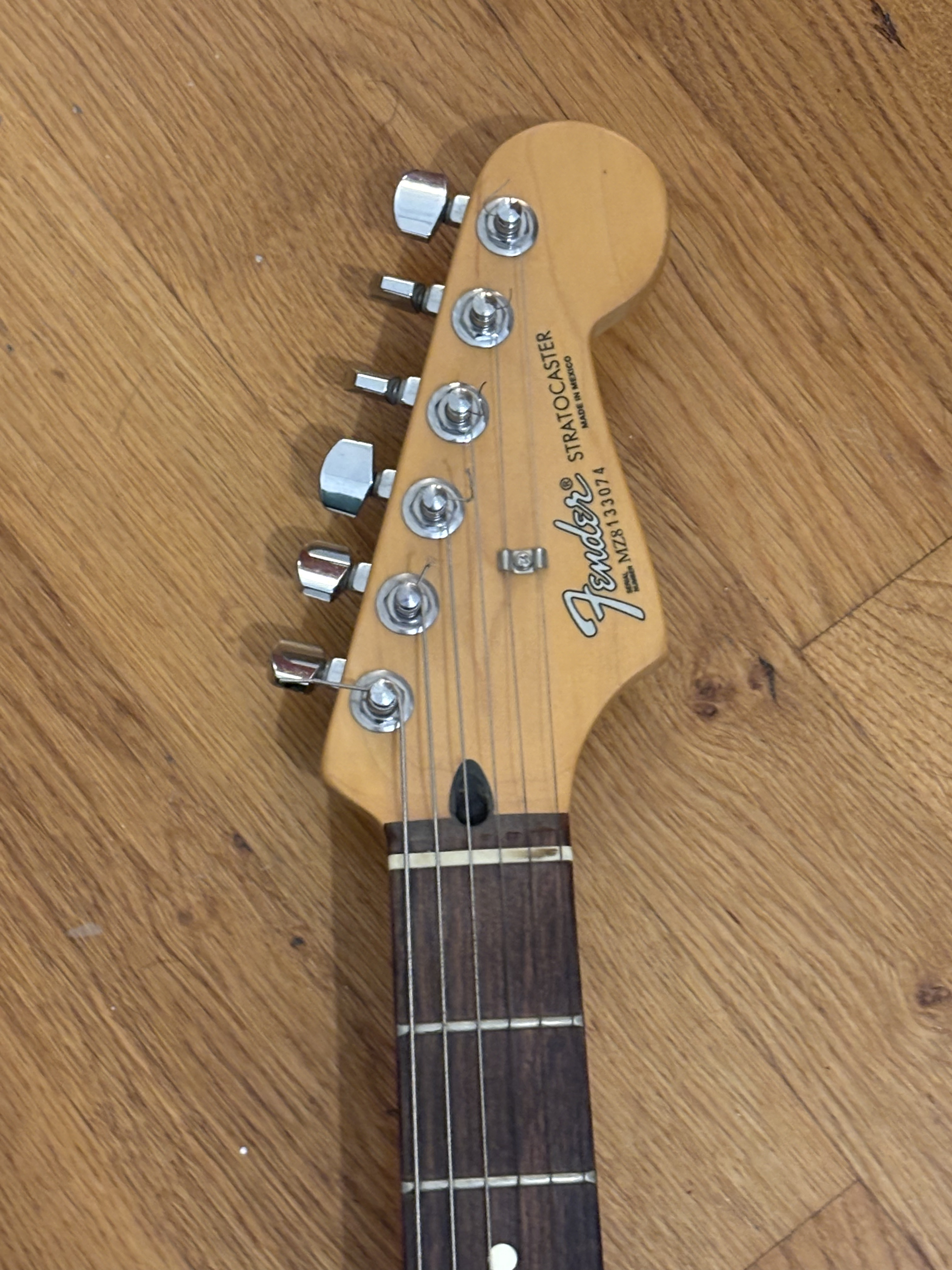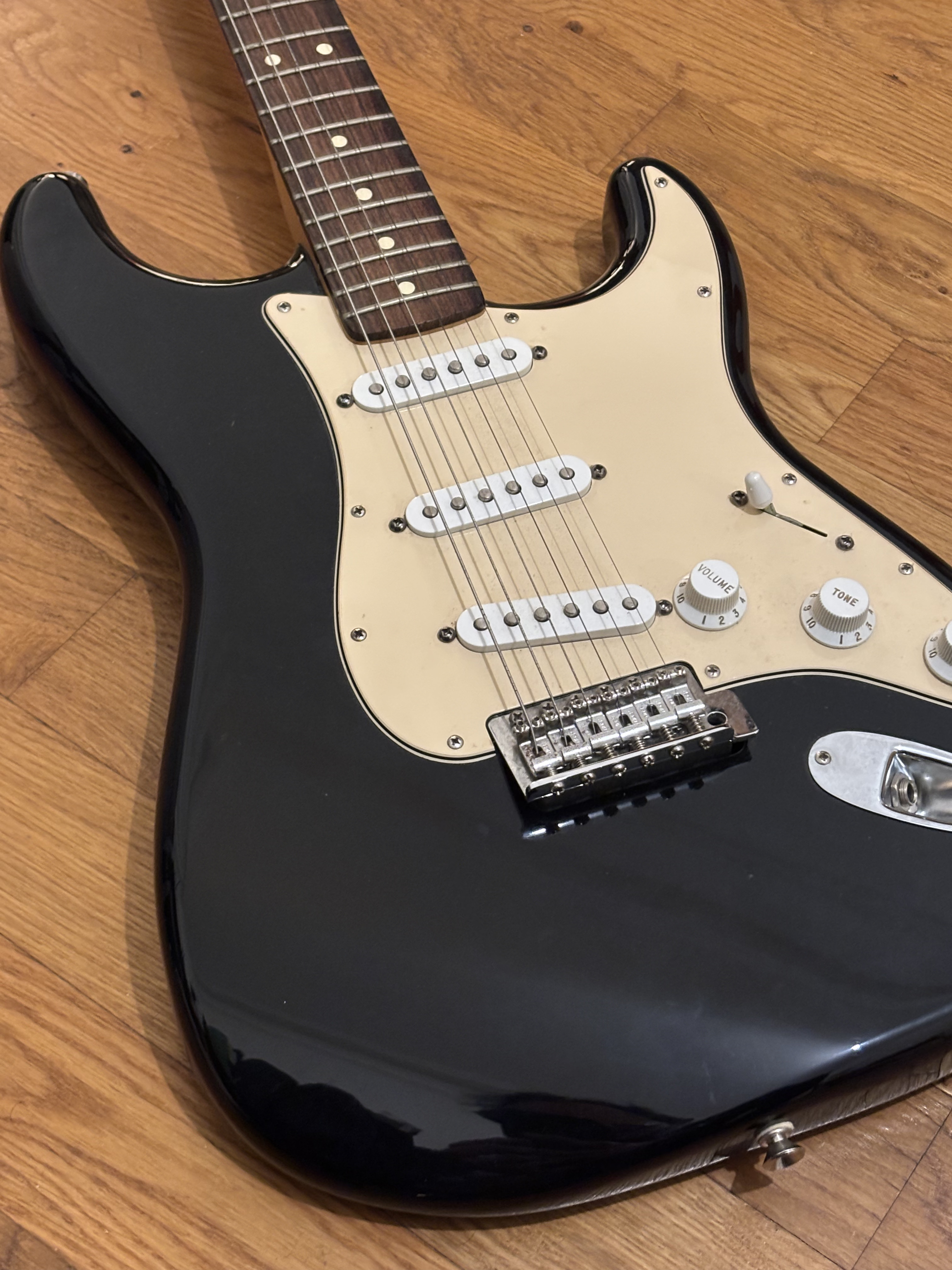 Vends Fender Stratocaster Standard "Made in Mexico" (Série MZ8 - année 2008), finition Black.C’est ma guitare d’adolescent. Elle a passé les 15 dernières années bien protégée dans sa housse sans être jouée. Elle est dans un état esthétique superbe : le blanc du pickguard et des boutons a naturellement jauni avec le temps.