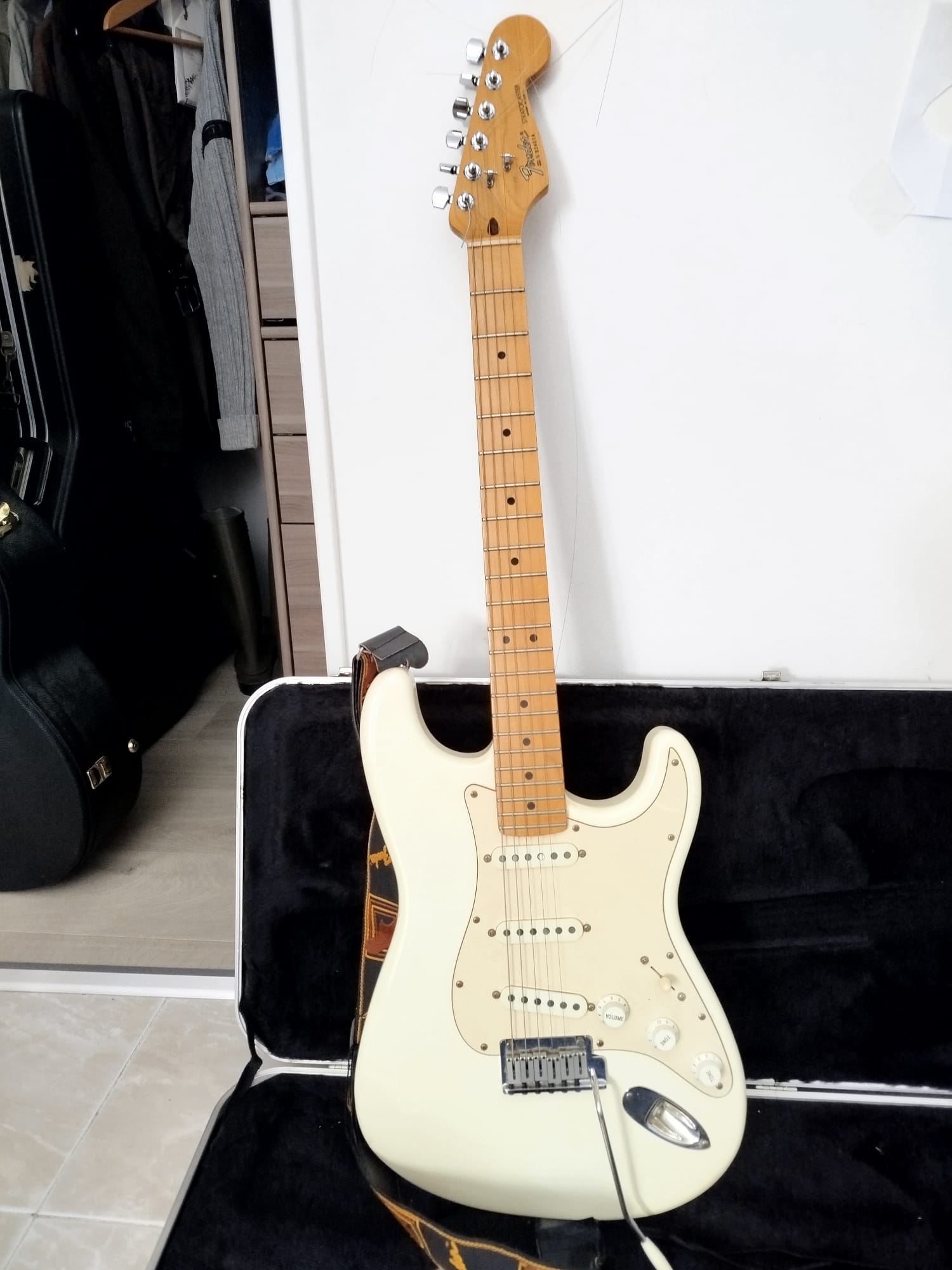 Je vends ma Fender Stratocaster USA (modèle original des années 2000), en excellent état, très proche du neuf.Elle n’a aucune marque d’usure, tous les micros et composants d’origine sont encore montés, et elle est vendue avec étui rigide Fender d’origine.