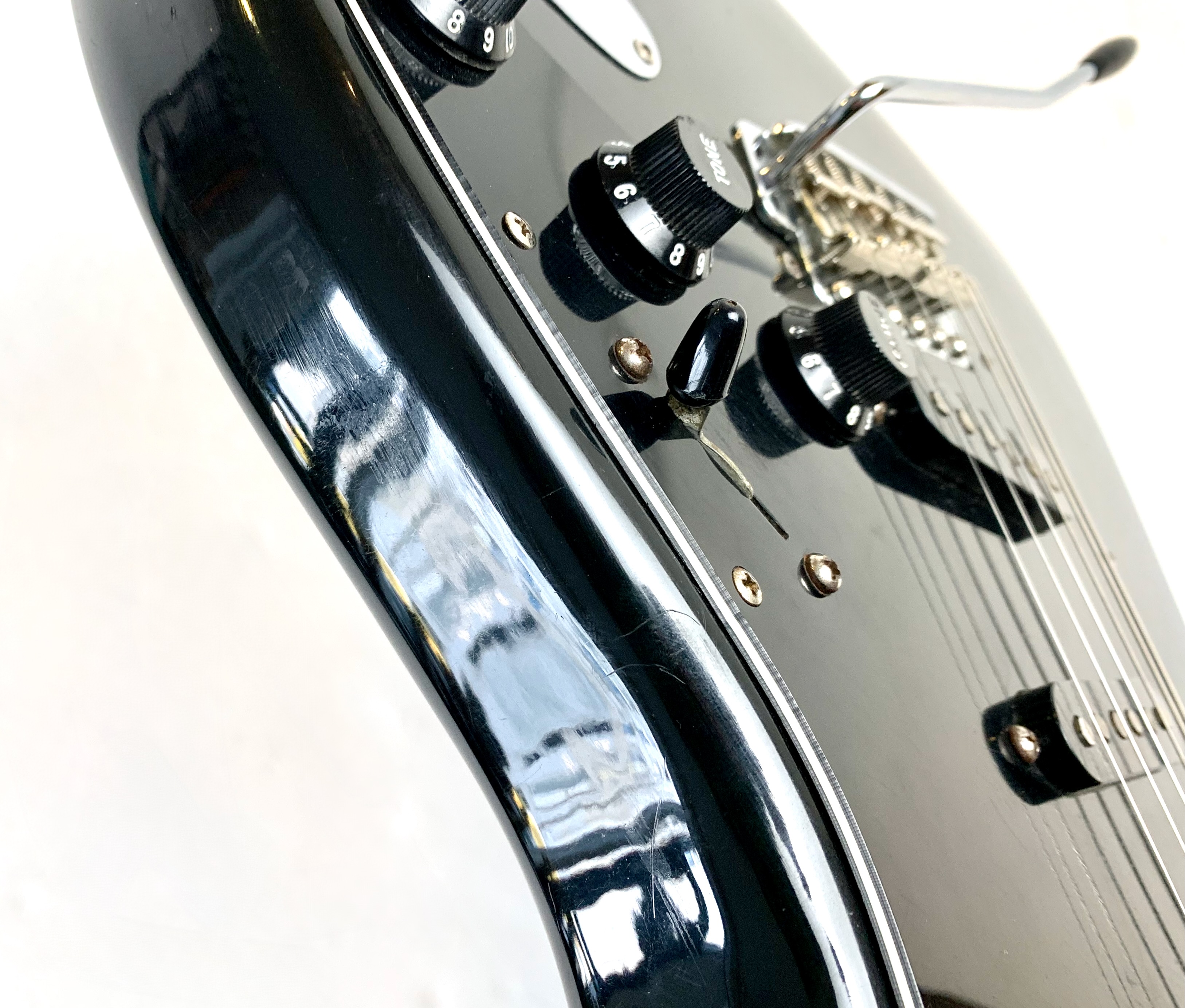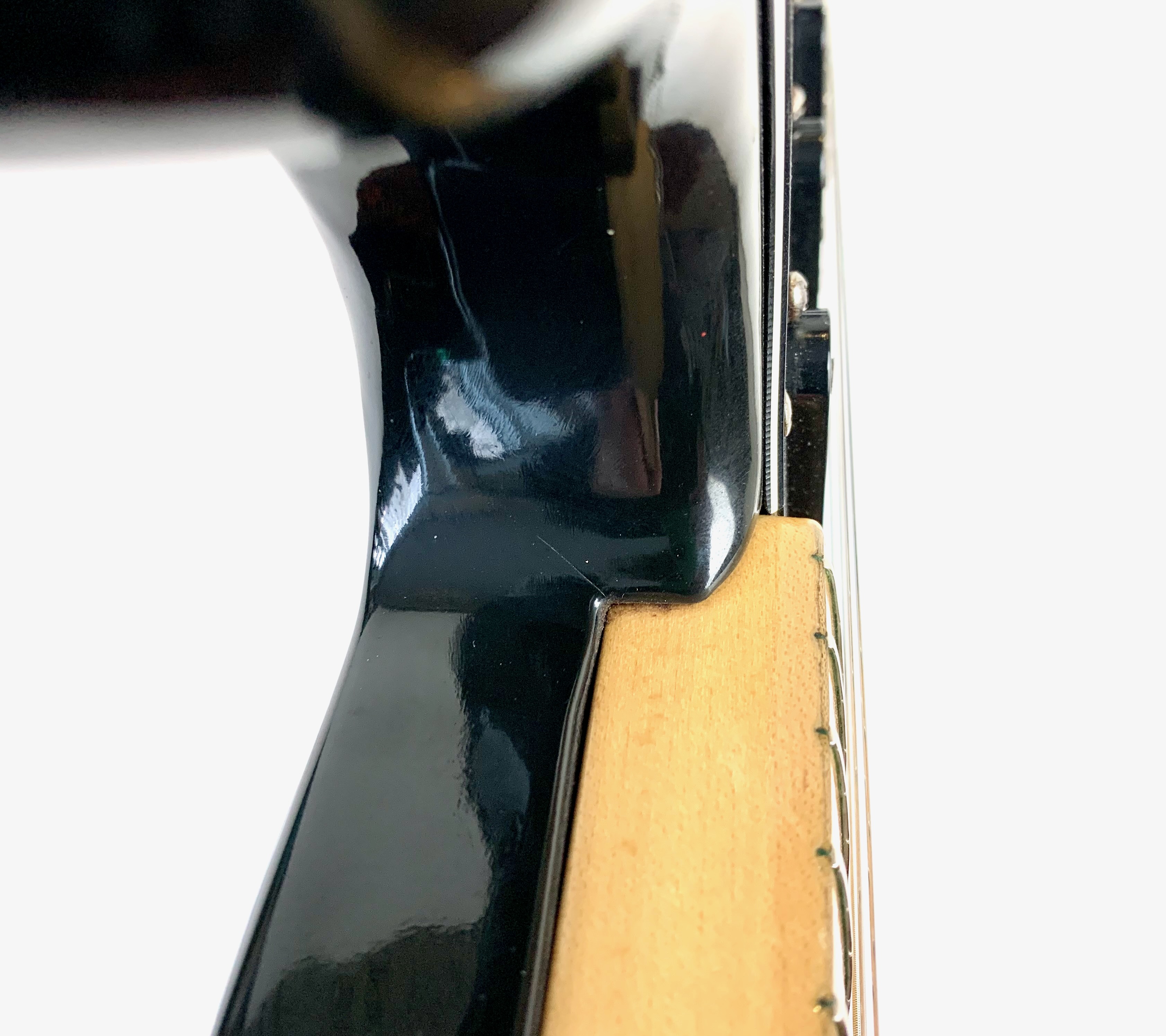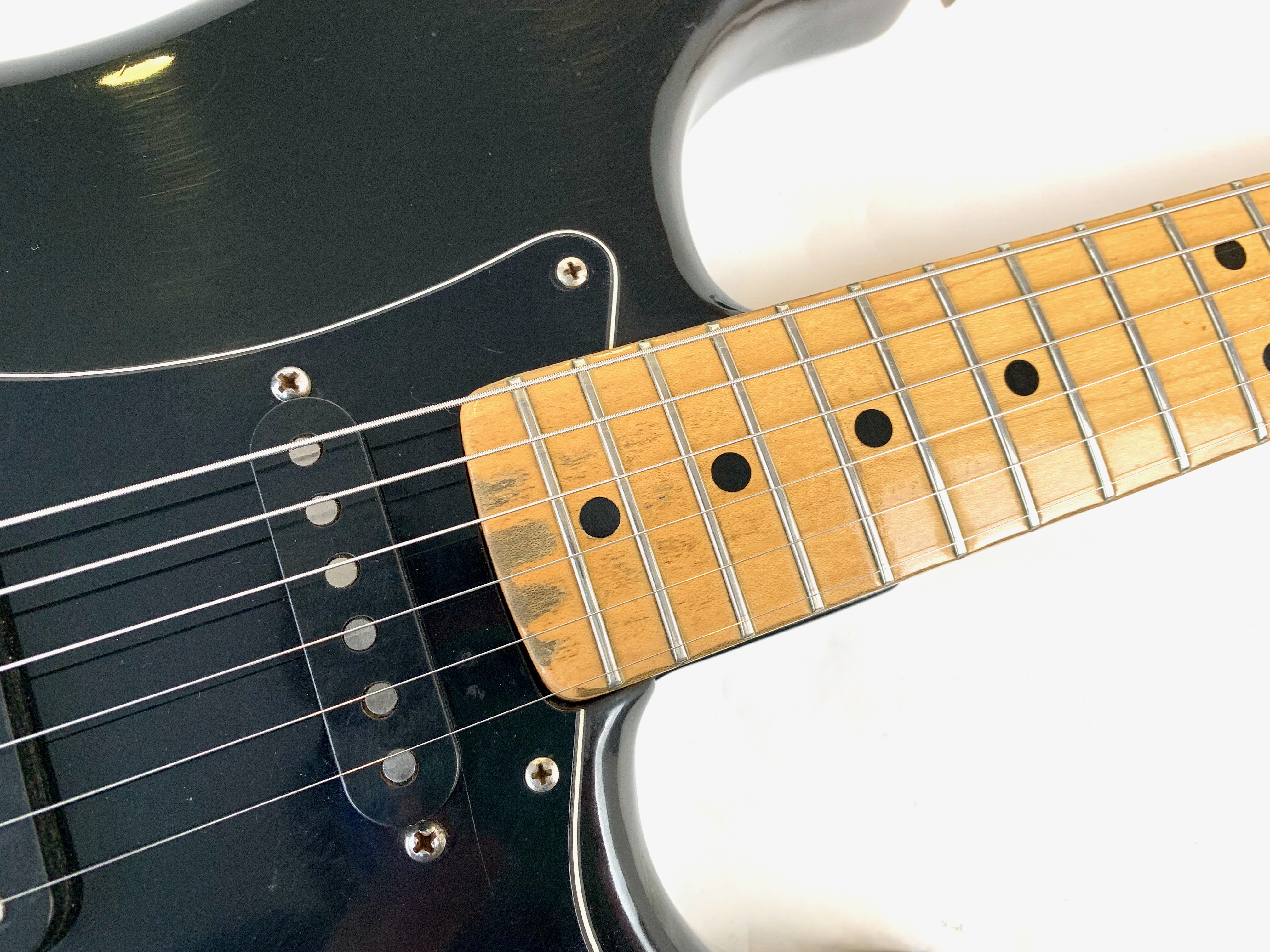 Cette Strat période CBS est en très bel état pour ses presque 50 ans ! Full black pour le corps avec un manche érable touche érable au radius de 7,25 pouces, elle a un look typique de la période, notamment grâce à sa grosse tête et son gros logo. Fait assez exceptionnel pour l'époque : elle ne pèse que 3,66kg ! Complètement d’origine hormis un étui générique.Location, achat, vente, reprise, dépôt-vente.
