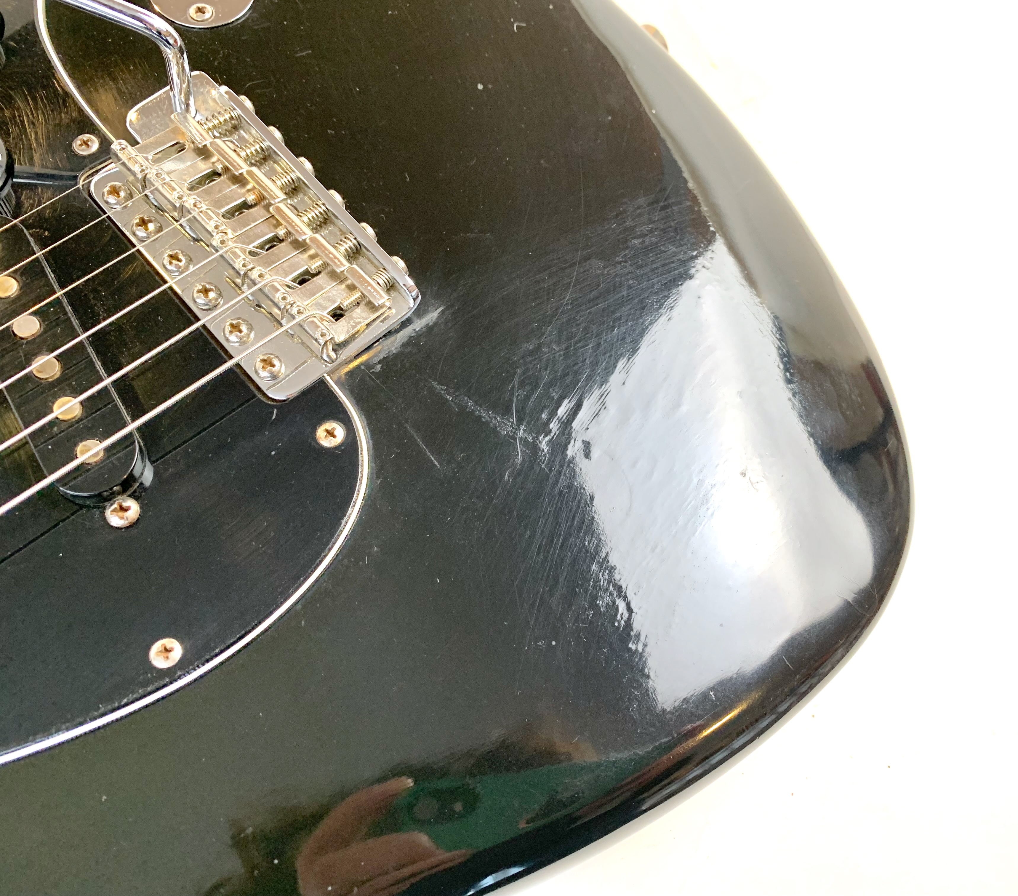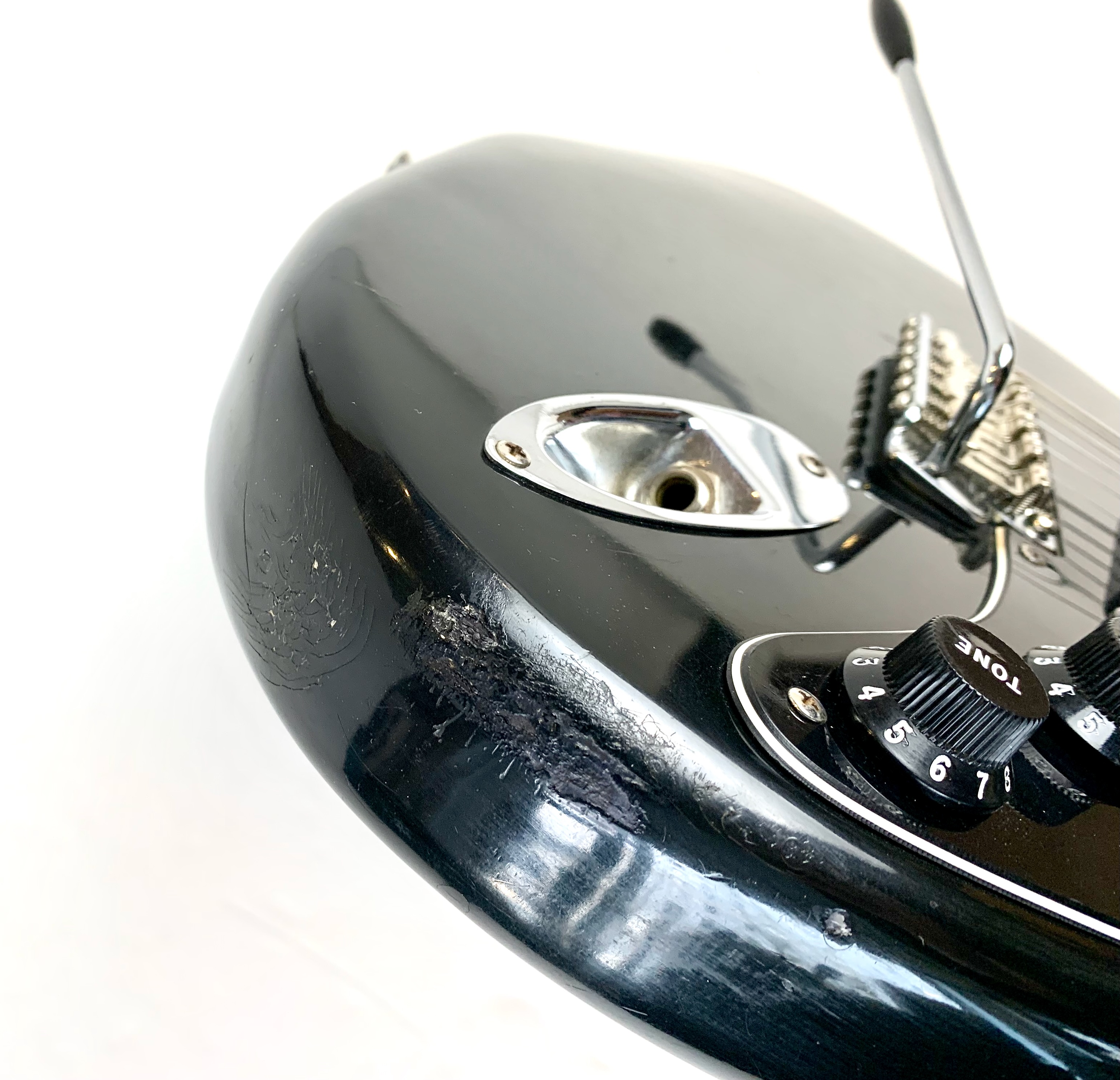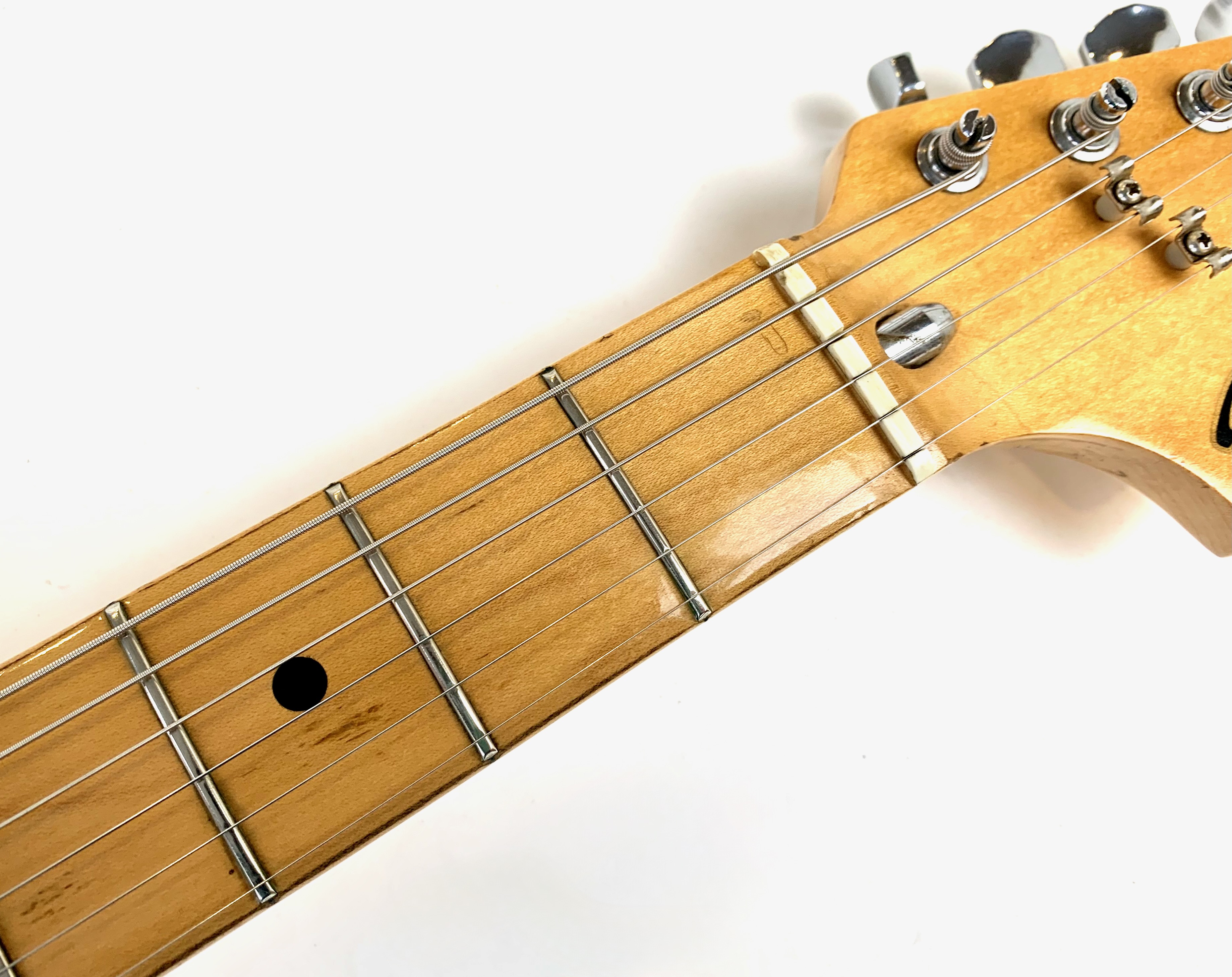 Cette Strat période CBS est en très bel état pour ses presque 50 ans ! Full black pour le corps avec un manche érable touche érable au radius de 7,25 pouces, elle a un look typique de la période, notamment grâce à sa grosse tête et son gros logo. Fait assez exceptionnel pour l'époque : elle ne pèse que 3,66kg ! Complètement d’origine hormis un étui générique.Location, achat, vente, reprise, dépôt-vente.