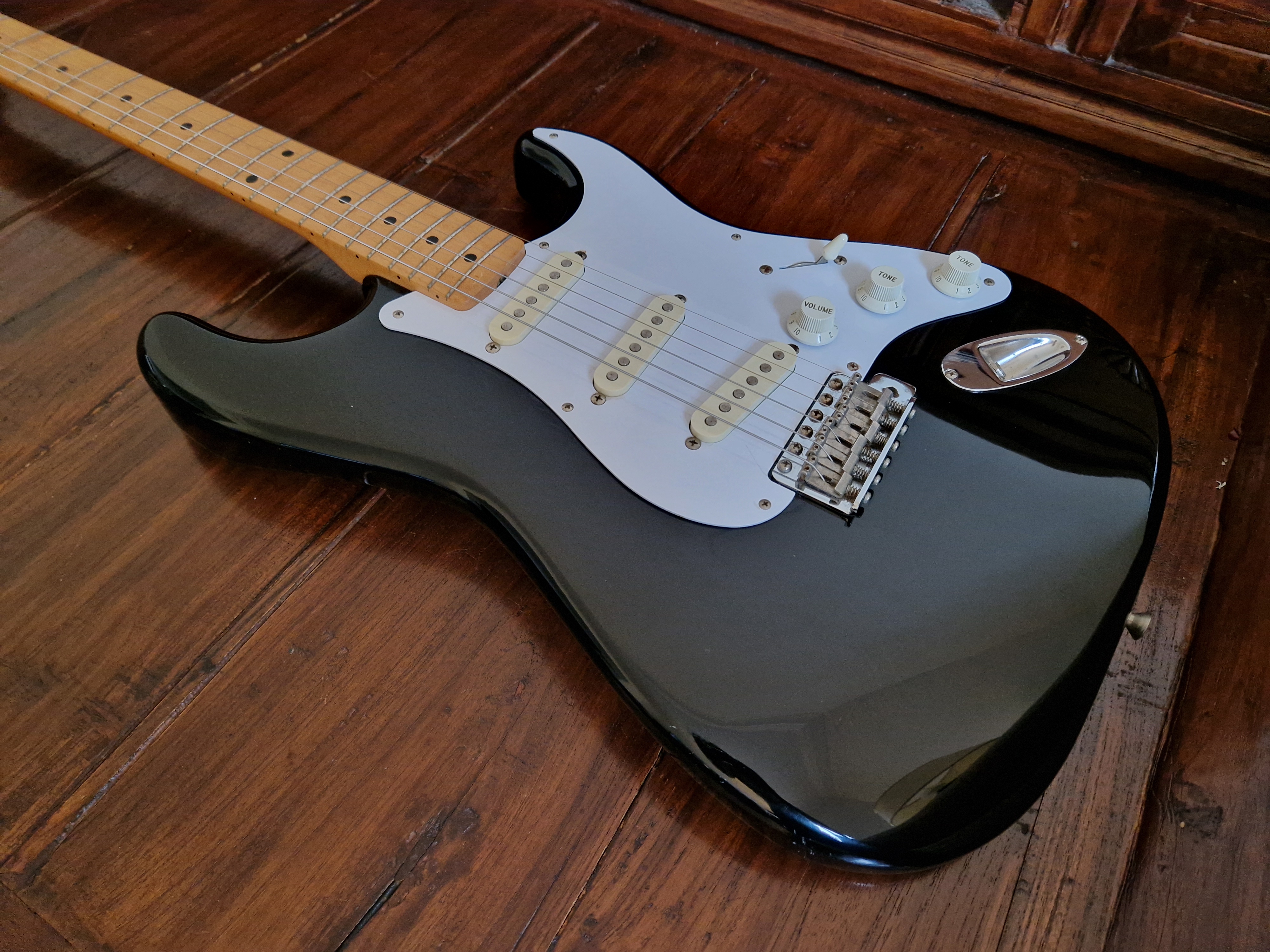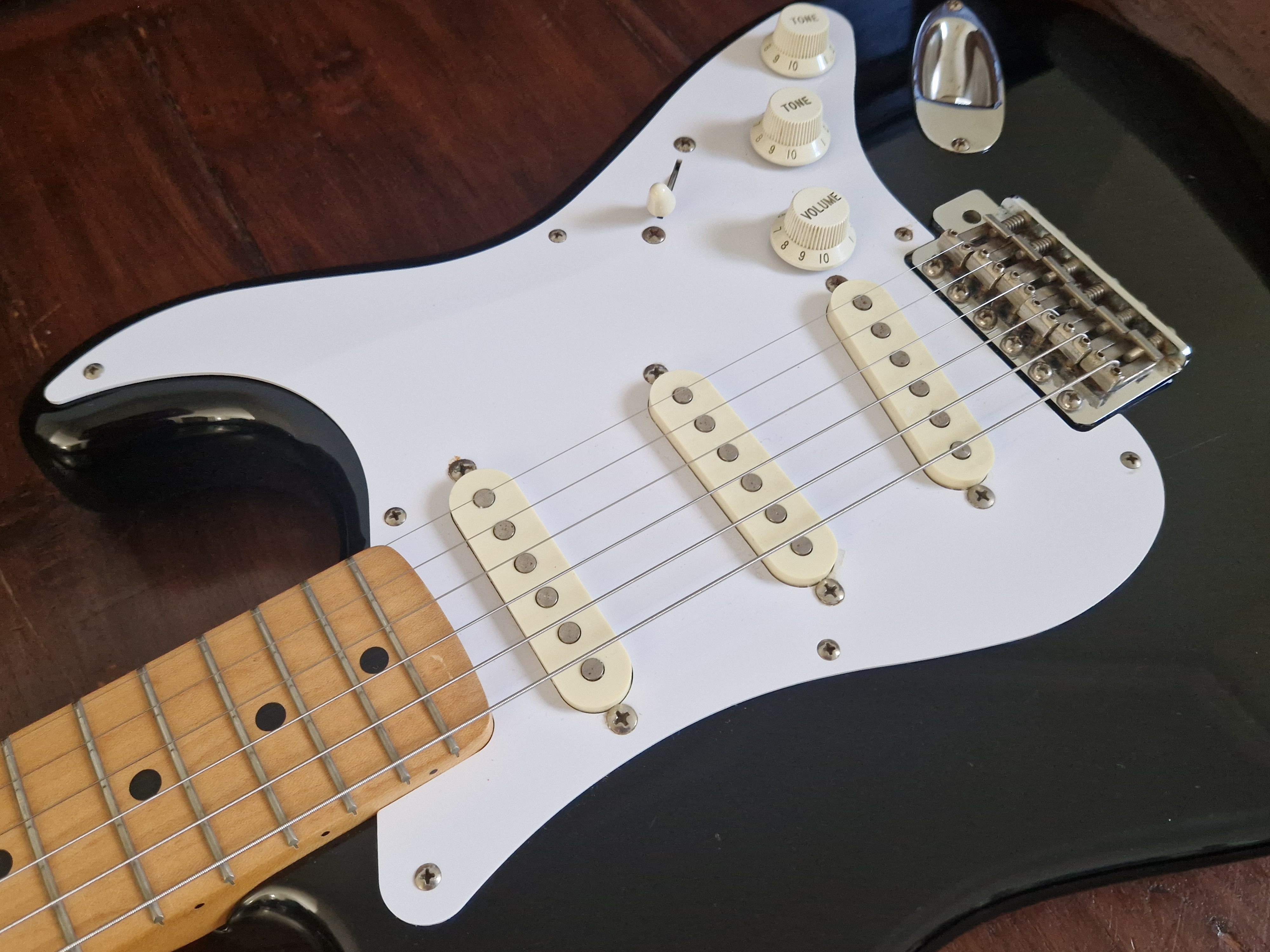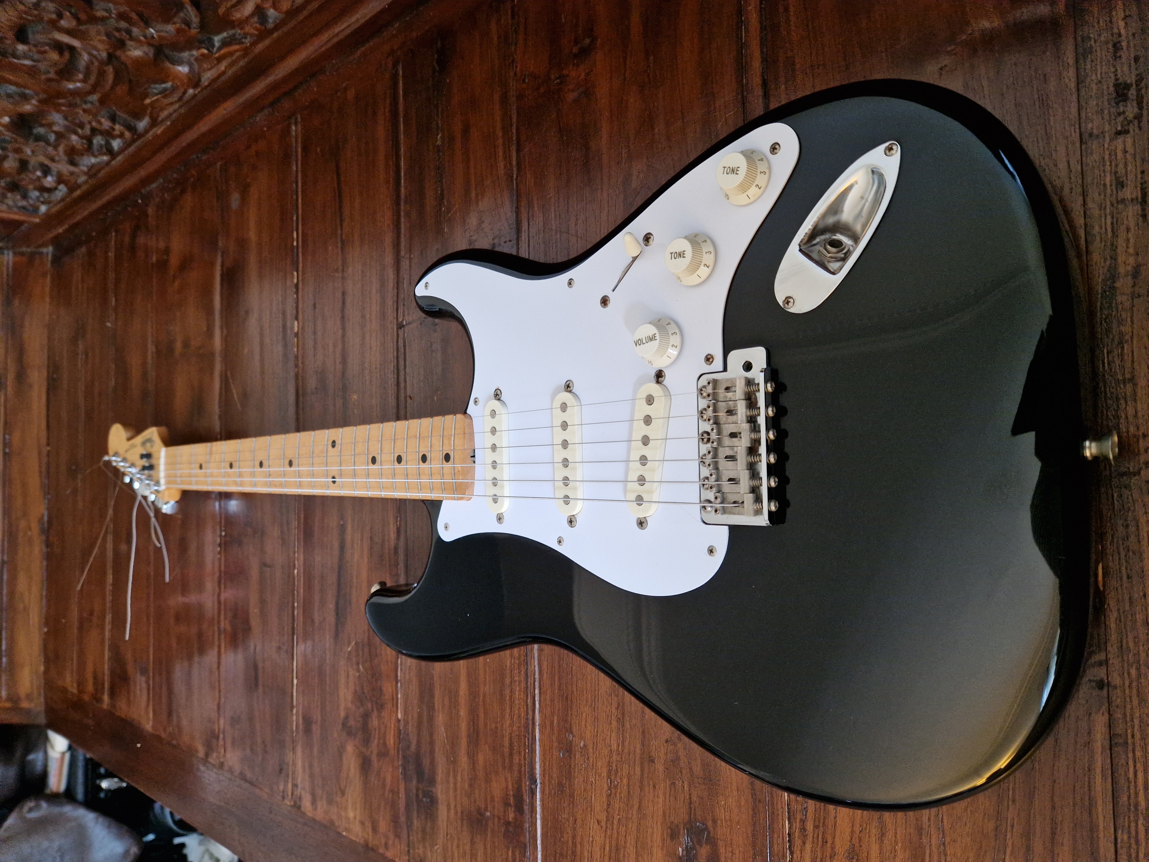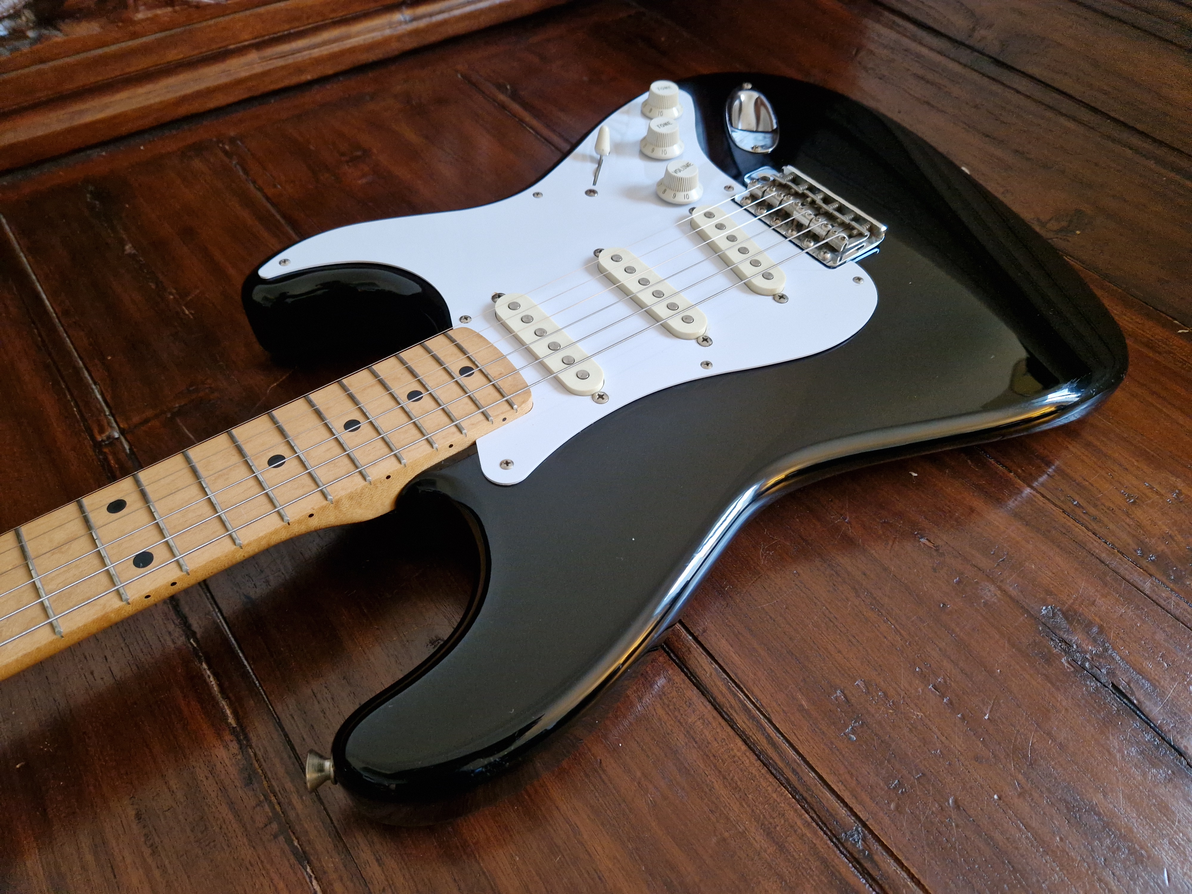 Je me sépare de ma Stratocaster Made In Japan ST357V de 1988 (numé de série en H) en finition BlackieIl s'agit d'une réédition Japonaise de la Stratocaster de 1957.