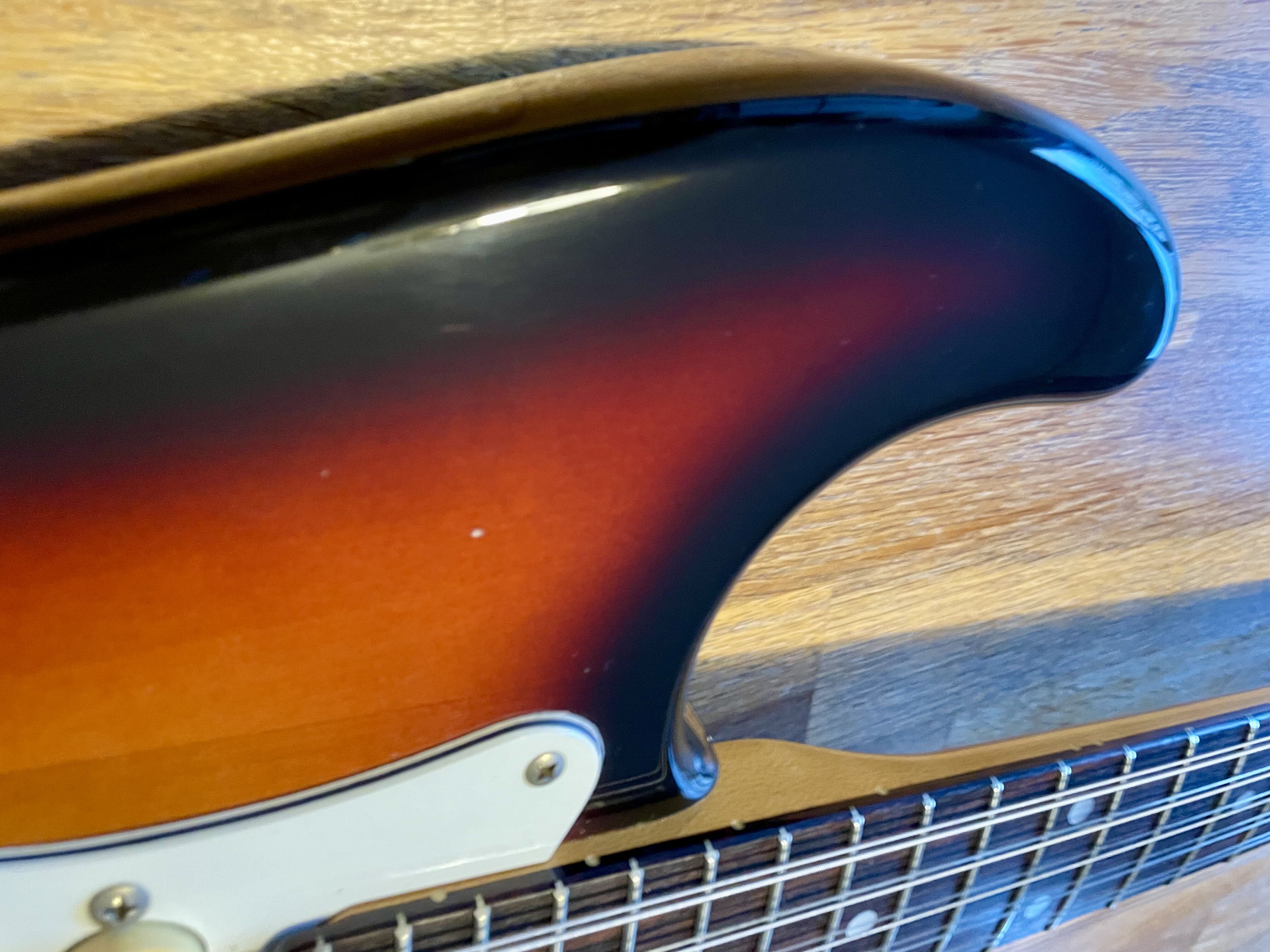Les caches plastiques des boutons et micros ont jaunis avec le temps, pas le pickguard étonnamment.