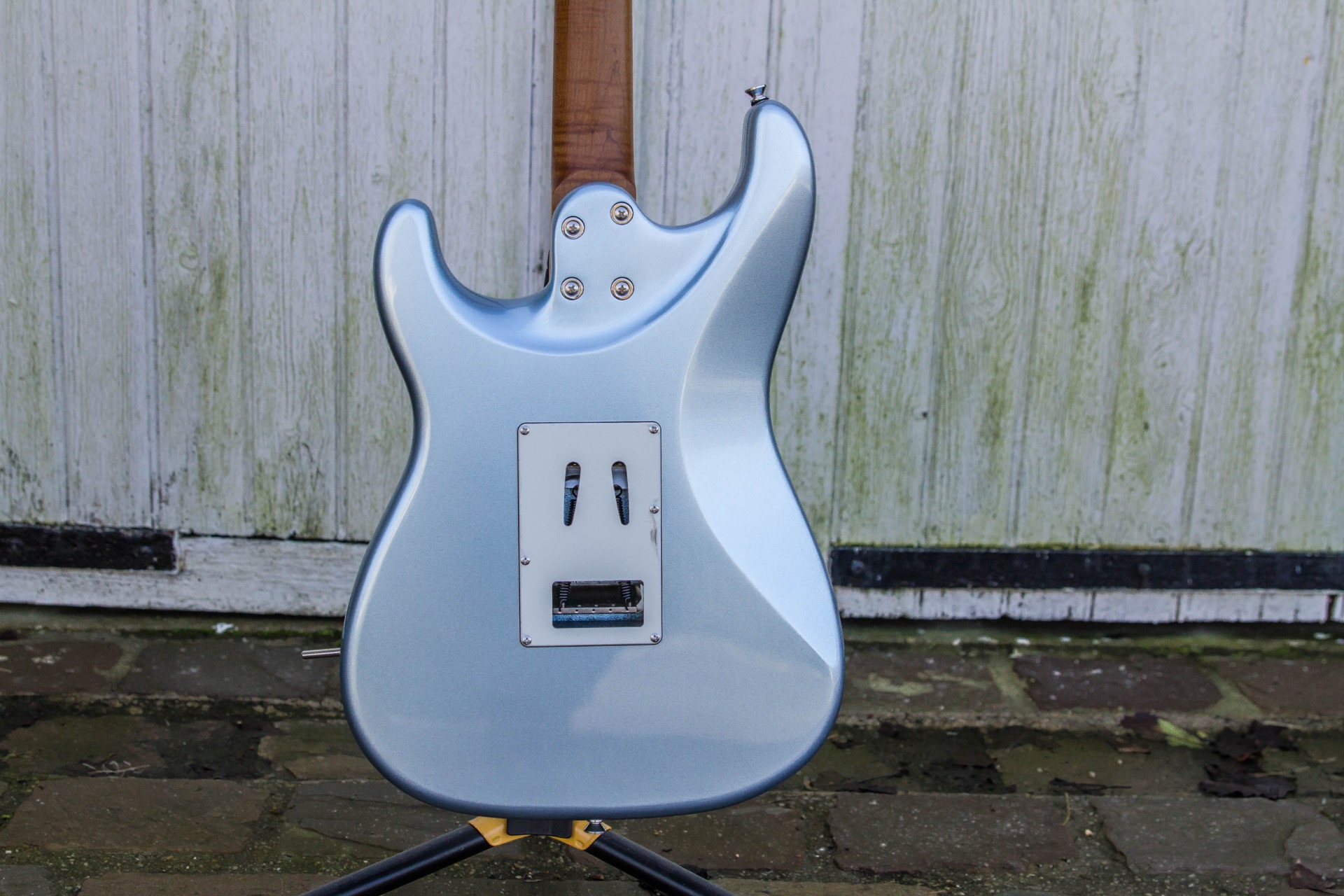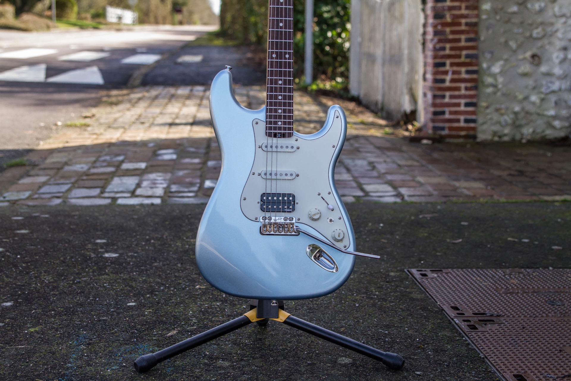 La guitare adopte une configuration HSS composée de deux micros simples Tesla Time Machine ’57 et d’un humbucker Tesla Opus-59 Classic en position chevalet. Cette combinaison permet d’obtenir des sonorités proches des Stratocaster tout en conservant plus de puissance sur le micro chevalet.
