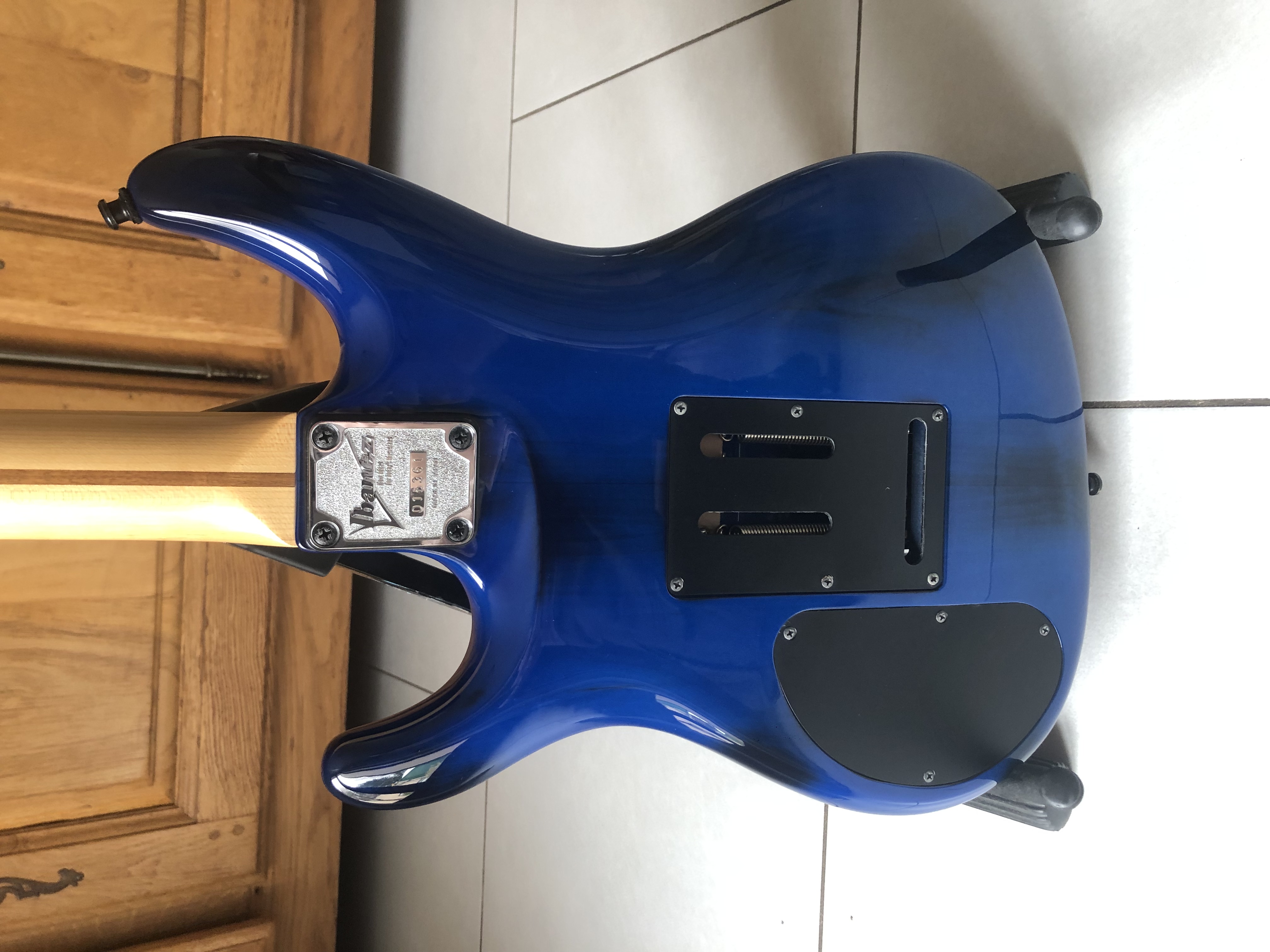 Un des manches les plus agréables que j'ai pu jouer, deux micros doubles Di Marzio splittables, un des meilleurs Floyds de chez Ibanez... au top. Assez loin des séries RG en tout cas.