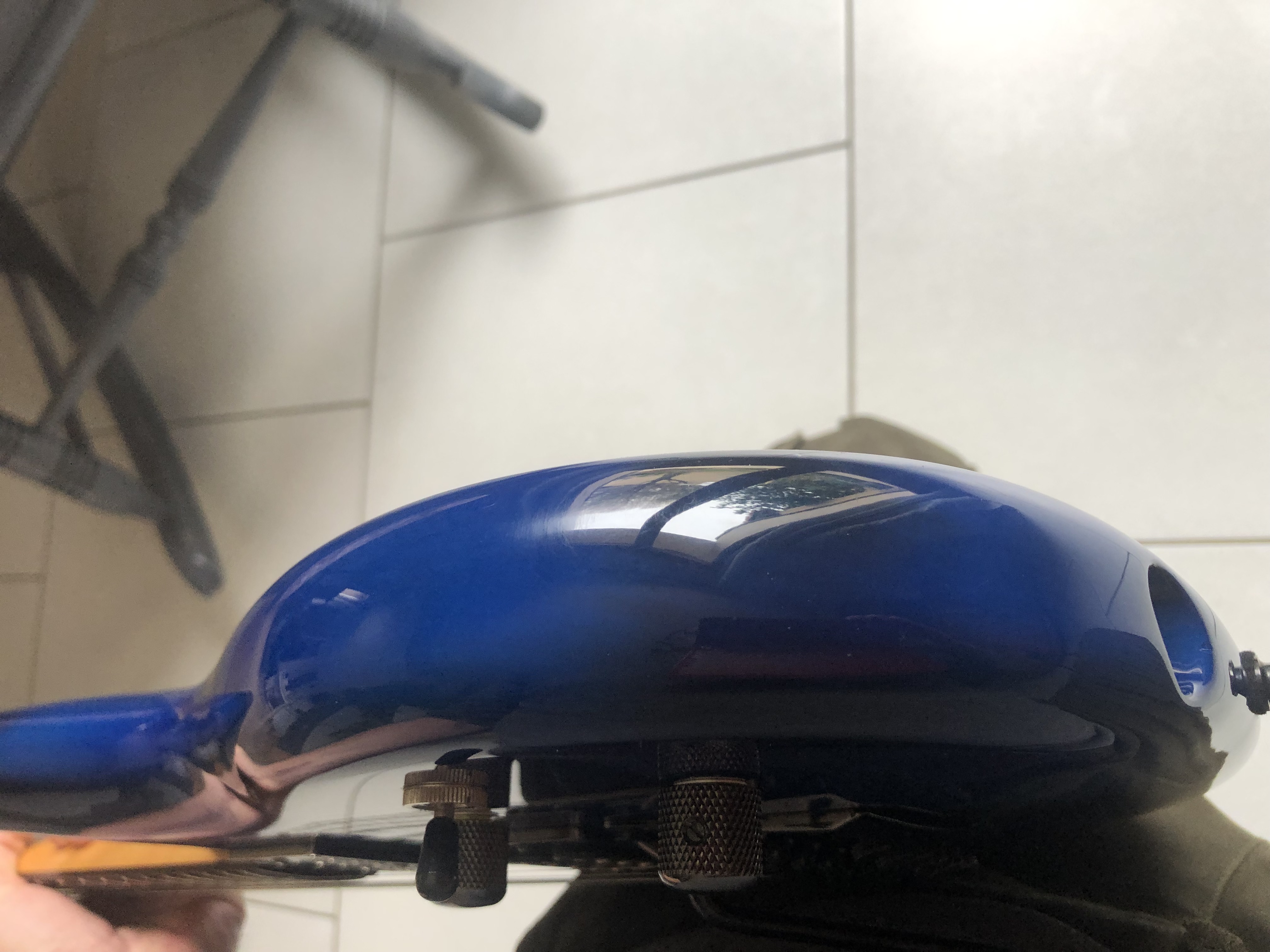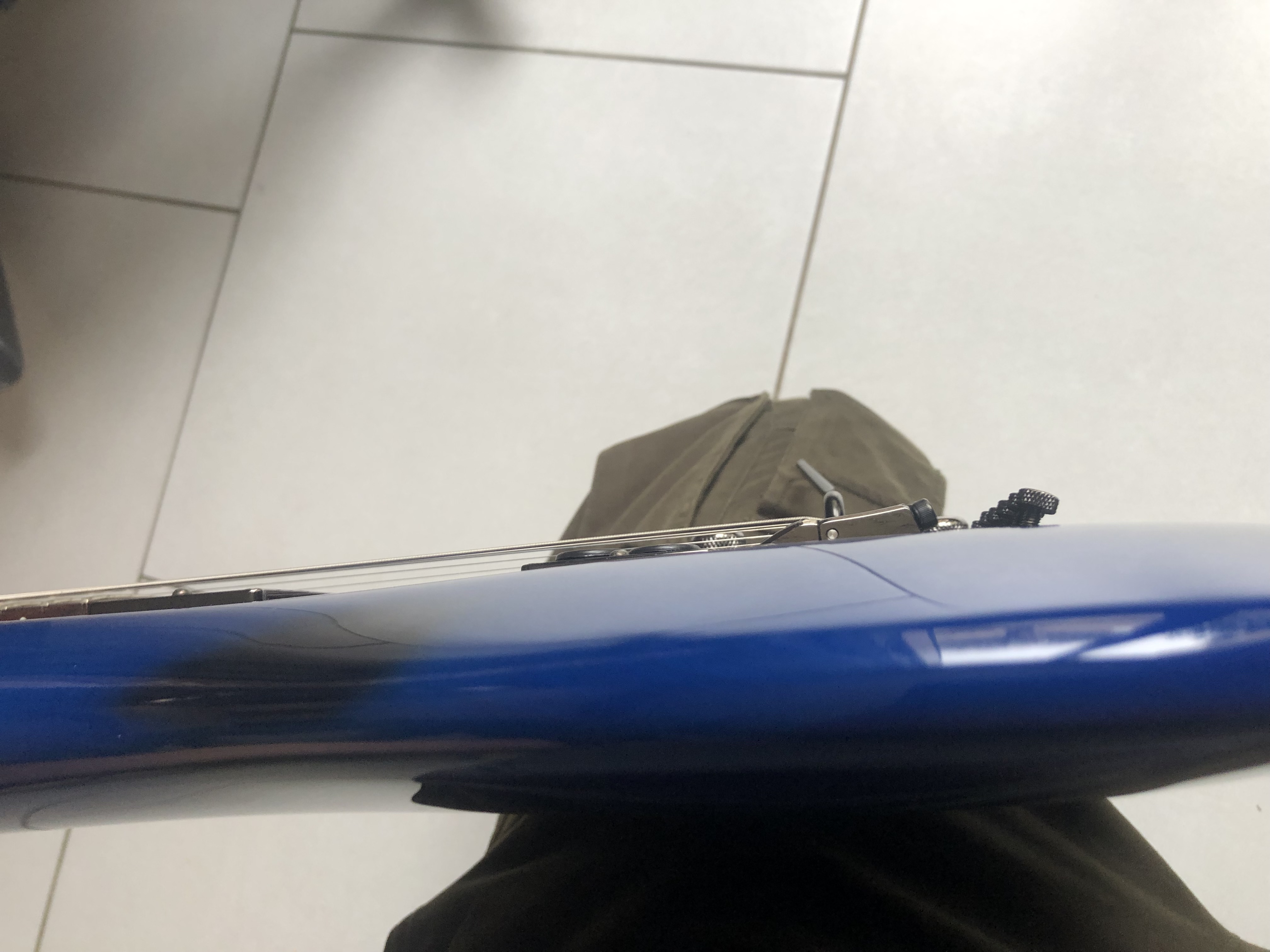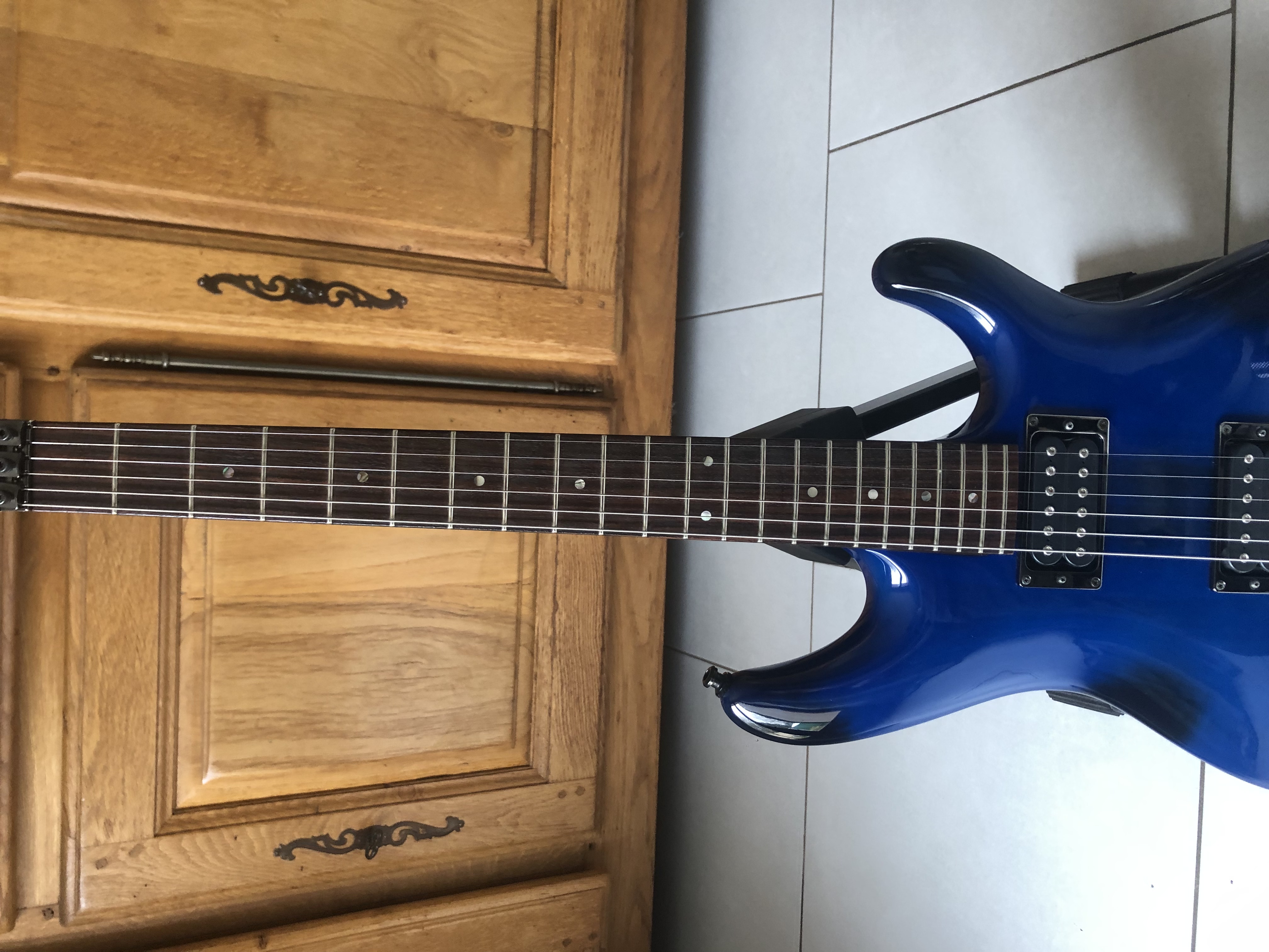 Il s'agit de la guitare d'un pote sur laquelle j'ai joué hier ; lui-même la joue depuis pas mal d'années (8 ans?) et j'ai été étonné par la façon dont elle a bonifié avec le temps : le manche s'est un peu patiné,...…