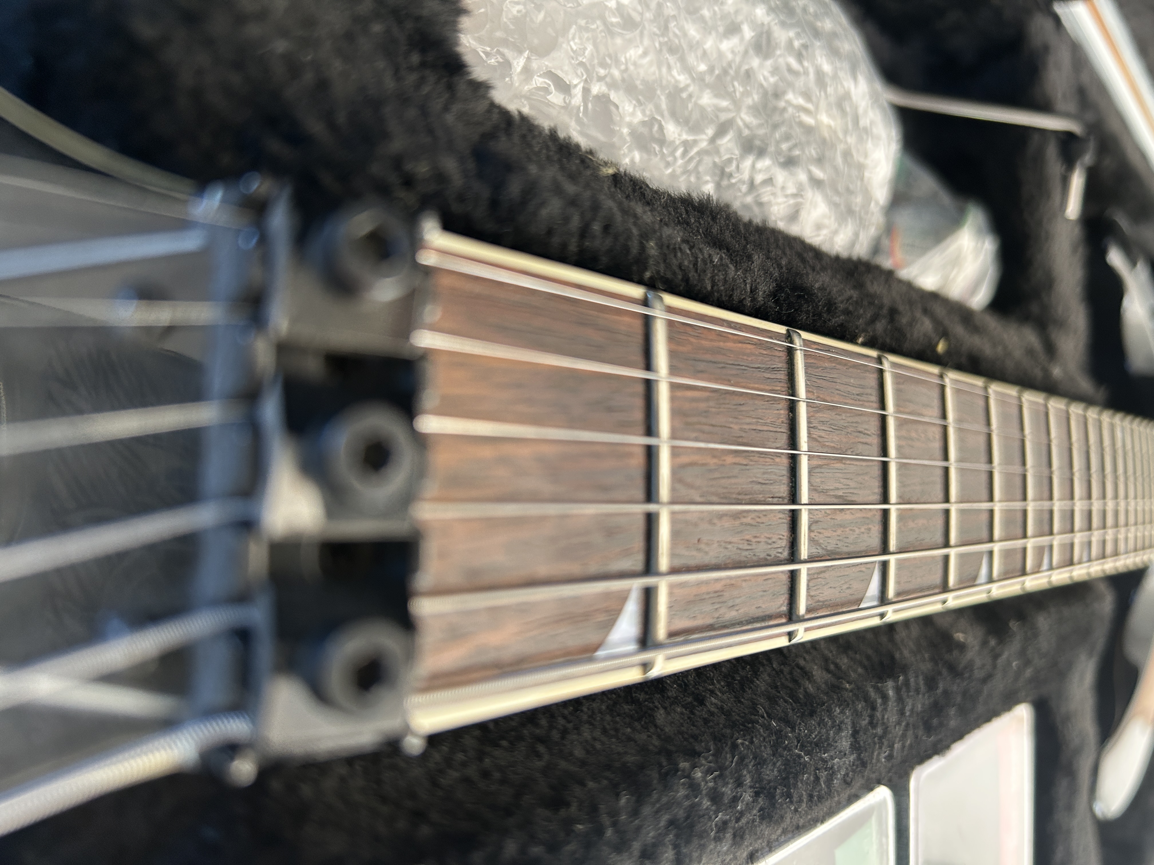 Elle est vendue avec un étui rigide GATOR. Je l'avais acheté d'occasion. Elle a été révisée chez un luthier, les cordes sont récentes.