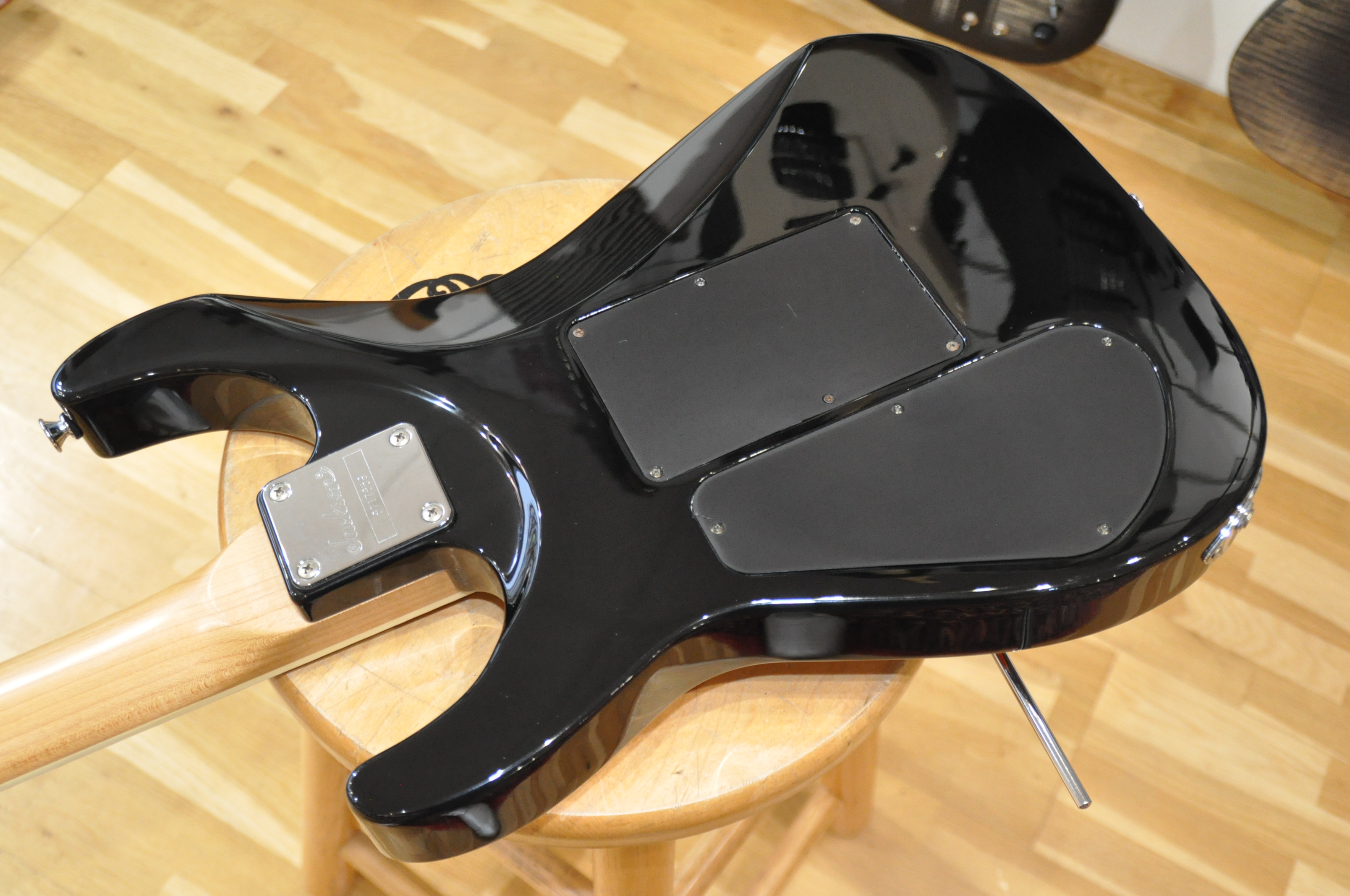 À cela s’ajoute une fabrication japonaise irréprochable, typique de la grande époque MIJ de la fin des années 90. L’assemblage est exemplaire, les ajustements sont précis, et la sensation générale respire la qualité. Le manche est rapide, confortable, parfaitement stable, avec ce profil typiquement Jackson qui invite immédiatement au jeu moderne, aux solos rapides comme aux rythmiques appuyées. La lutherie est saine, équilibrée, et montre à quel point ces instruments étaient pensés pour durer, tant sur le plan mécanique que musical.