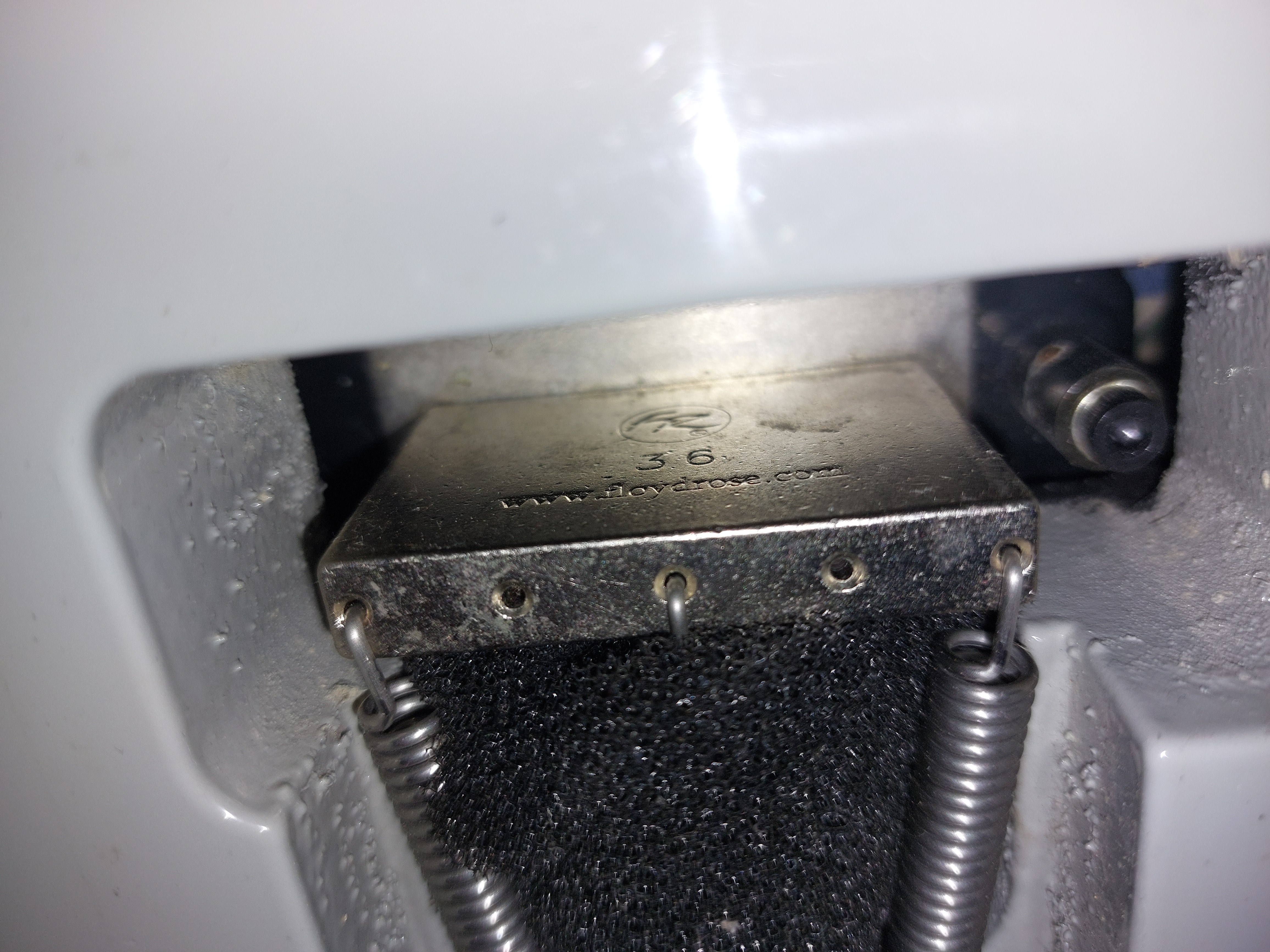 défonce sous l'arriere du Floyd Rose 1000 aussi propre que d'origine!