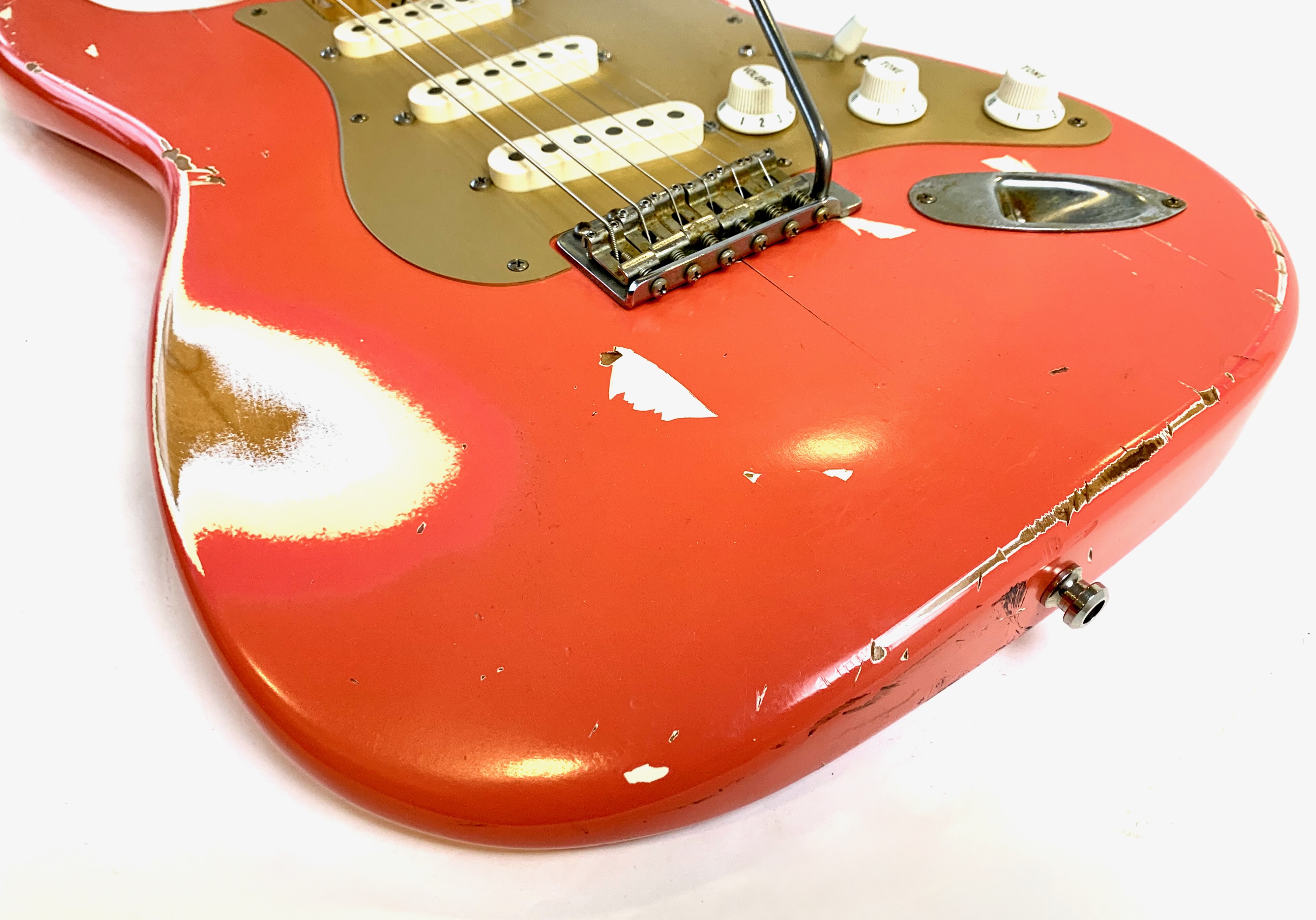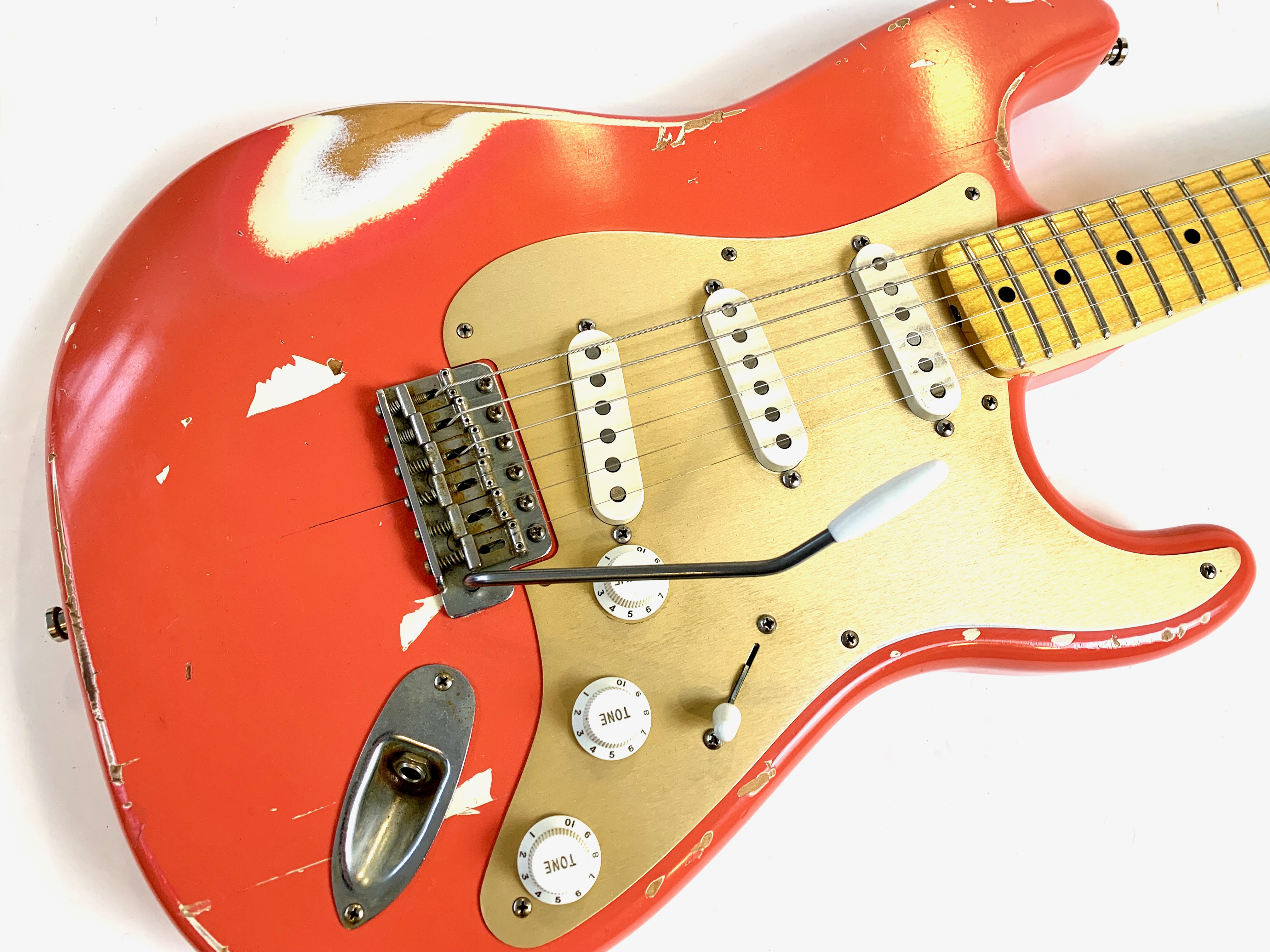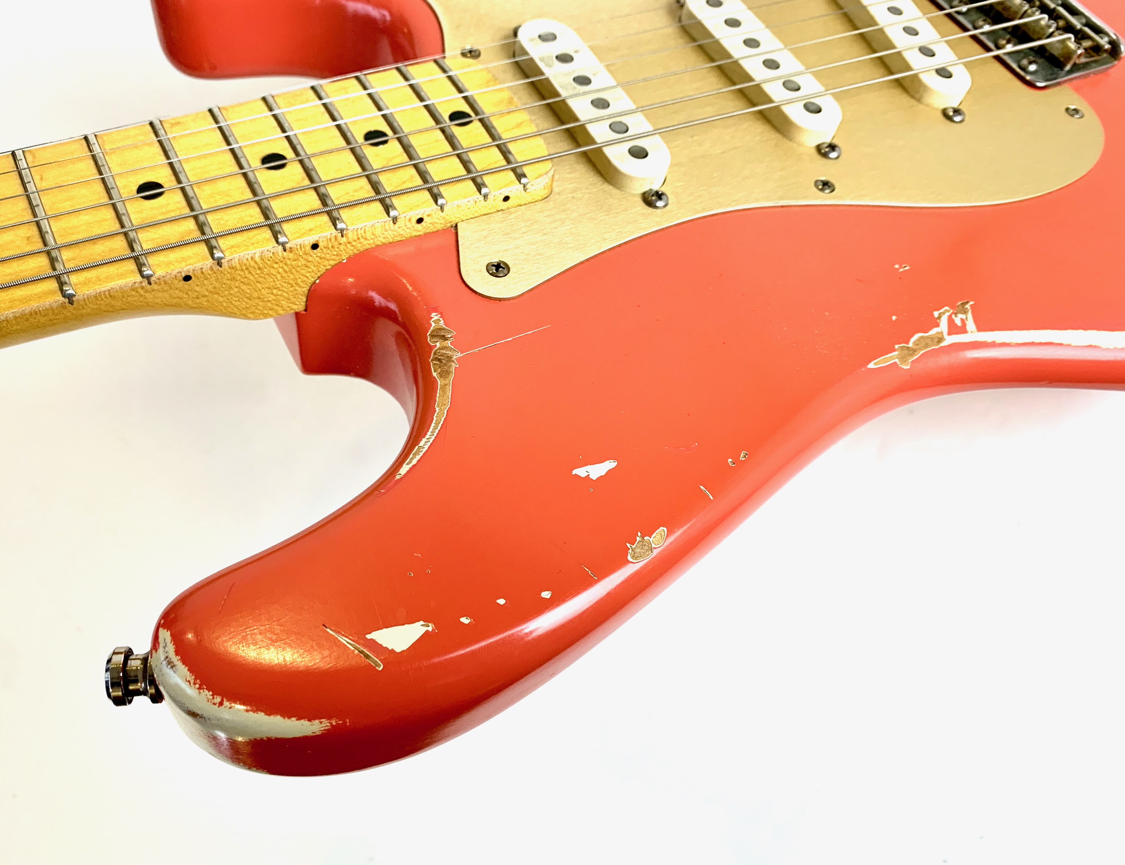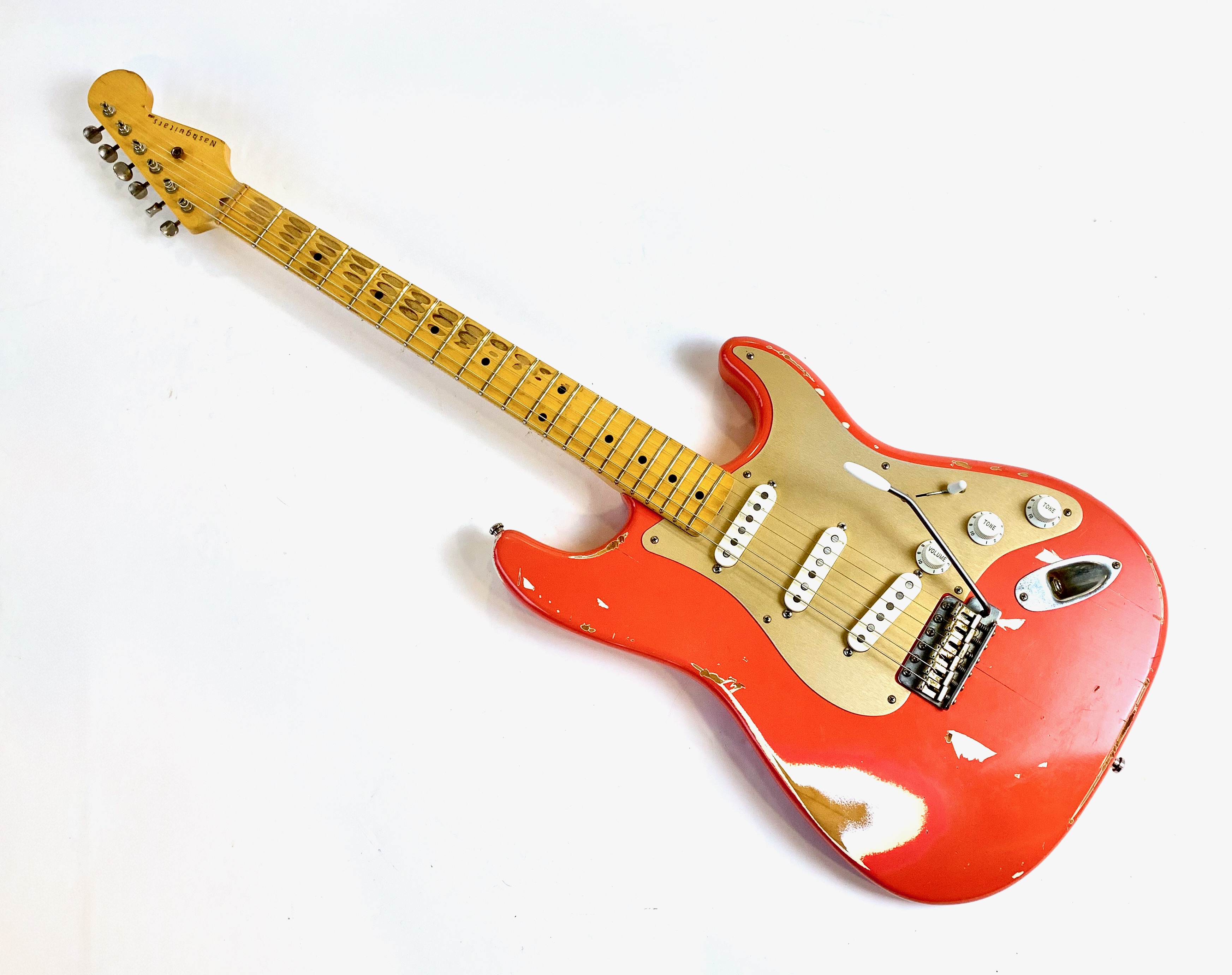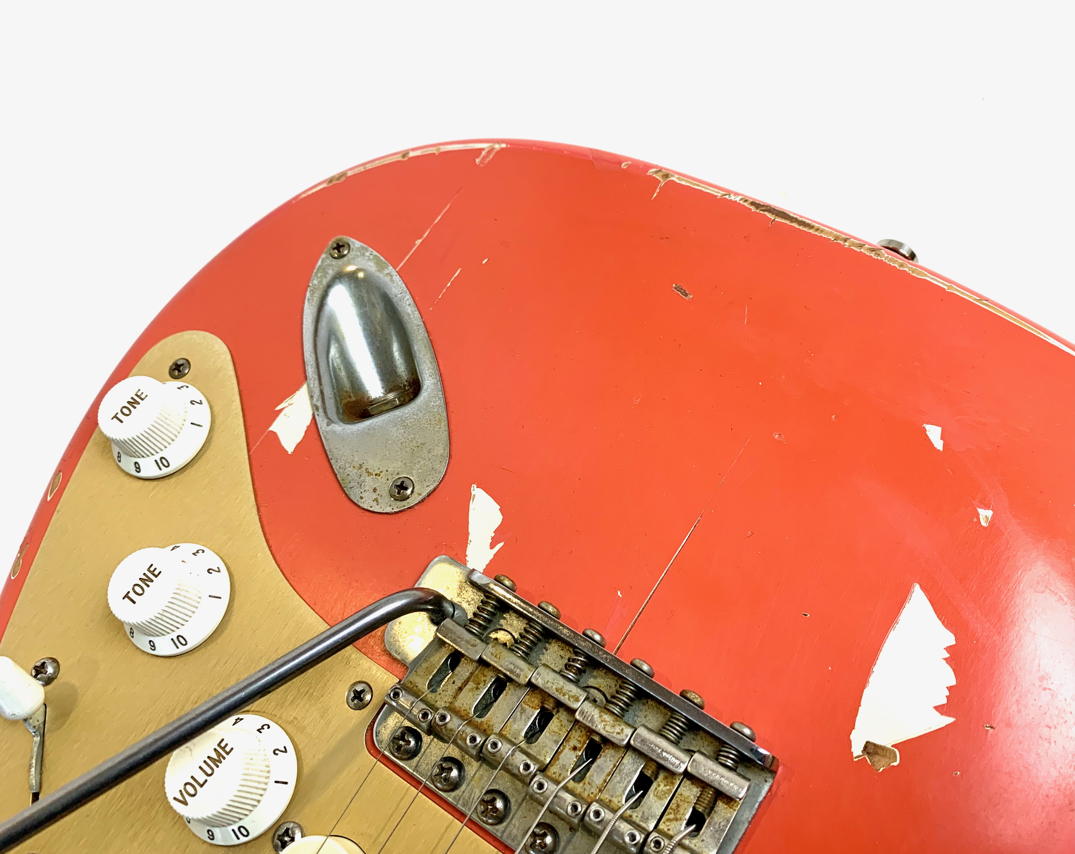 Bill Nash s’est fait une spécialité de réaliser à partir des modèles Fender existants des répliques haut de gamme d’une qualité équivalente au Custom Shop. Voici une Stratocaster type 1957 avec un set de micros maison et un manche en érable et une touche de la même essence au radius moderne de 9,5 pouces. Son look relic, Fiesta Red associé au pickguard anodisé est d'enfer ! En très bon état, vendue en housse.Location, achat, vente, reprise, dépôt-vente.
