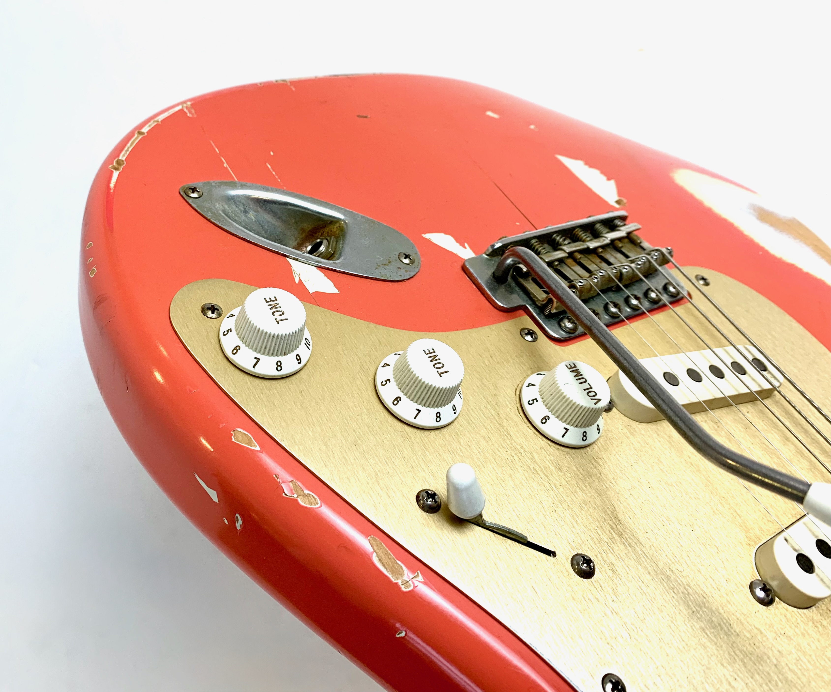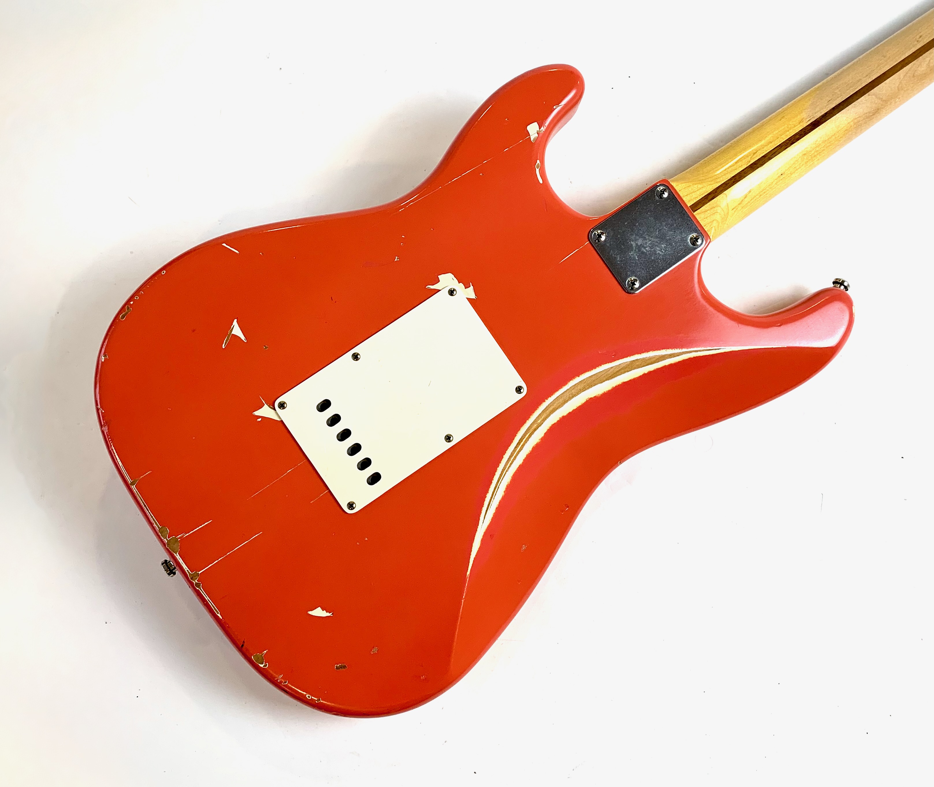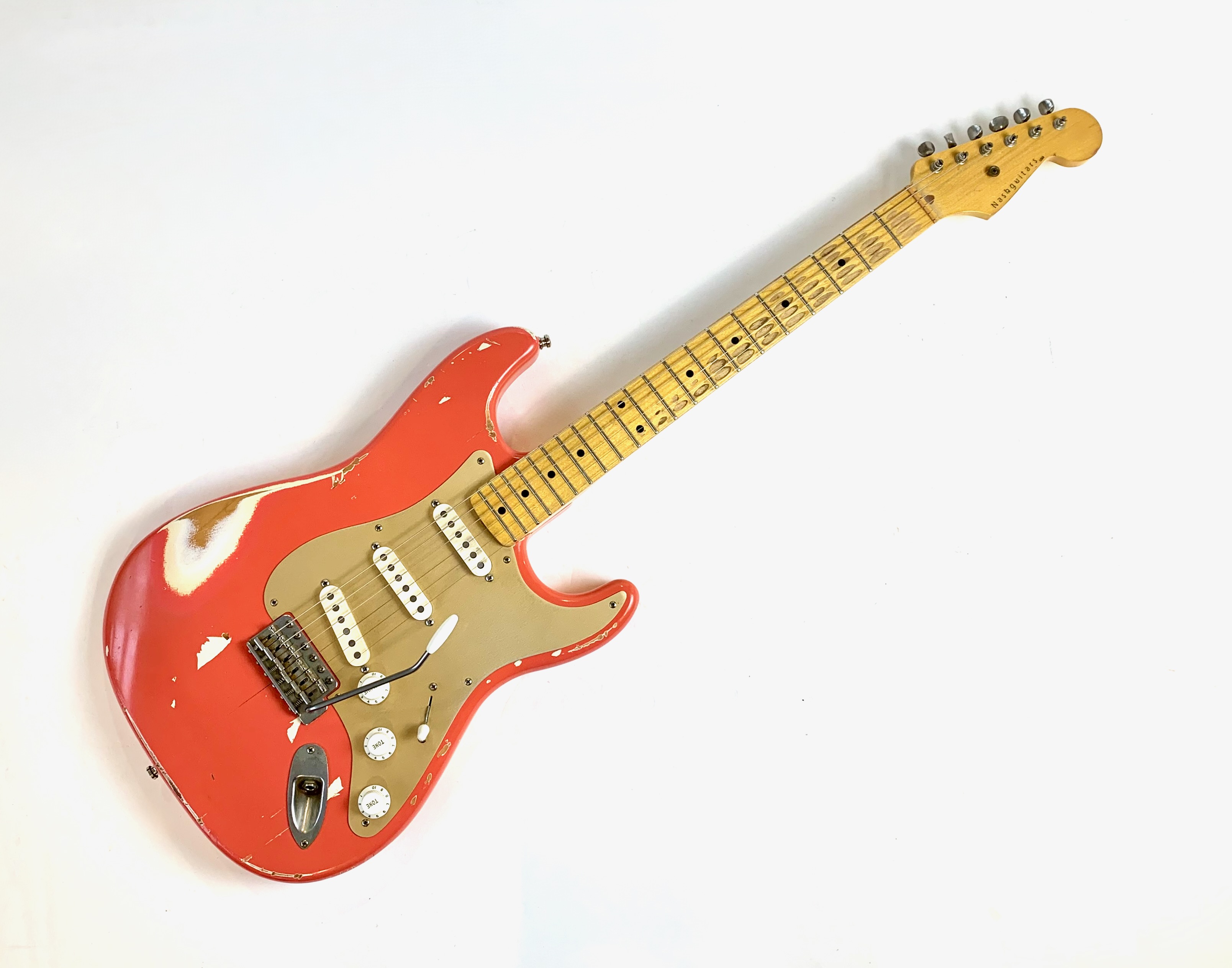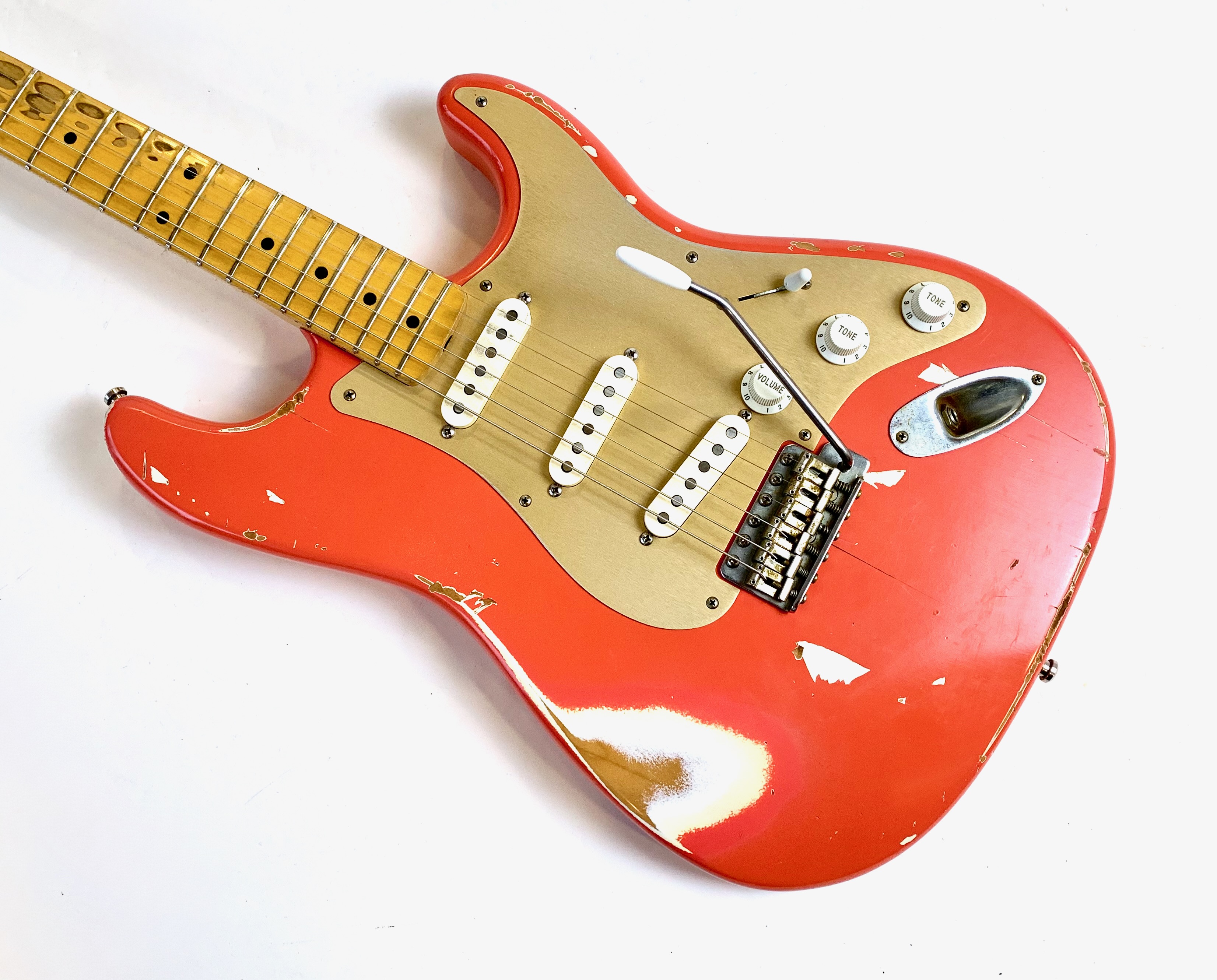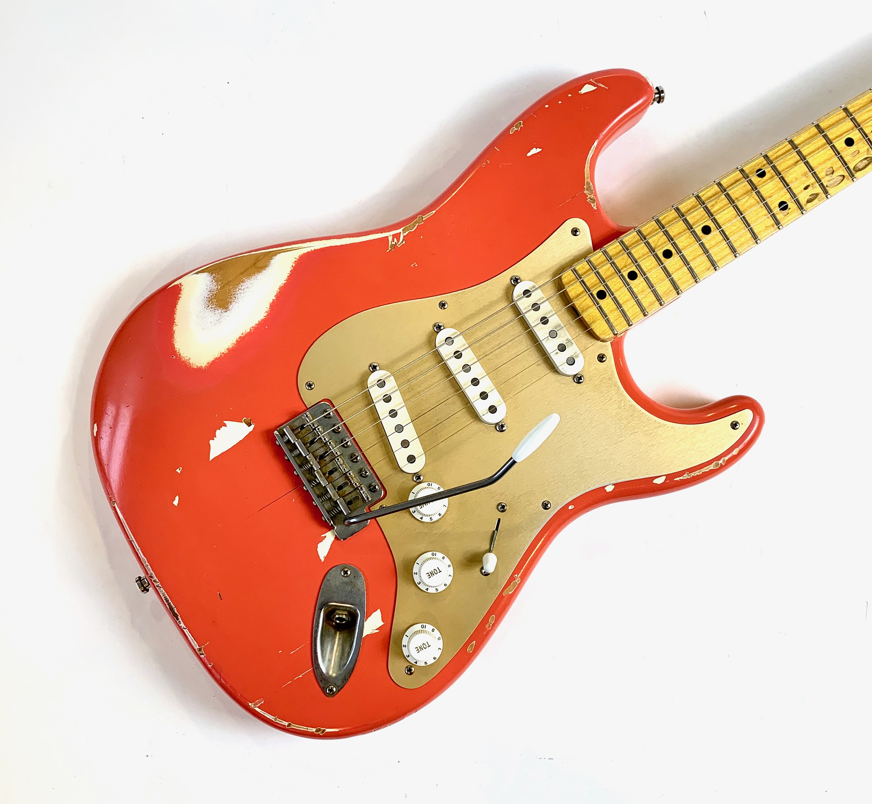 Bill Nash s’est fait une spécialité de réaliser à partir des modèles Fender existants des répliques haut de gamme d’une qualité équivalente au Custom Shop. Voici une Stratocaster type 1957 avec un set de micros maison et un manche en érable et une touche de la même essence au radius moderne de 9,5 pouces. Son look relic, Fiesta Red associé au pickguard anodisé est d'enfer ! En très bon état, vendue en housse.Location, achat, vente, reprise, dépôt-vente.