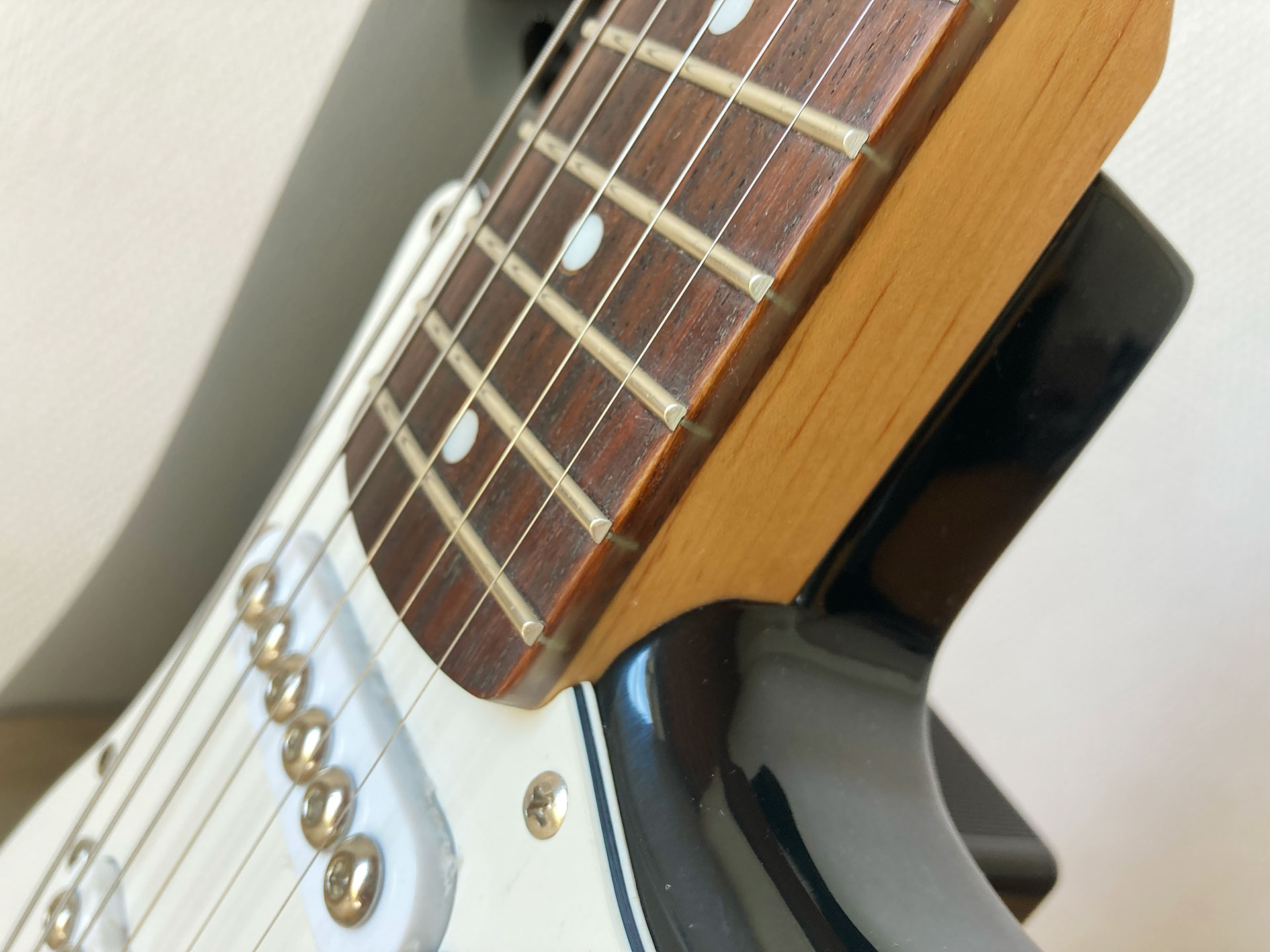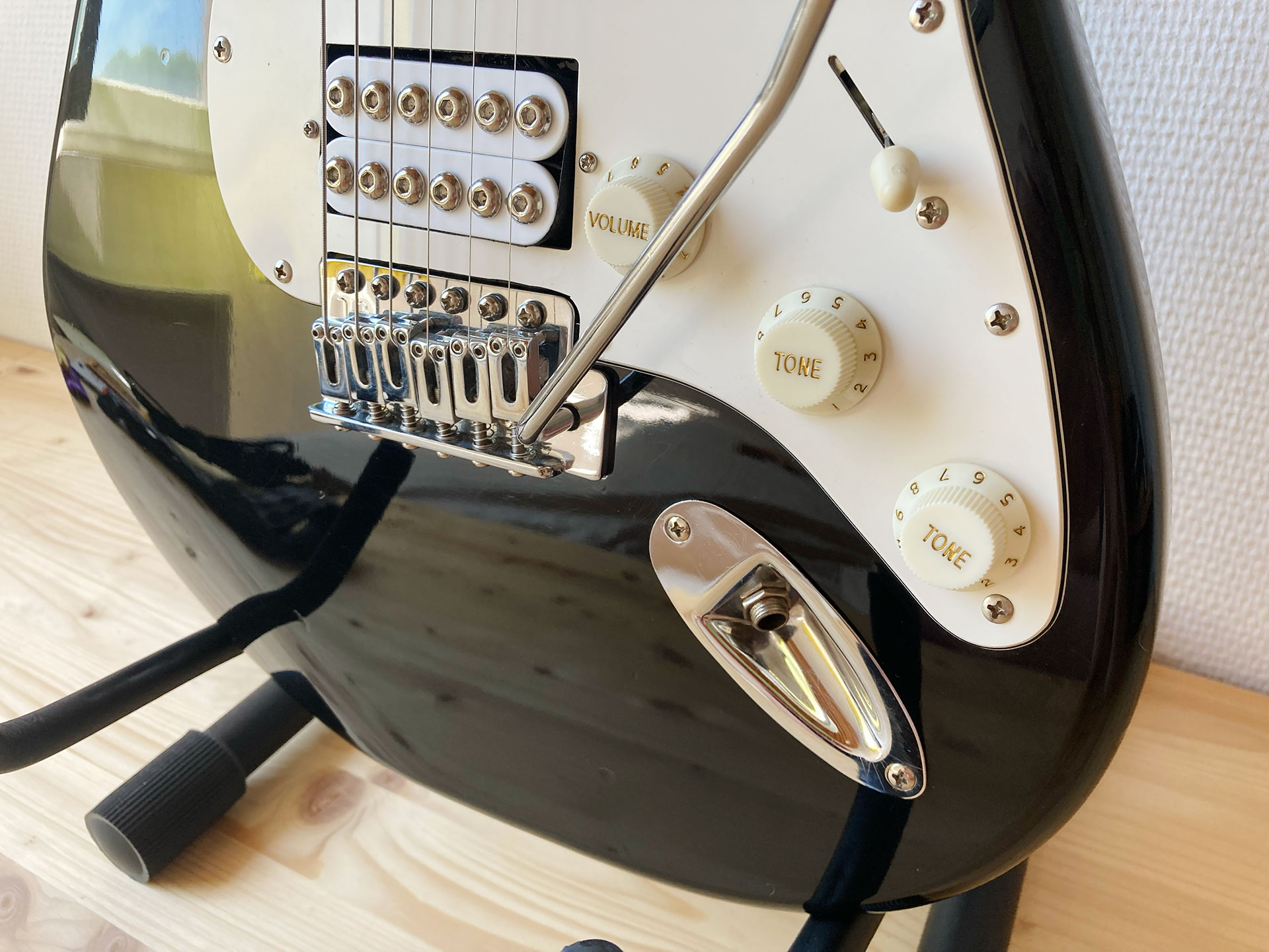Bonjour, je revends une guitare électrique Ryan Guitars, réplique de la Stratocaster de chez Fender avec montage micro type “HSS”, vibrato 6 pontets, 2 micros à simple bobinage, 1 micro à double bobinage, 2 réglages de tonalité et un sélecteur 5 positions.Fabriquée au Japon entre 1974-76 dans les célèbres usines Hoshino Gakki qui fabriquaient également les instruments pour Ibanez, Gibson, Cimar…