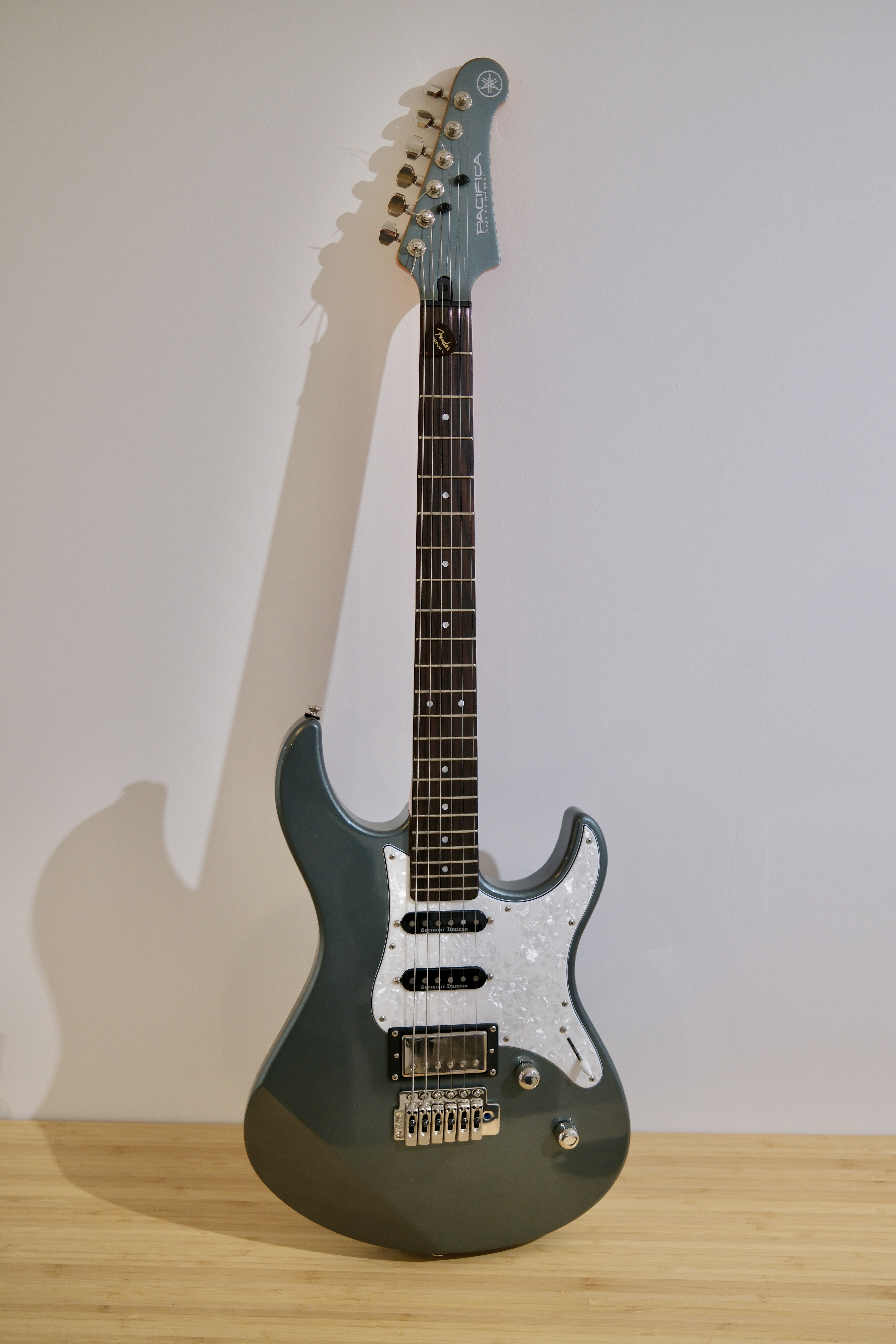 Je met en vente (avec regrets) ma Pacifica 612 Mist Green à l’état neuf, acheté ce Juillet 2025.Réglée. Micros Seymour Duncan d’origine. Aucun défaut.