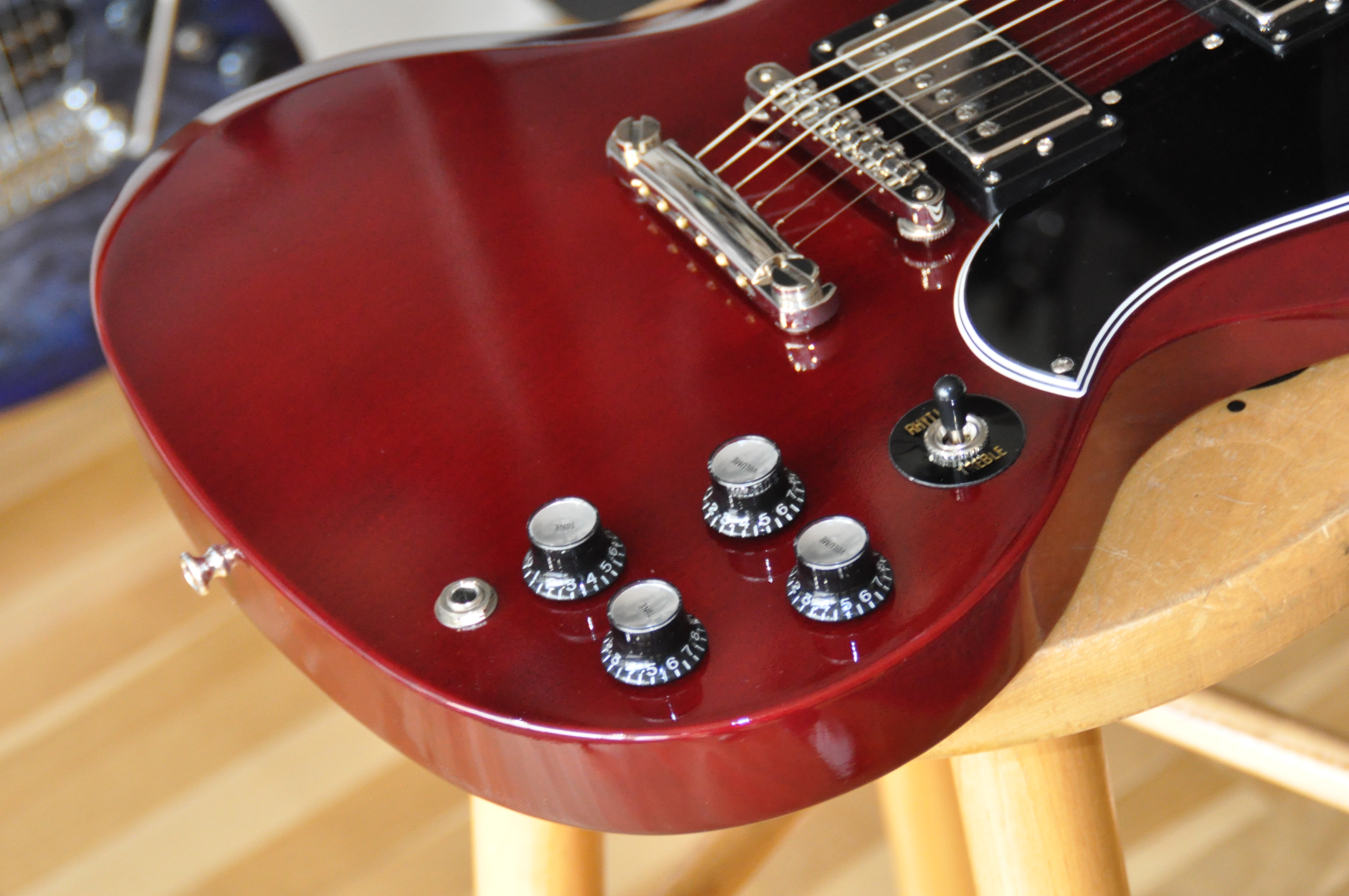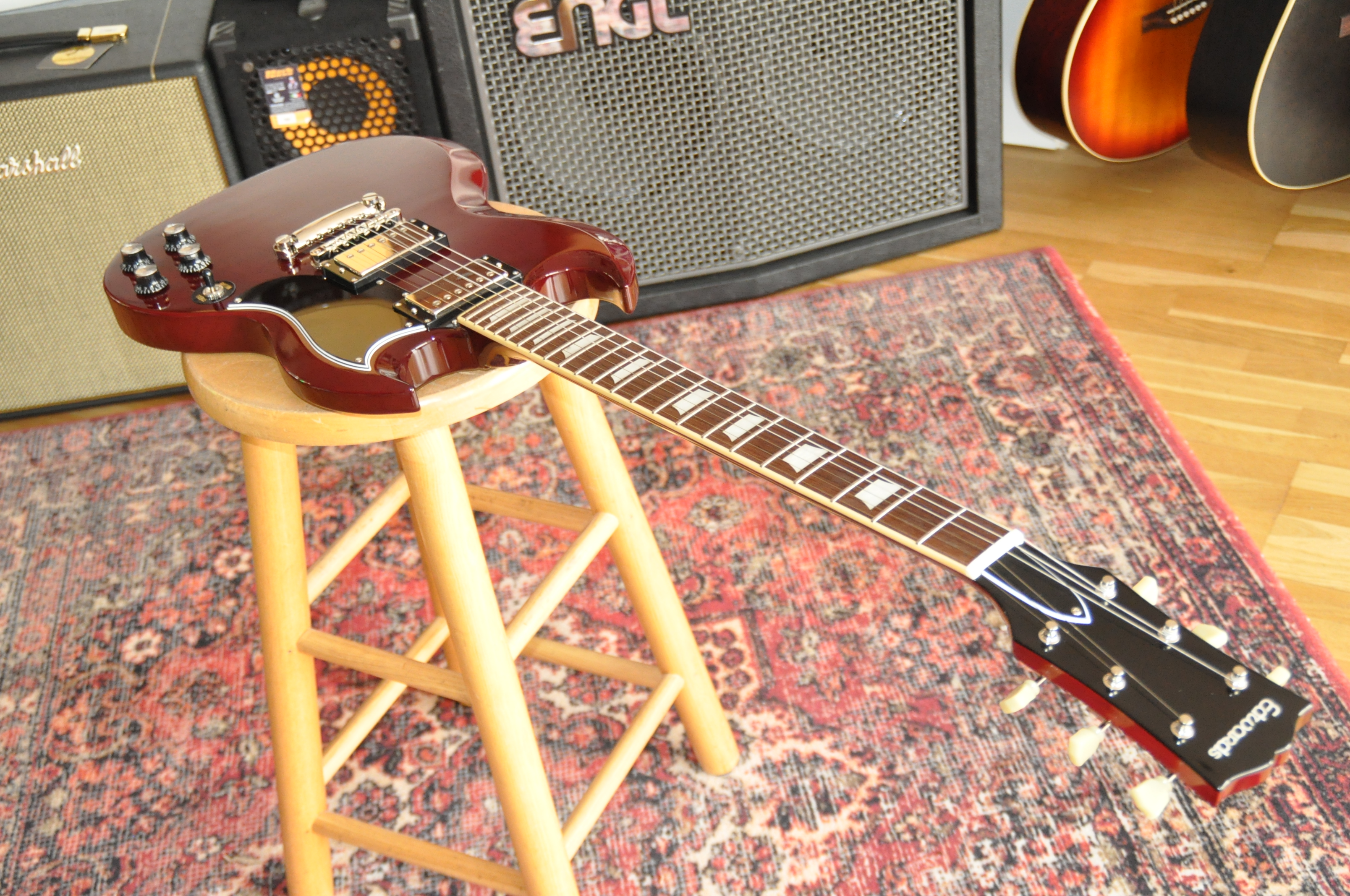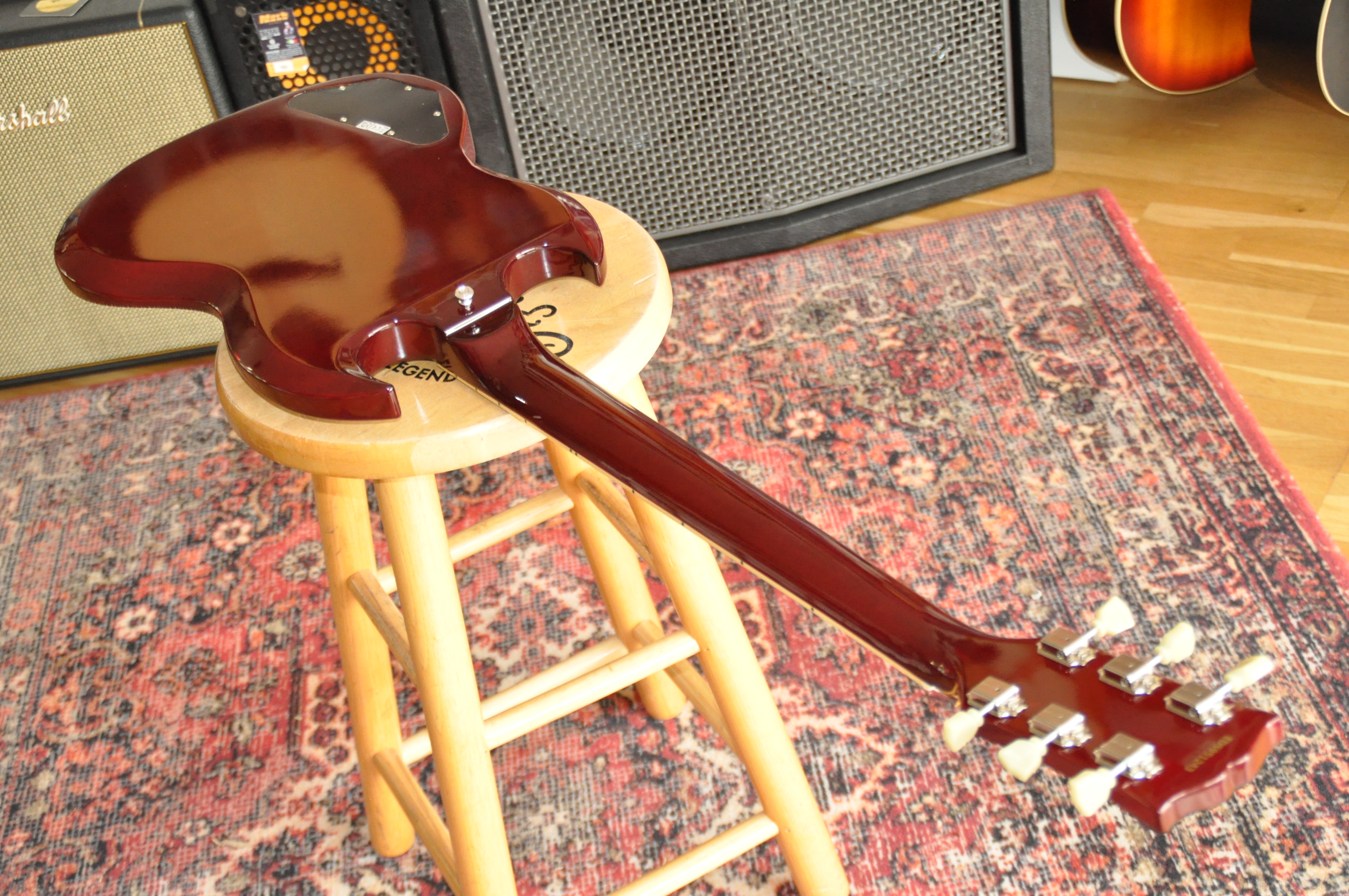 La SG-LTD se distingue également par son équipement haut de gamme. Les mécaniques Gotoh garantissent une stabilité et une précision exceptionnelles, tandis que le chevalet TOM Gotoh permet une intonation parfaite et un toucher dynamique. Les humbuckers Legacy ELH-1 offrent un son riche et polyvalent, capable de passer du blues feutré aux riffs rock les plus puissants sans jamais perdre en définition. Ce mariage de bois nobles et d’électronique de qualité crée un équilibre sonore rare, où chaque note, chaque accord, sonne avec clarté et chaleur, dépassant souvent ce que l’on attend d’une SG traditionnelle.