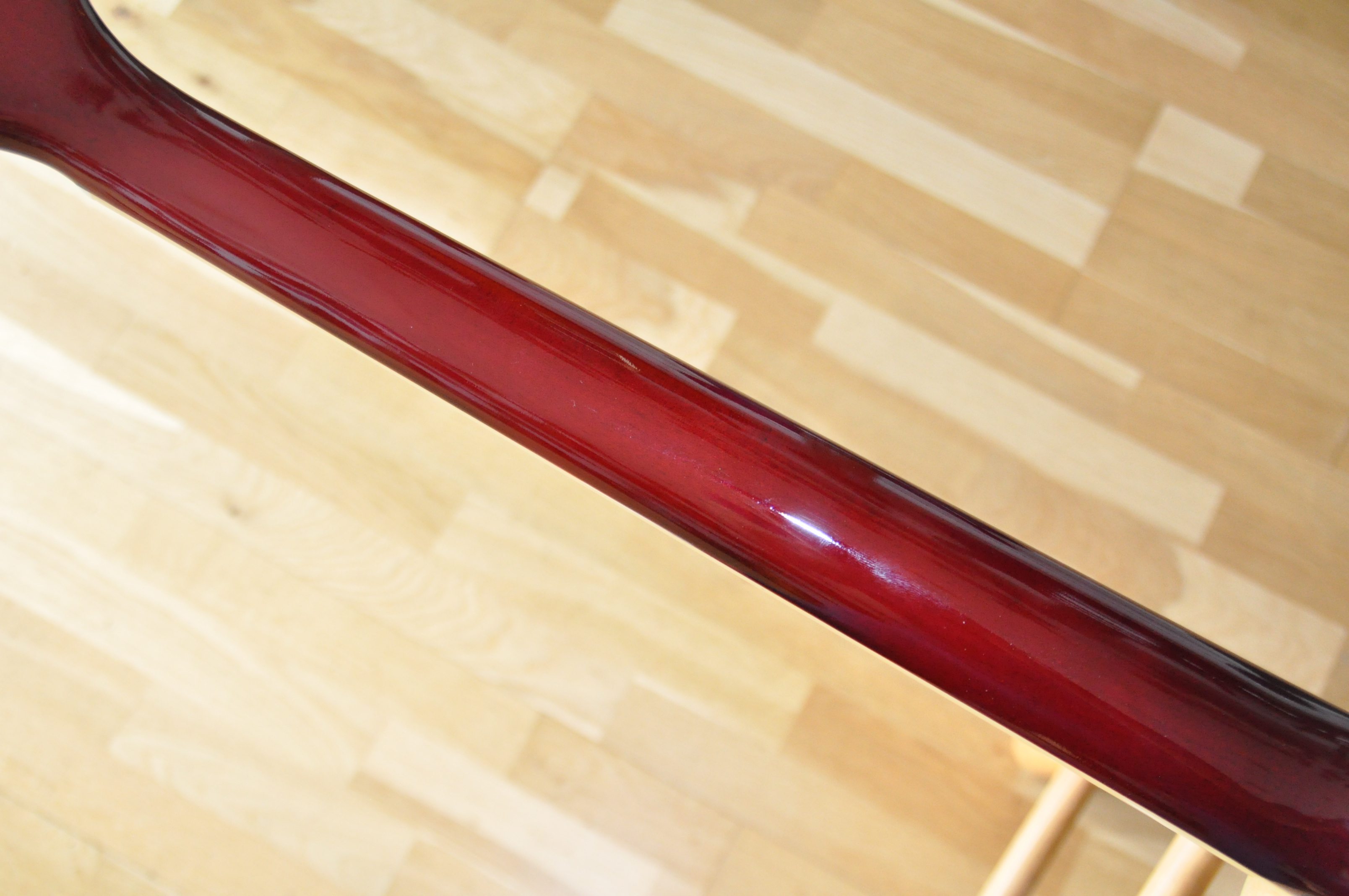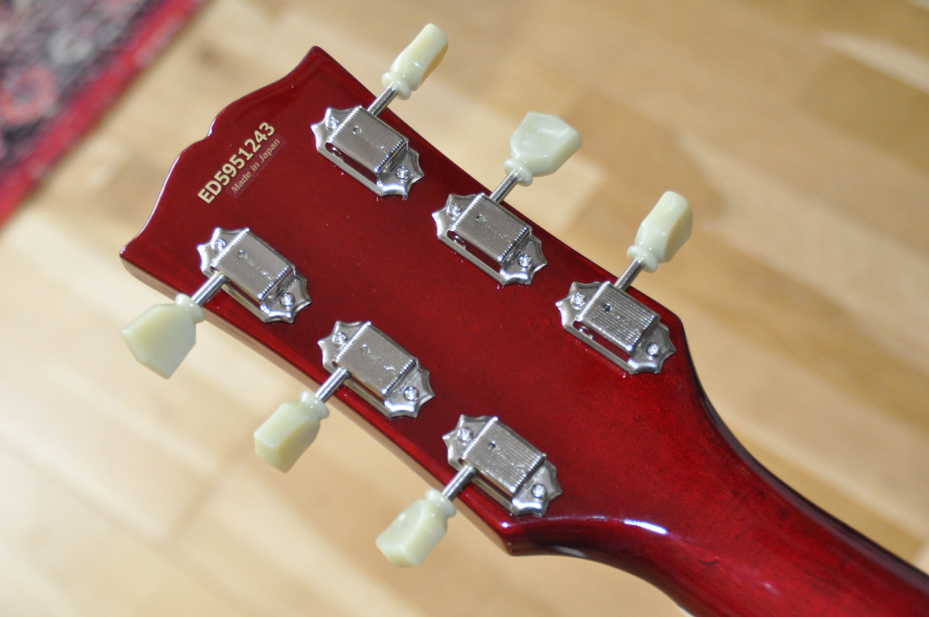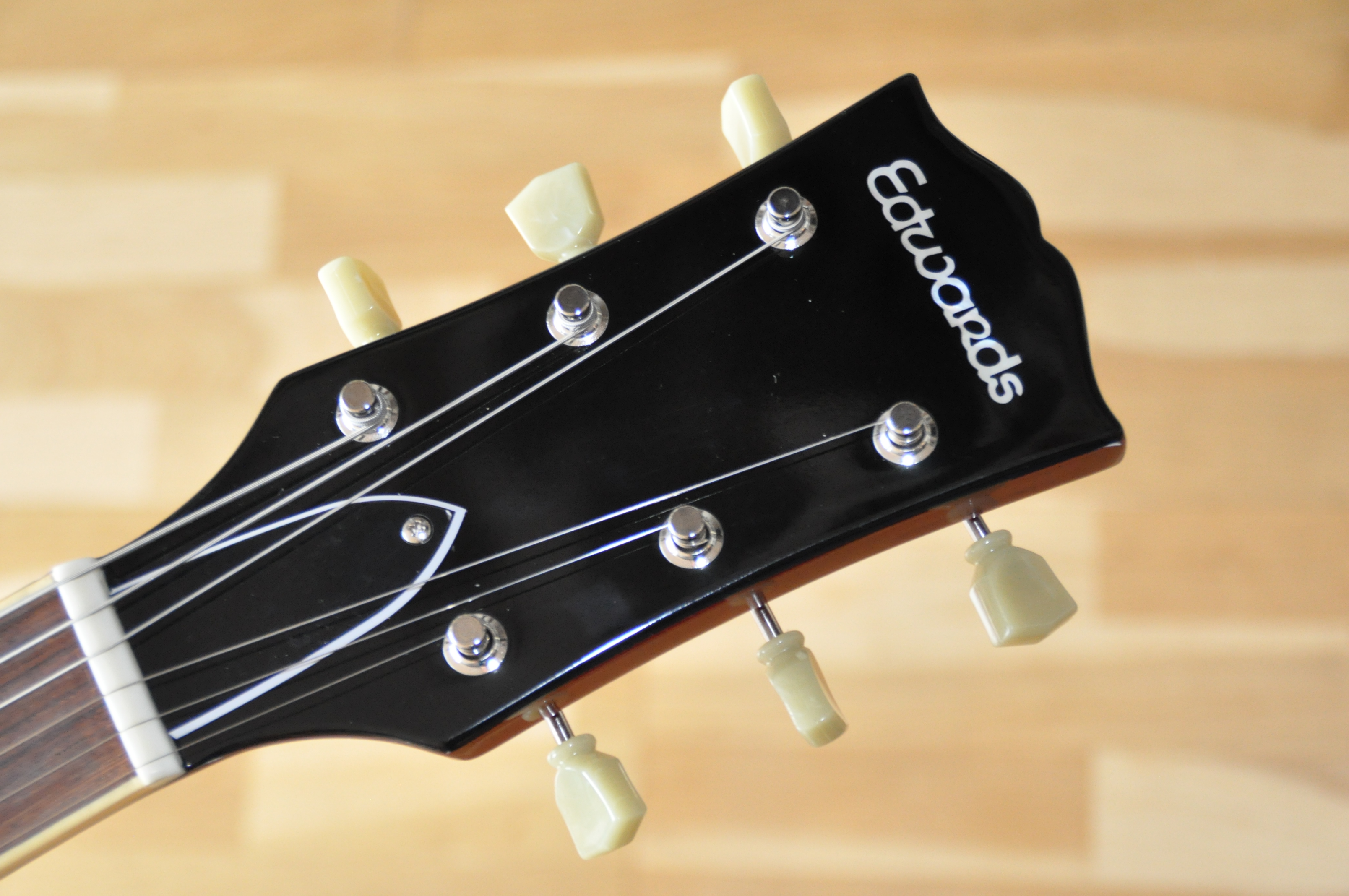 Dès que l’on prend en main cette Edwards SG-LTD, il devient évident que le savoir-faire japonais n’a rien à envier aux références américaines. Cette guitare ne se contente pas de copier l’iconique SG : elle la dépasse, en alliant élégance, confort et puissance sonore dans un ensemble cohérent et inspirant. Chaque détail reflète la rigueur et la passion de la fabrication japonaise, de l’assemblage général au frettage parfaitement ajusté. Le corps, chaleureux et résonant, offre un sustain remarquable, tandis que la finition Cherry sublime le design avec une profondeur lumineuse accentuée par les bindings blancs et les incrustations nacrées.