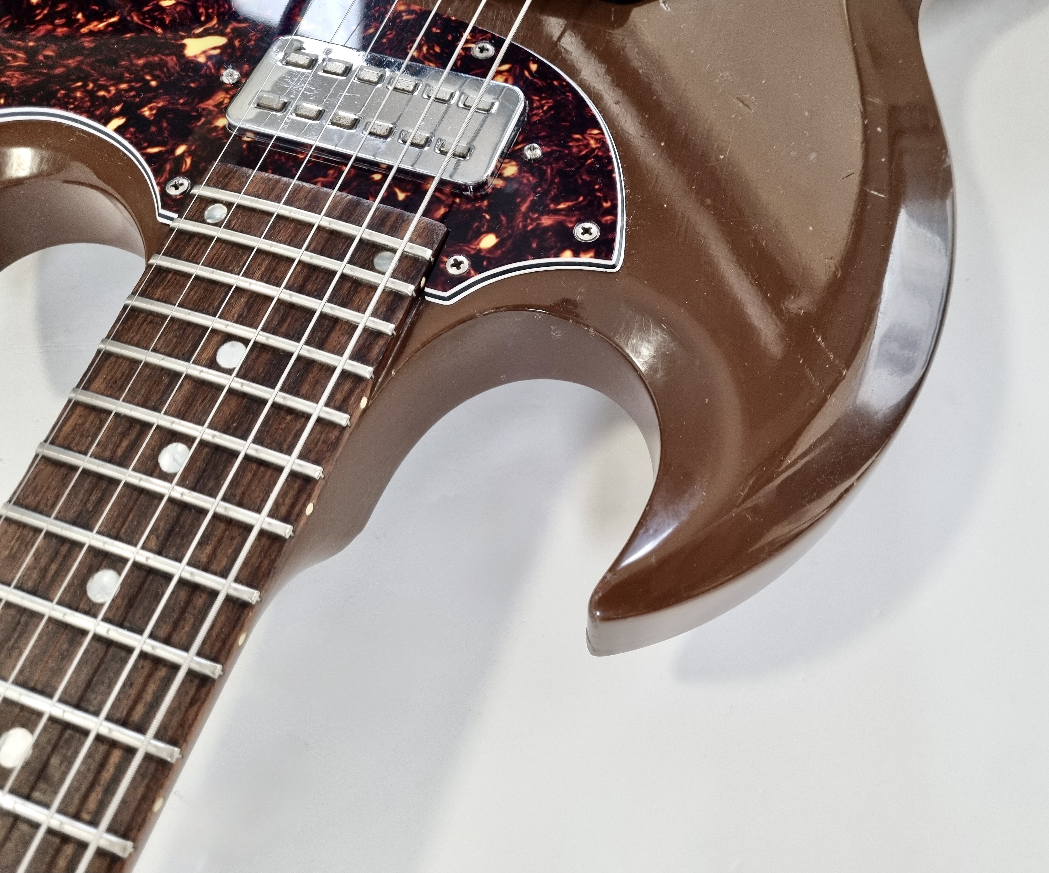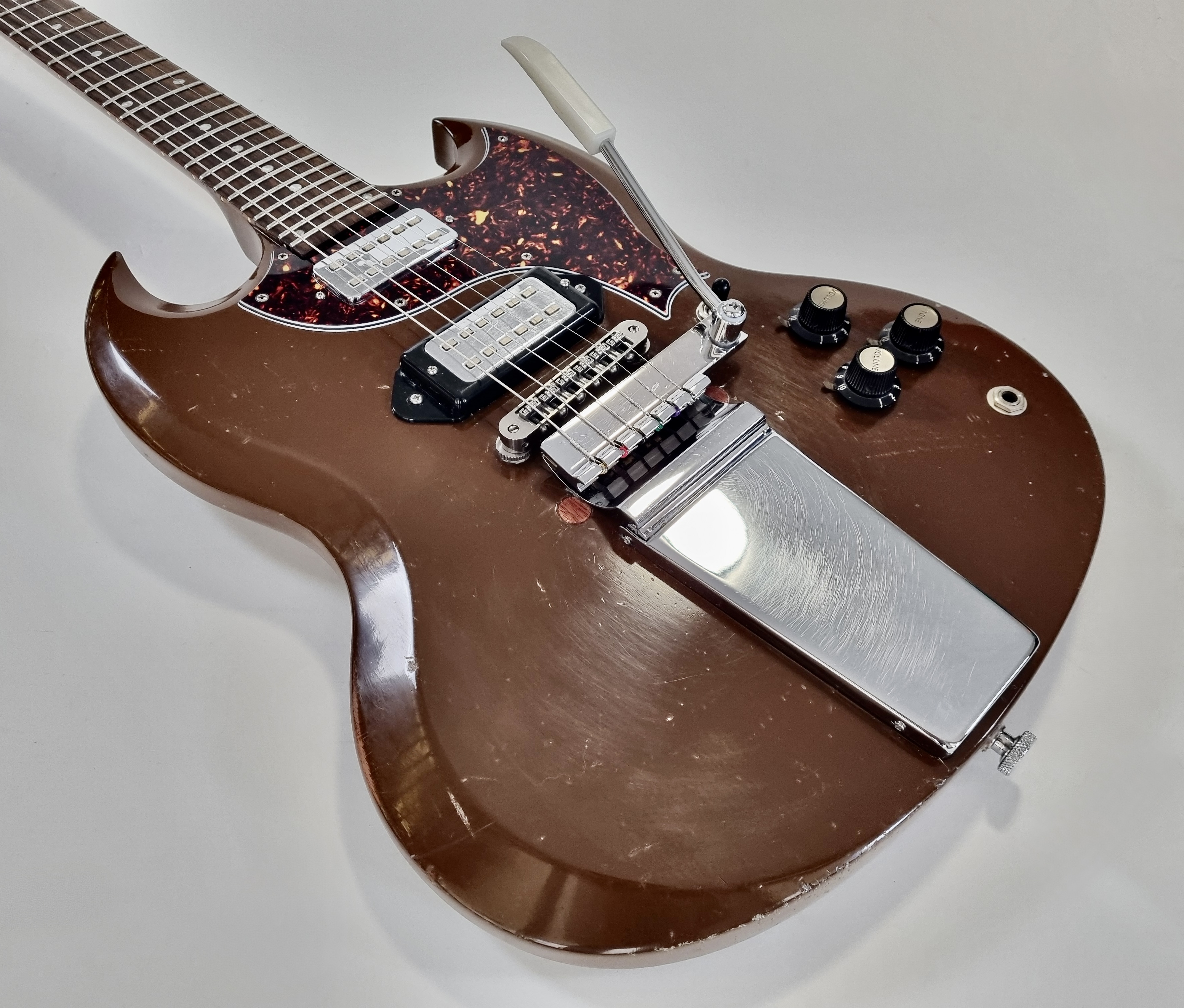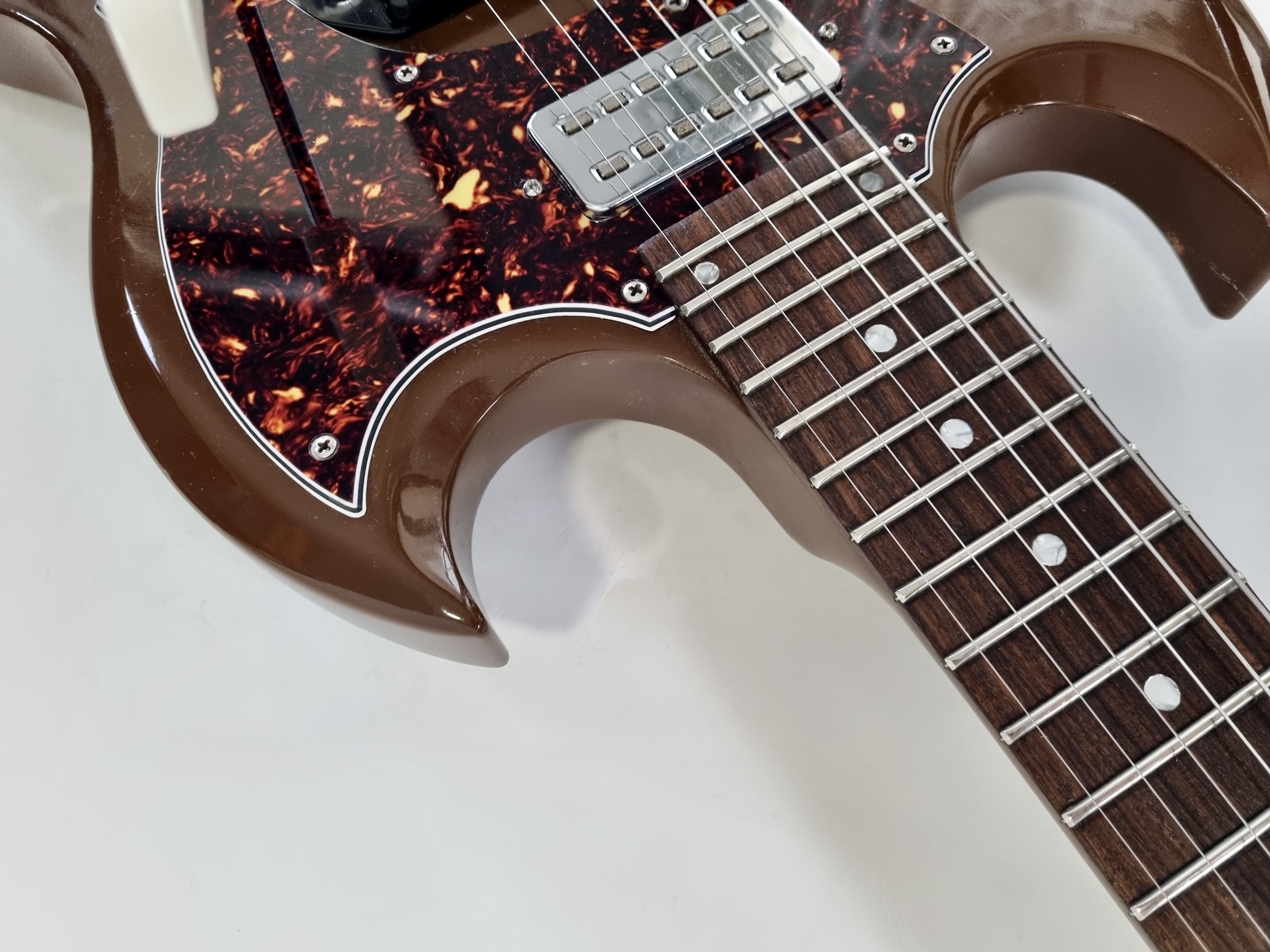 La SGX est un modèle rare et original. Tout comme une Junior elle n’a normalement qu’un seul micro, néanmoins cet exemplaire a été totalement modifié ! Autre particularité, le manche a 24 cases, parfait pour aller titiller les frettes les plus aigües. Les micros sont des humbuckers type Hofner, on notera la présence d'un vibrato Vibrola Lyre, le remplacement du chevalet, des mécaniques, etc... Cerise sur le gateau ce modèle date des 90′s, période appréciée des amateurs de la marque.Location, achat, vente, reprise, dépôt-vente.