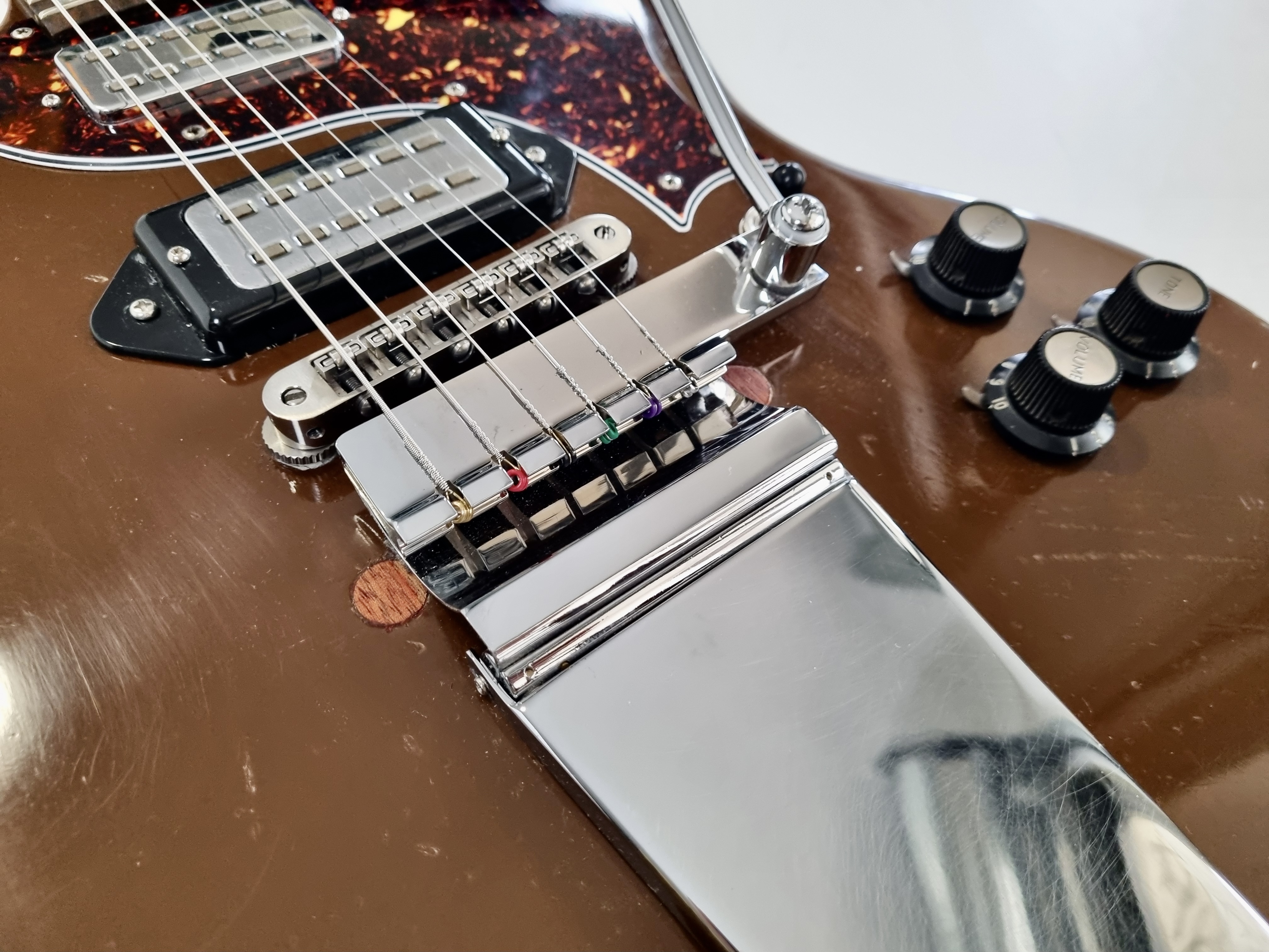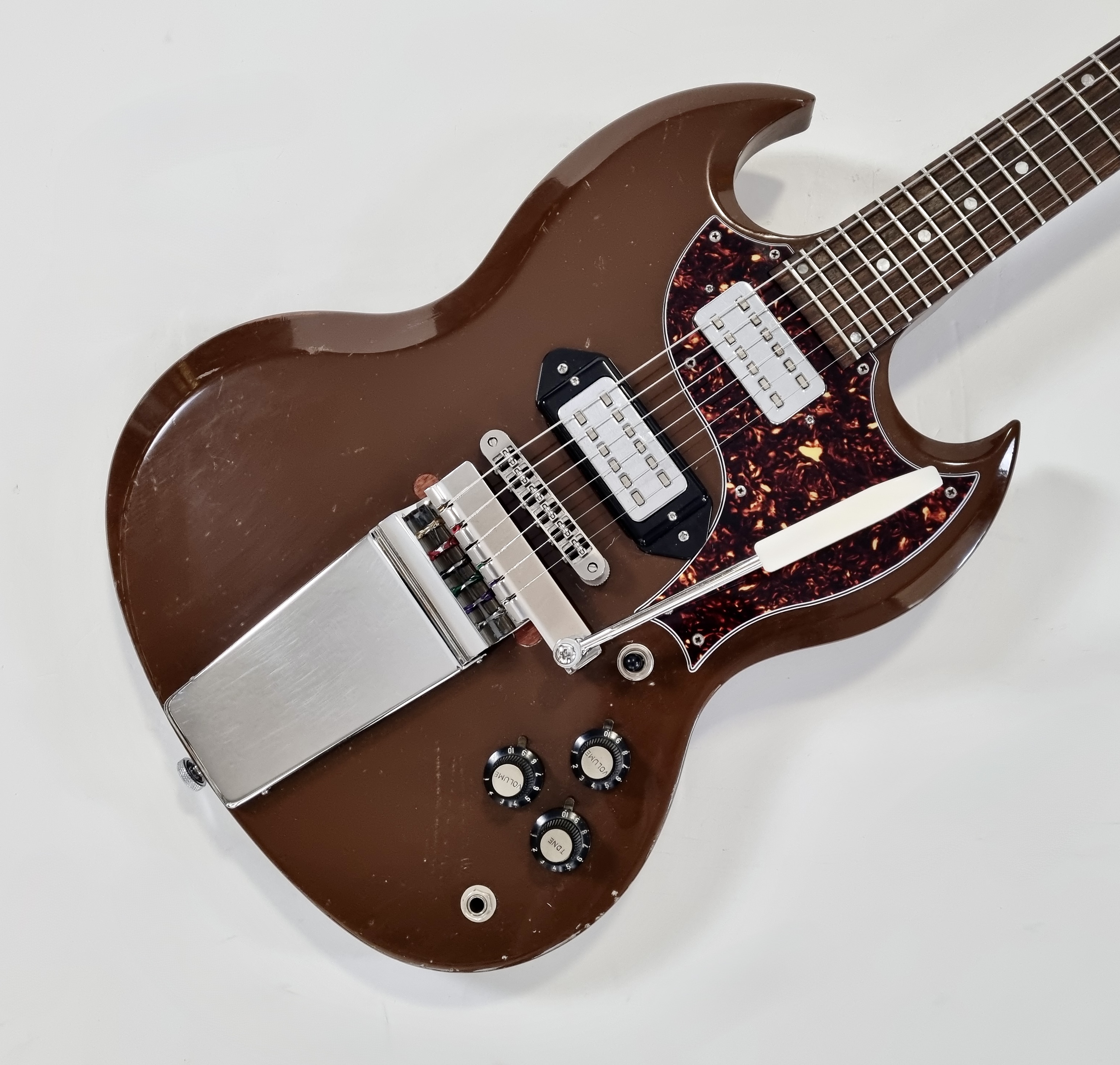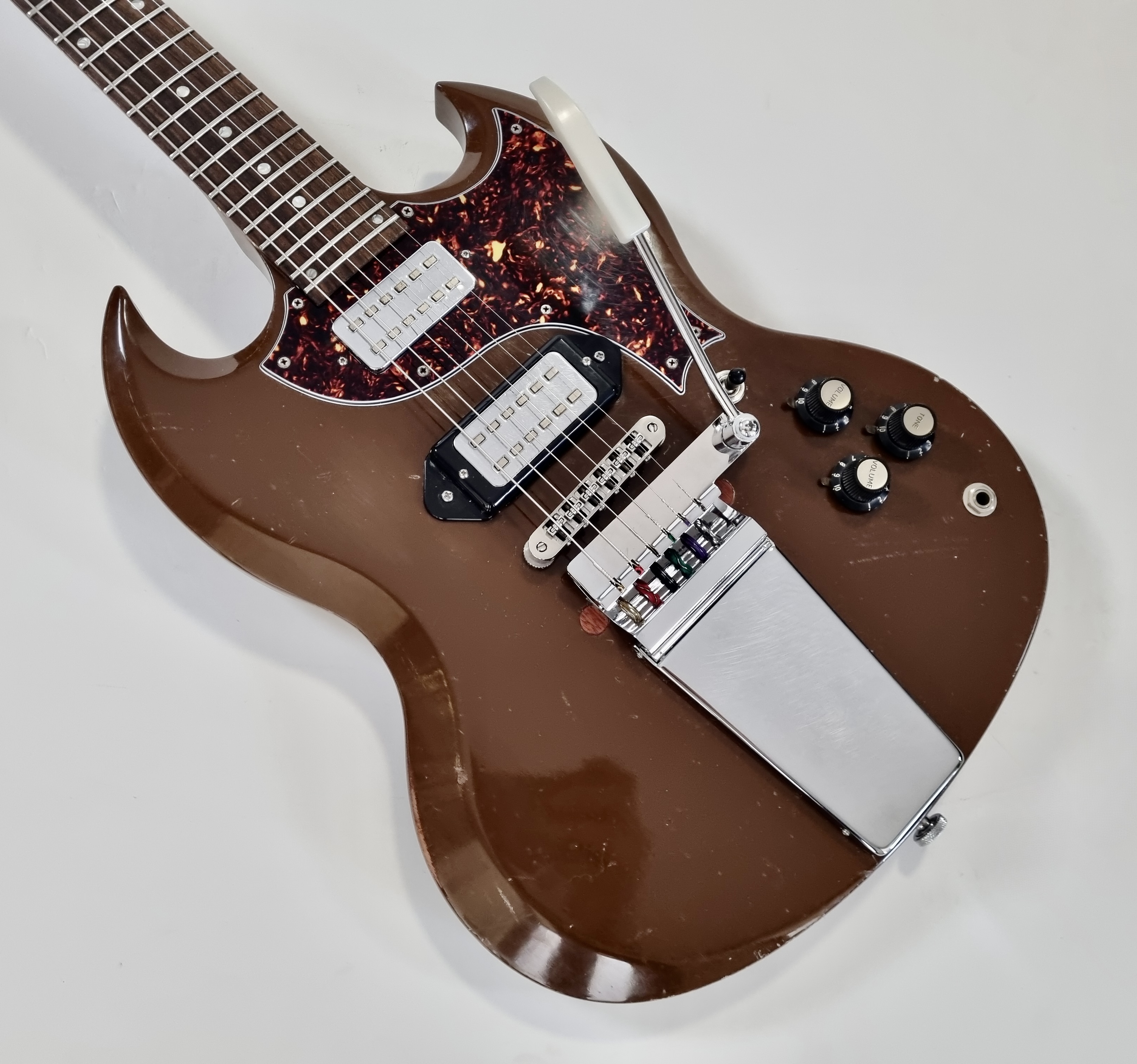La SGX est un modèle rare et original. Tout comme une Junior elle n’a normalement qu’un seul micro, néanmoins cet exemplaire a été totalement modifié ! Autre particularité, le manche a 24 cases, parfait pour aller titiller les frettes les plus aigües. Les micros sont des humbuckers type Hofner, on notera la présence d'un vibrato Vibrola Lyre, le remplacement du chevalet, des mécaniques, etc... Cerise sur le gateau ce modèle date des 90′s, période appréciée des amateurs de la marque.Location, achat, vente, reprise, dépôt-vente.