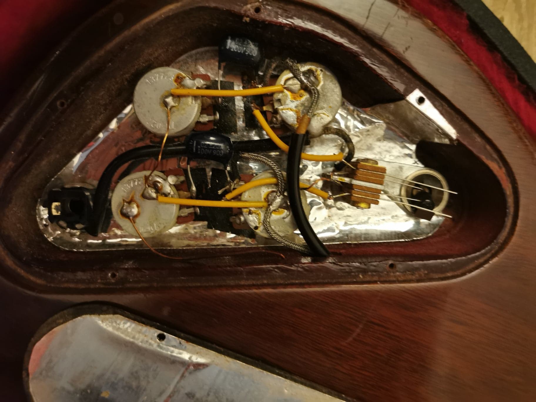 Elle sonne divinement bien, gros son avec du graou et aussi des notes bien definies , très résonnante, manche autoroute en Palissandre fin indian rosewood. Il s'agit du modèle recherché tout acajou touche palissandre et non du model noyer (walnut) touche ébène (ebony) que l'on trouve plus facilement. La couleur cherry a passé depuis toutes ces années ce qui est un classique mais on retrouve cette couleur sous le pickguard et sous le bridge. Elle présente forcément des marques d'utilisation avec de nombreuses années de jeu mais est dans un état de fonctionnement et de jouabilité parfaite ! (Le vernis a disparu derrière le manche, la touche en palissandre est creusée aux endroits ou les doigts sont venus la chatouiller ce qui prouve que cette guitare a été jouée)