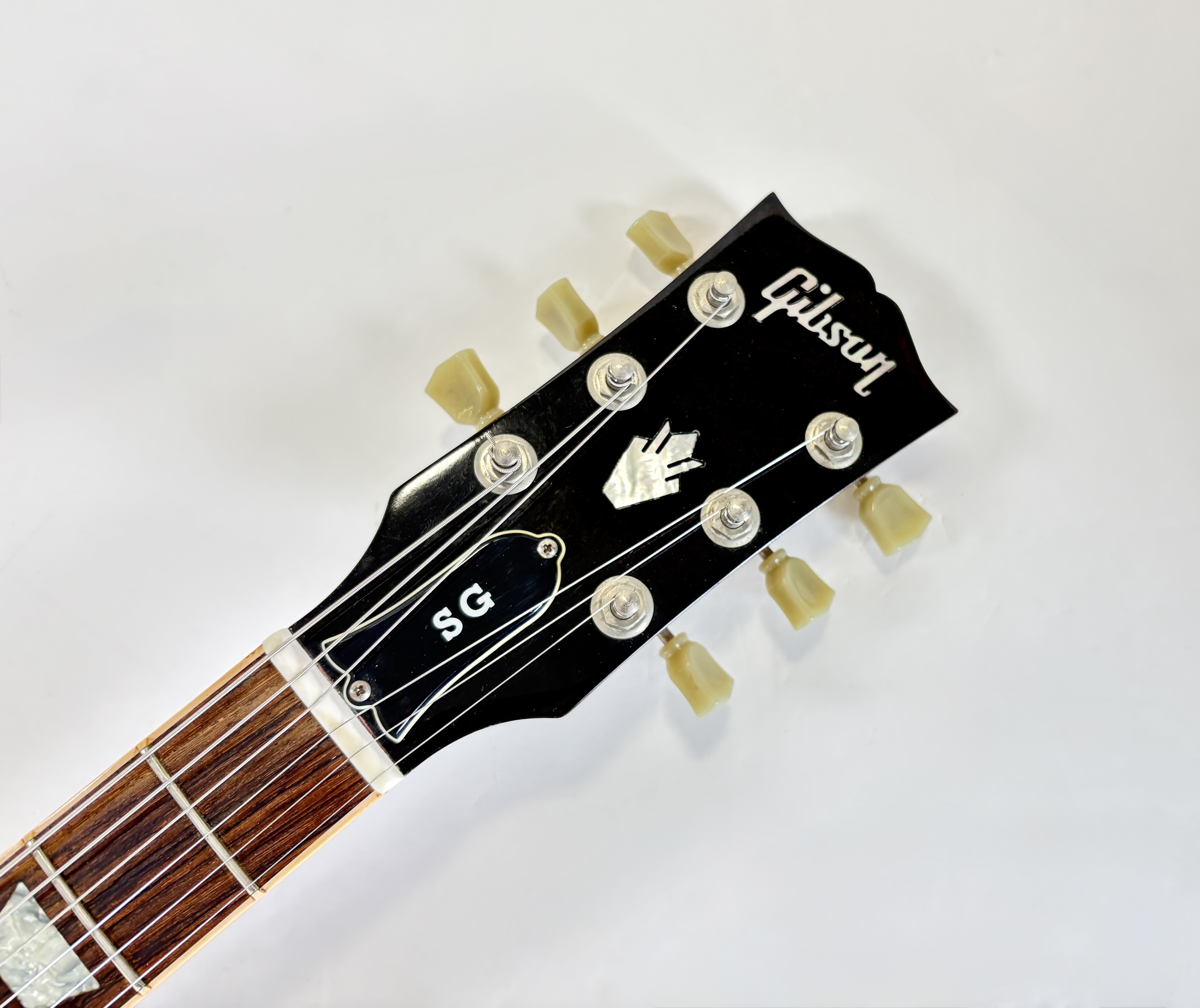 La classique : Standard et de couleur Heritage Cherry ! Cet exemplaire de 2005 est de construction également classique : corps et manche en acajou, touche en palissandre au radius de 12 pouces. Les micros d'origine ont été remplacés par d'excellents Hepcat type PAF 59. Le prix est doux car la tête a été reparée, vendue en étui générique.Location, achat, vente, reprise, dépôt-vente.