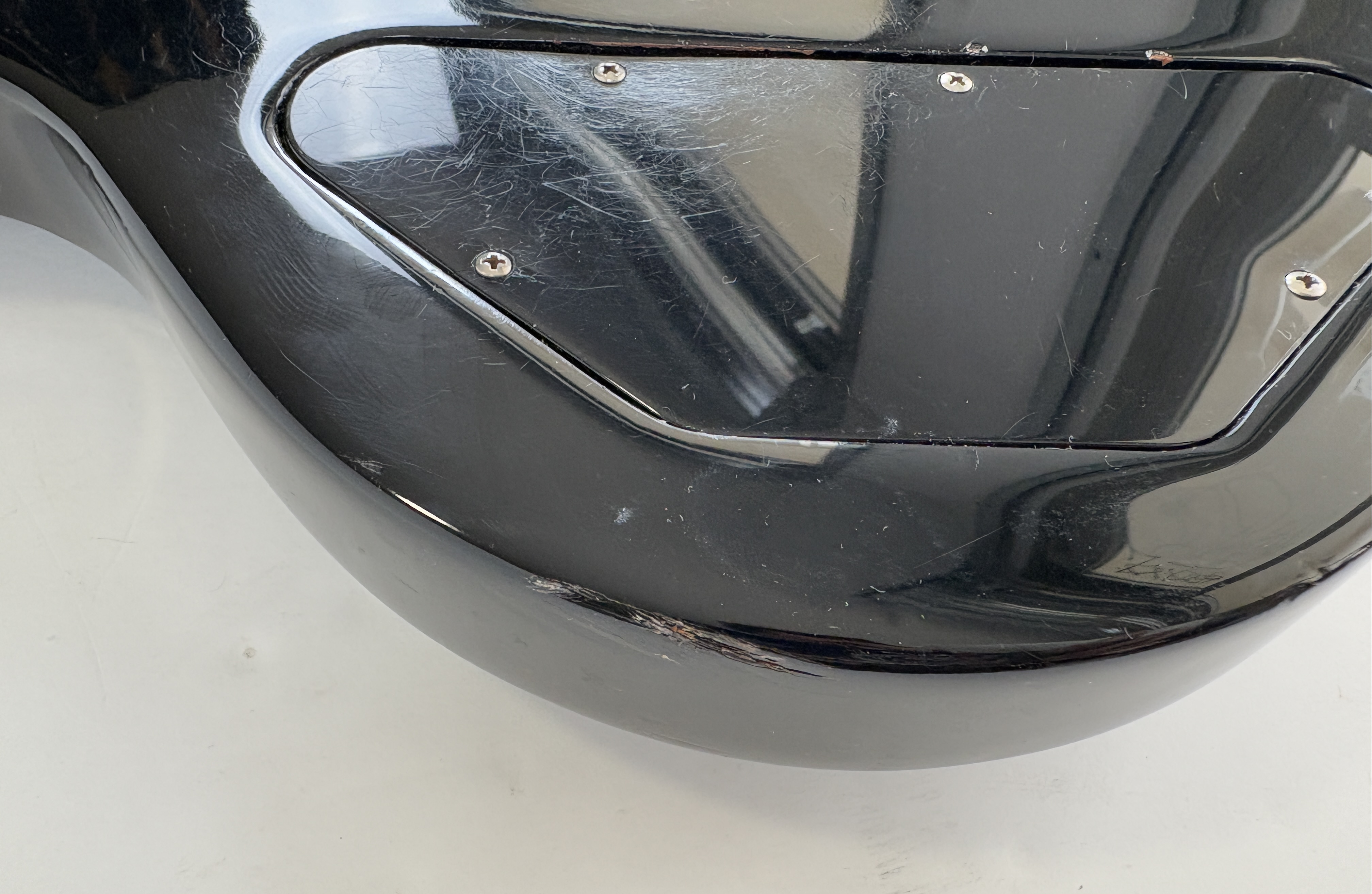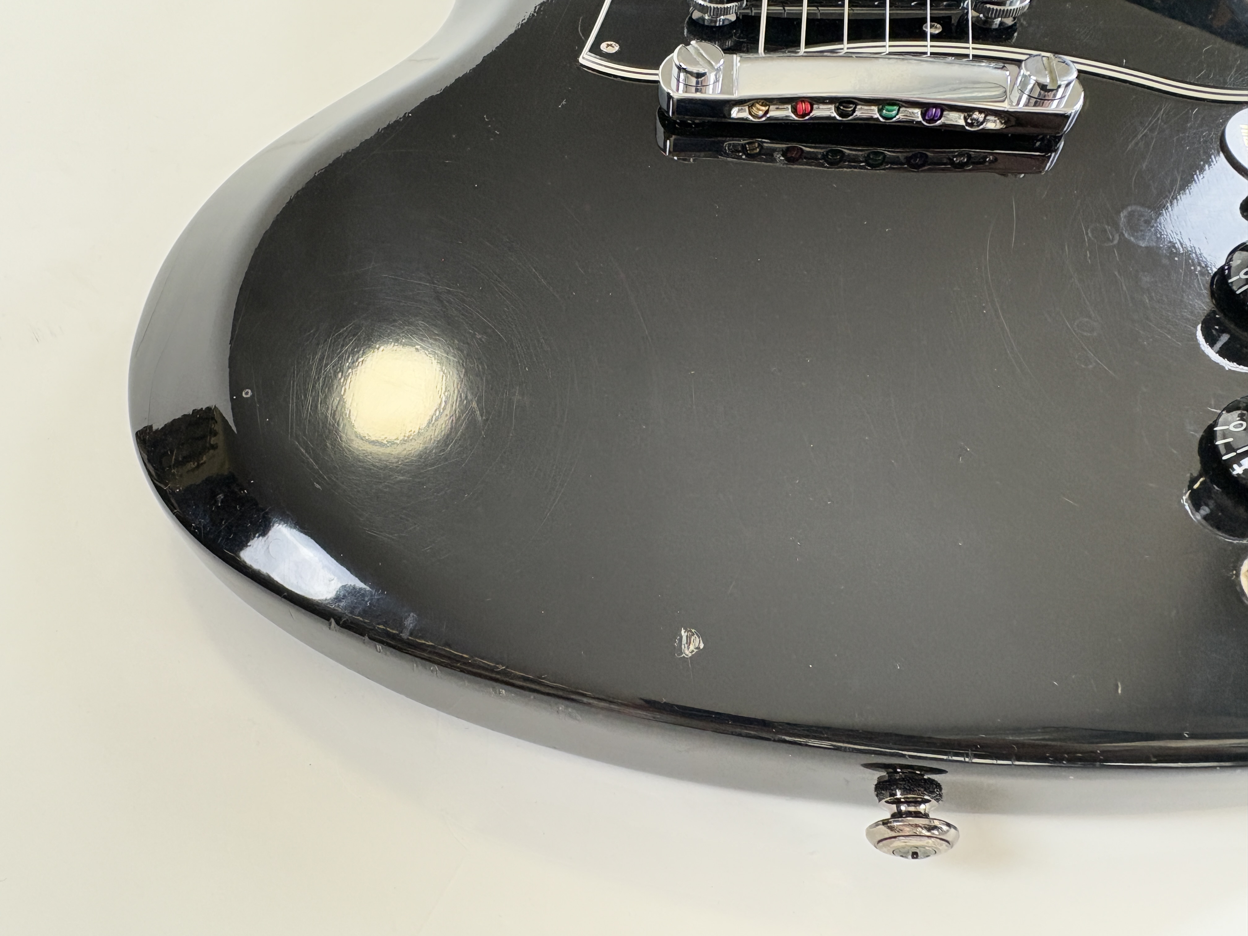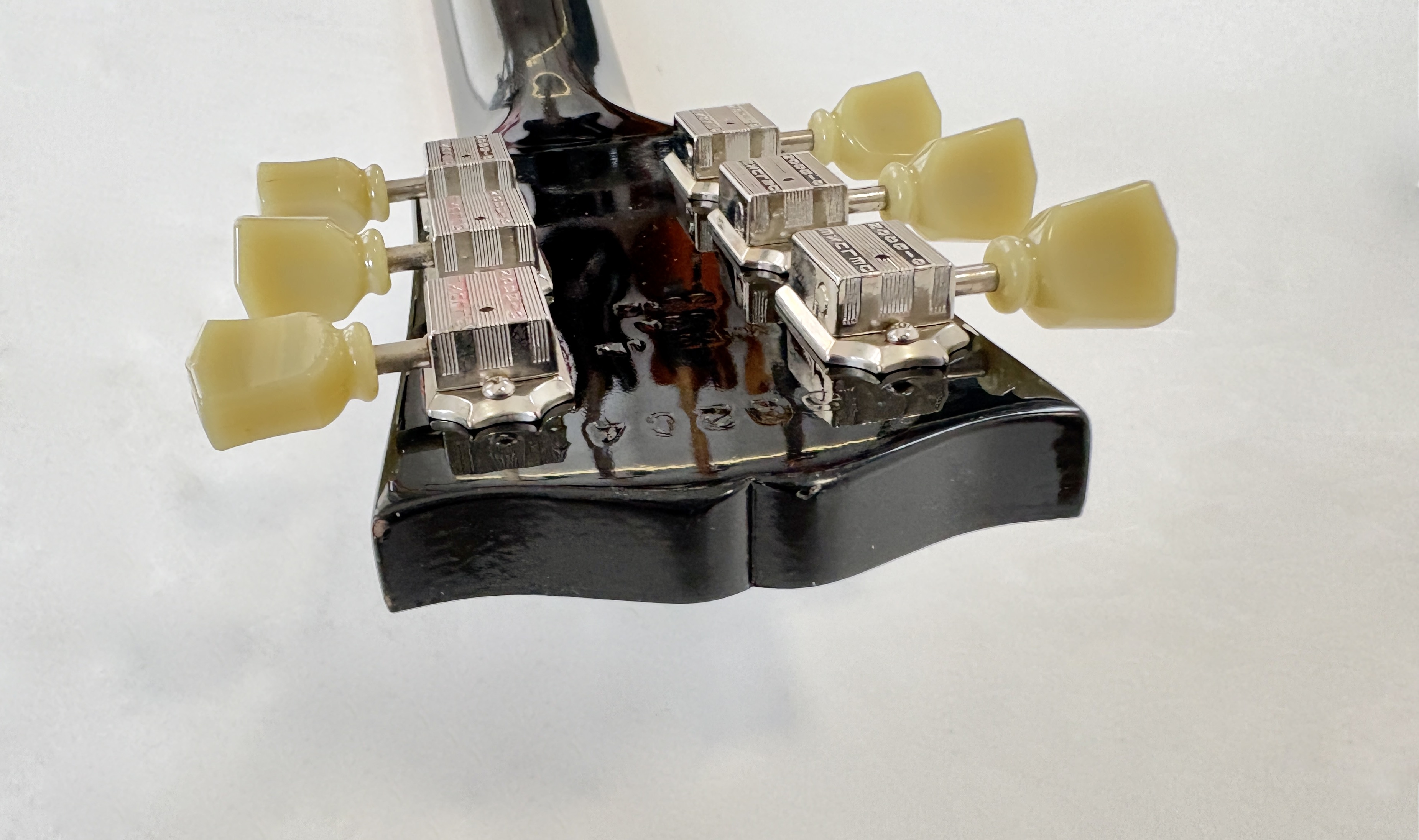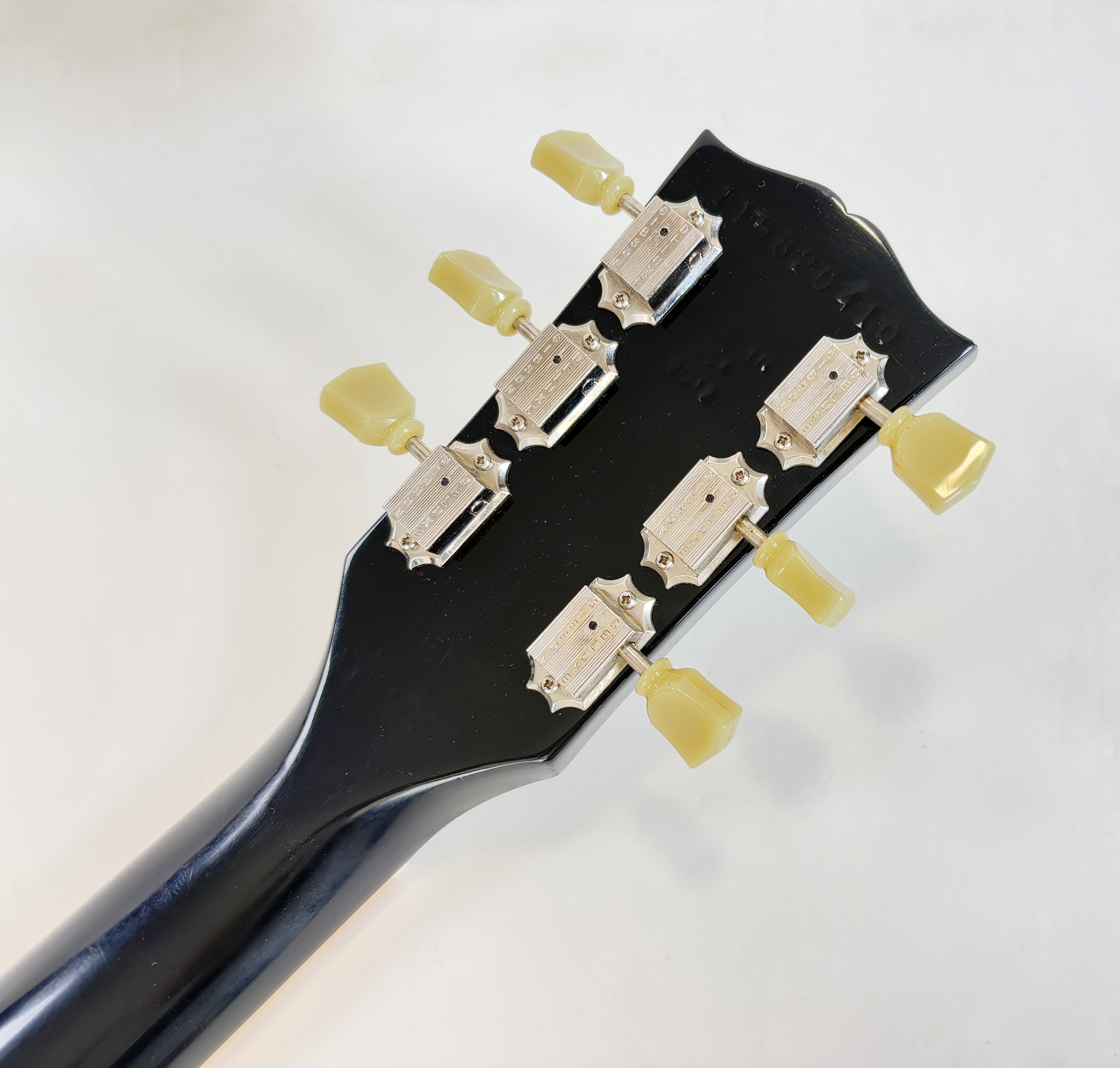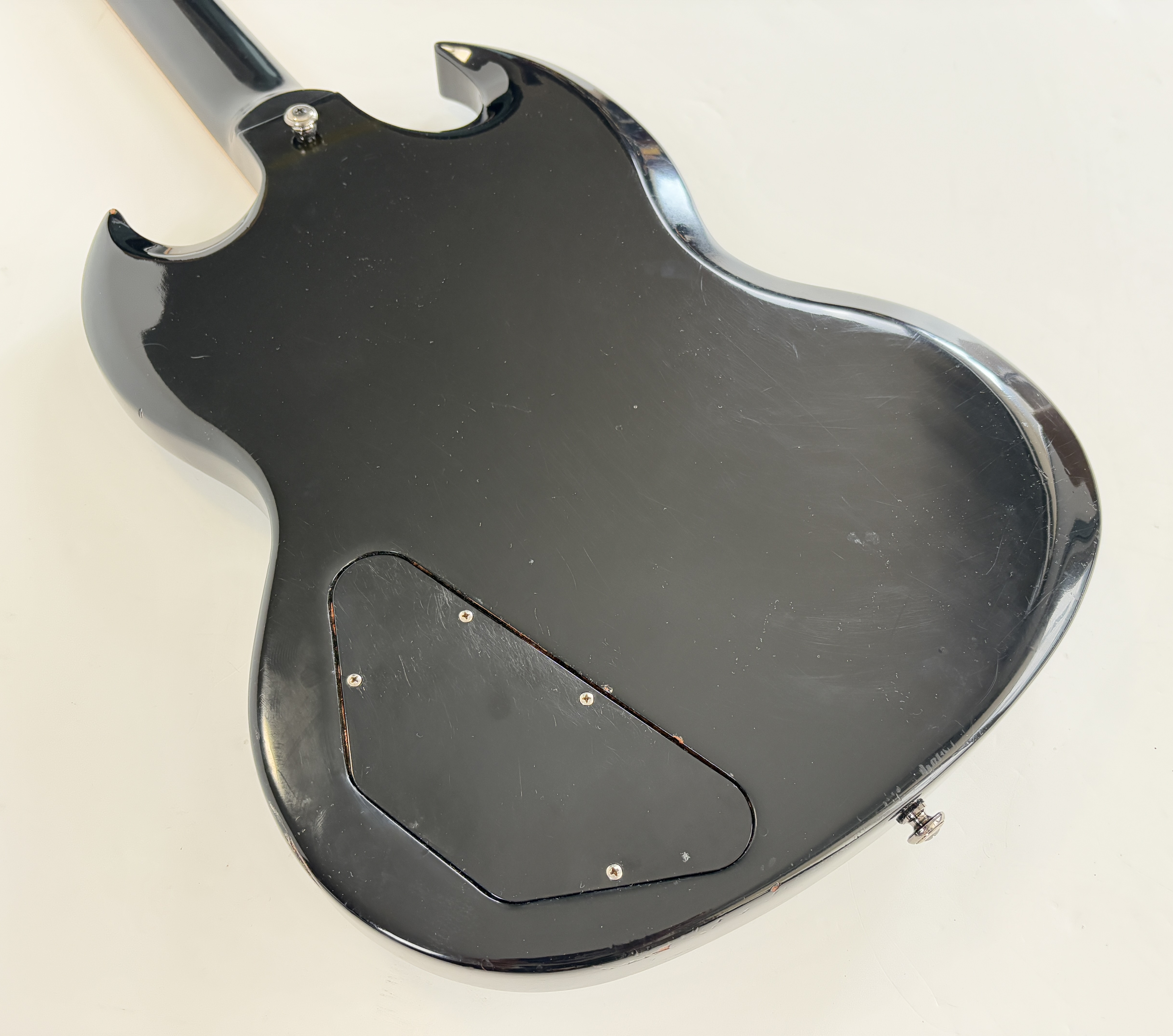Une SG, c’est souvent Cherry, ici elle se pare d’une couleur plus originale : Ebony ! La construction est classique : corps et manche en acajou, touche au radius de 12 pouces en palissandre. Cet exemplaire de 2012 se dote du duo classique de l’époque (qu’on trouvait sur les Special ou encore les Les Paul Studio, Standard ou Custom) : un doux 490R en position manche et un puissant 498T côté chevalet. Vendue dans son étui d’origine.Location, achat, vente, reprise, dépôt-vente.