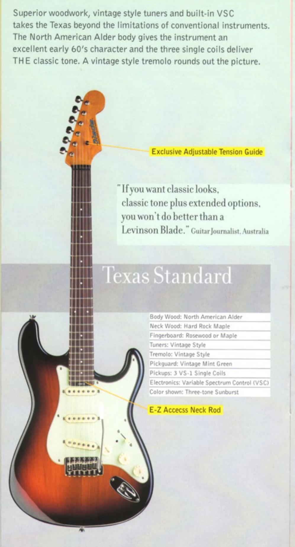 Les micros sont également de marque Levinson (la "maison-mère" de Blade) et conçus/designés par Gary Levinson.