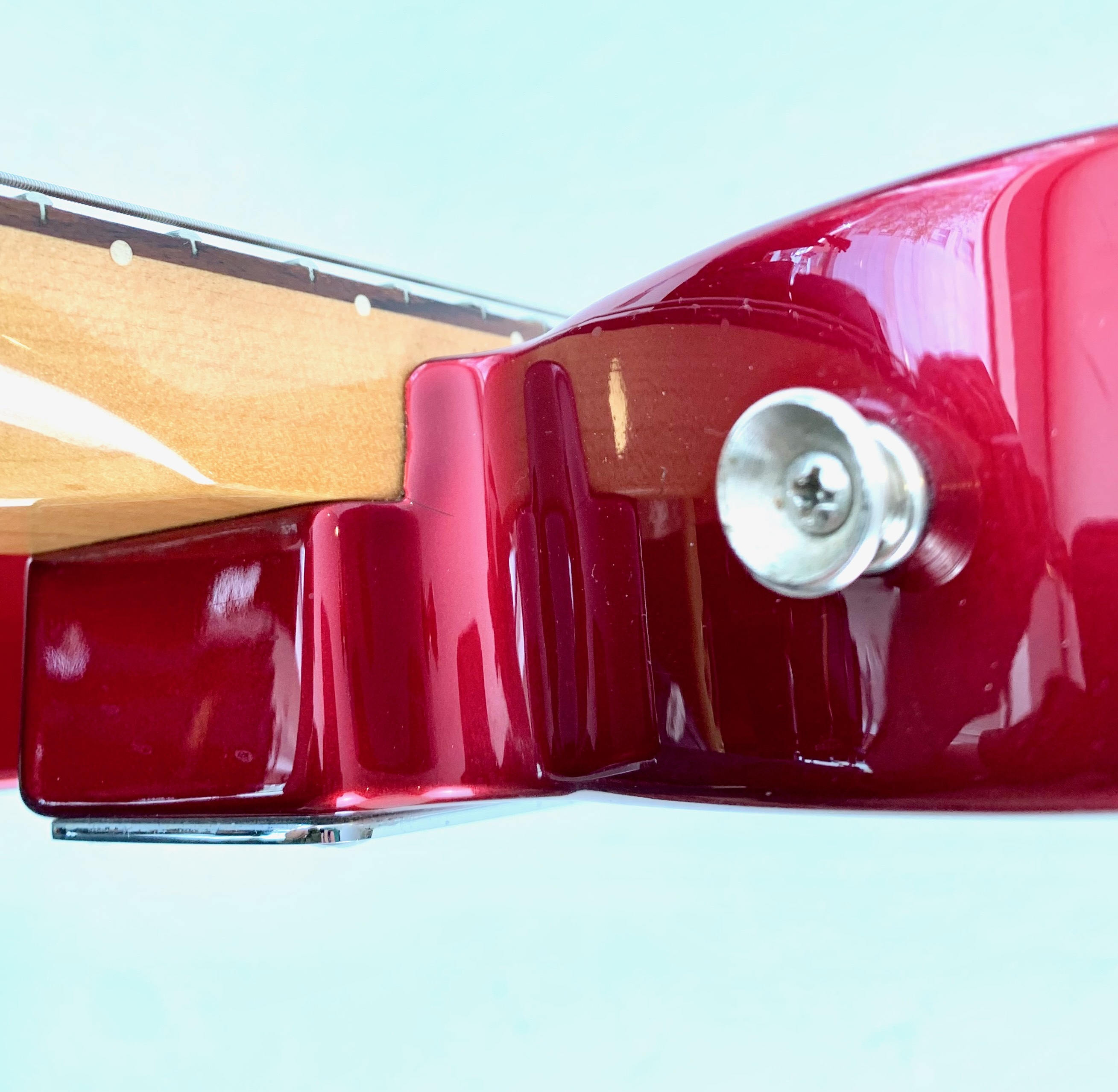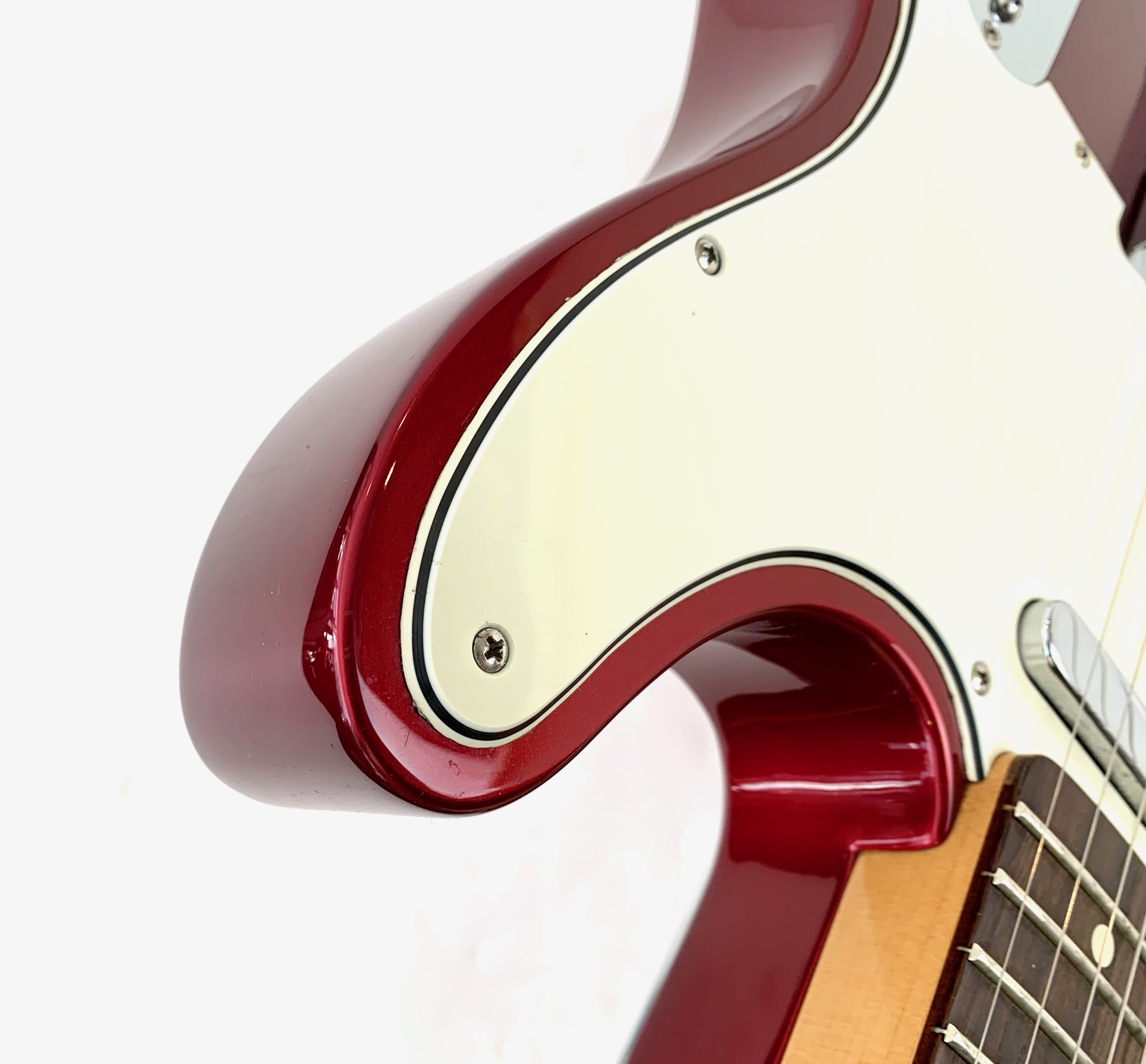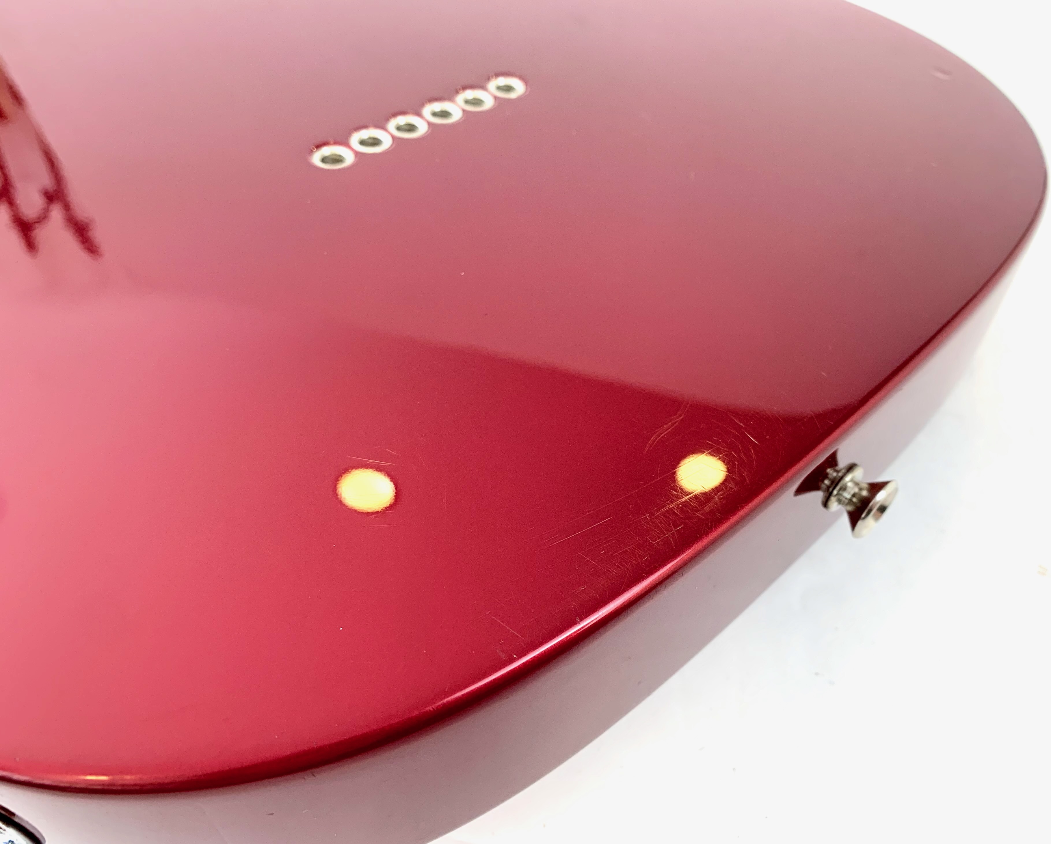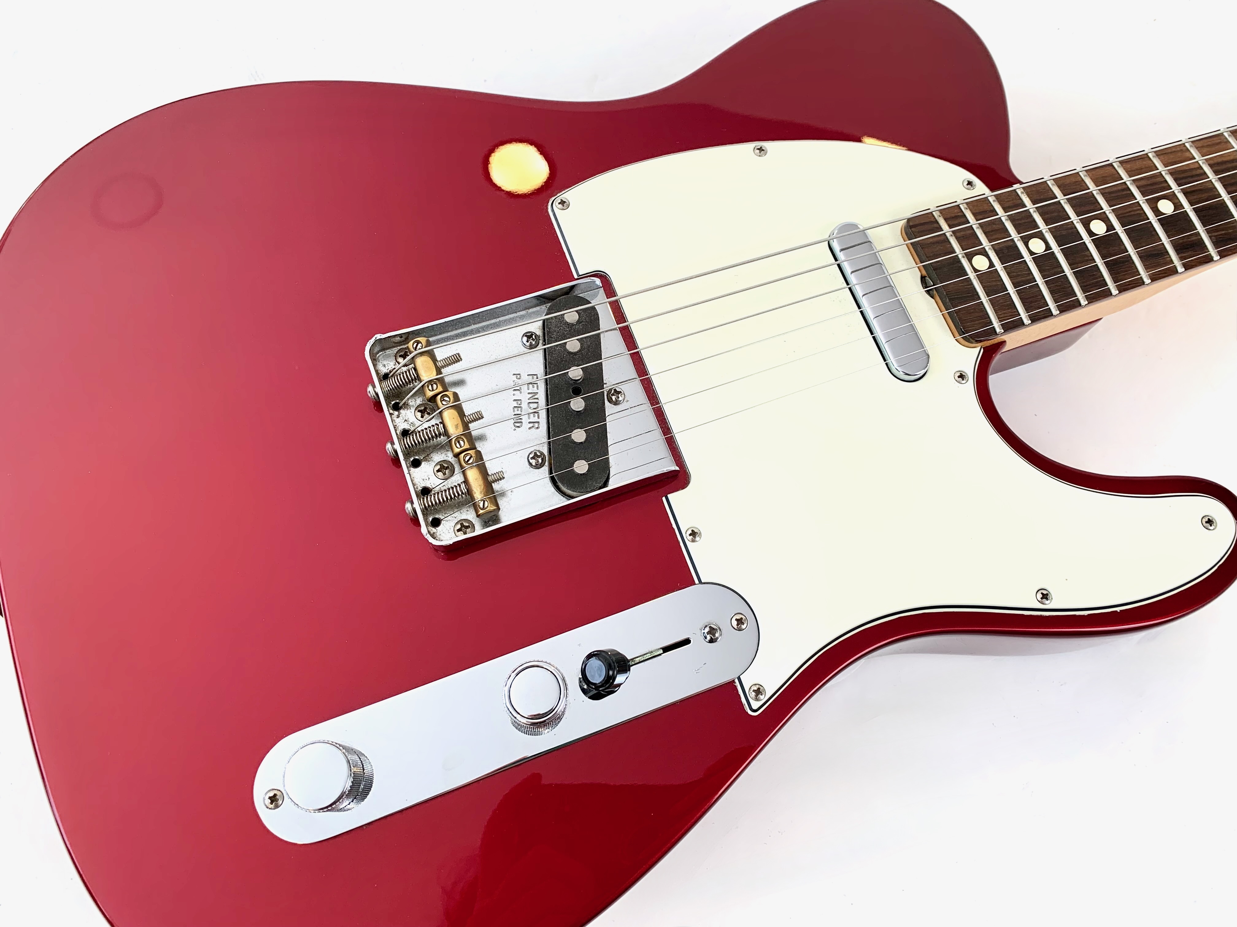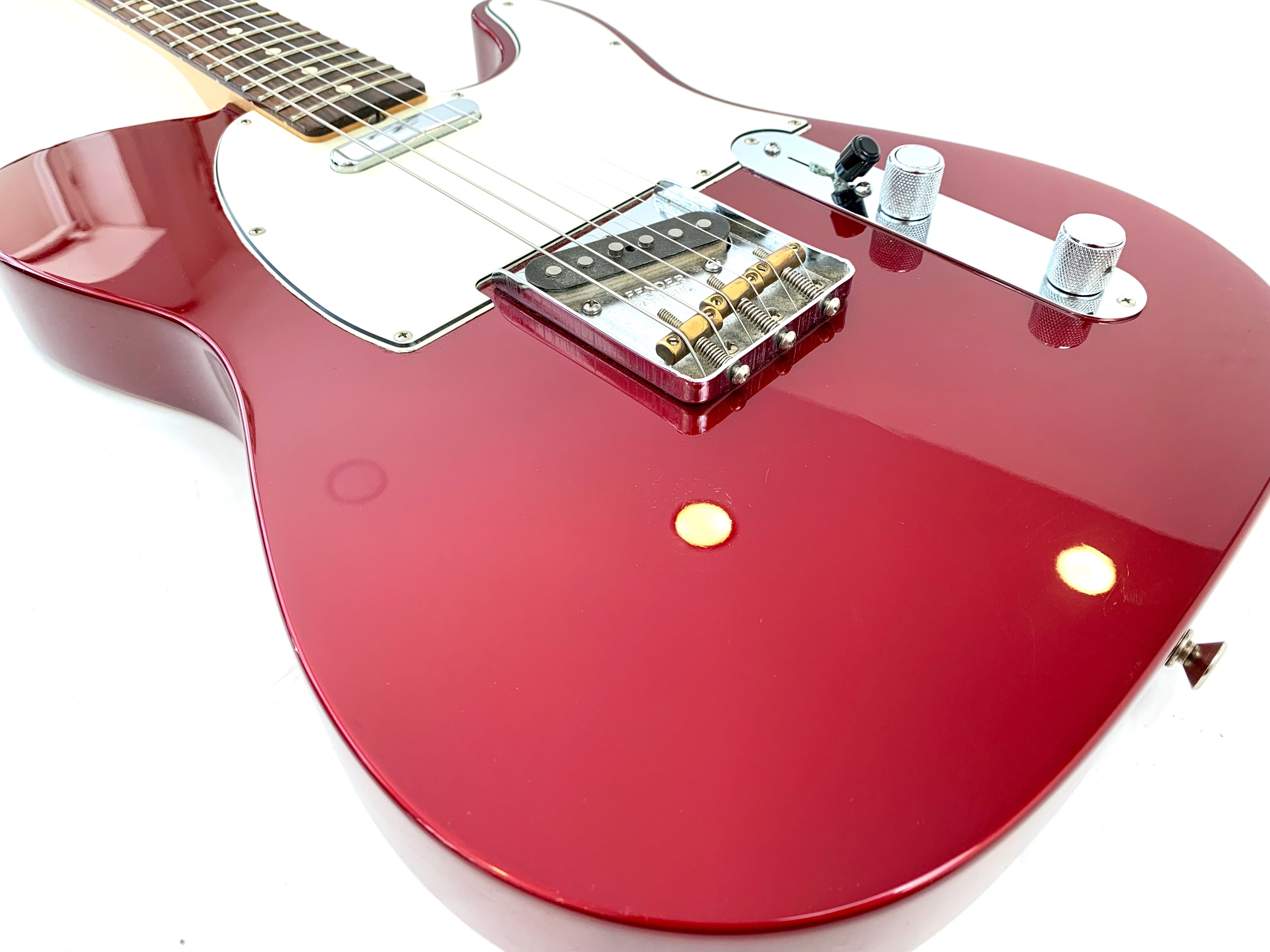 Look vintage 60's mais quelques touches de modernité pour cette Baja, en effet le volume se dote d’un switch S-1 pour du hors phase et d’un sélecteur quatre positions permettant de brancher les micros en série pour un effet humbucker. Le manche profil C en érable touche palissandre offre un radius de 9,5 pouces et les micros sont américains : des American Vintage, 58 en chevalet et 52 en position manche ! Complètement d’origine, elle est assez rare en livrée Candy Apple Red !Dépôt-vente, achat, vente, reprise, location.