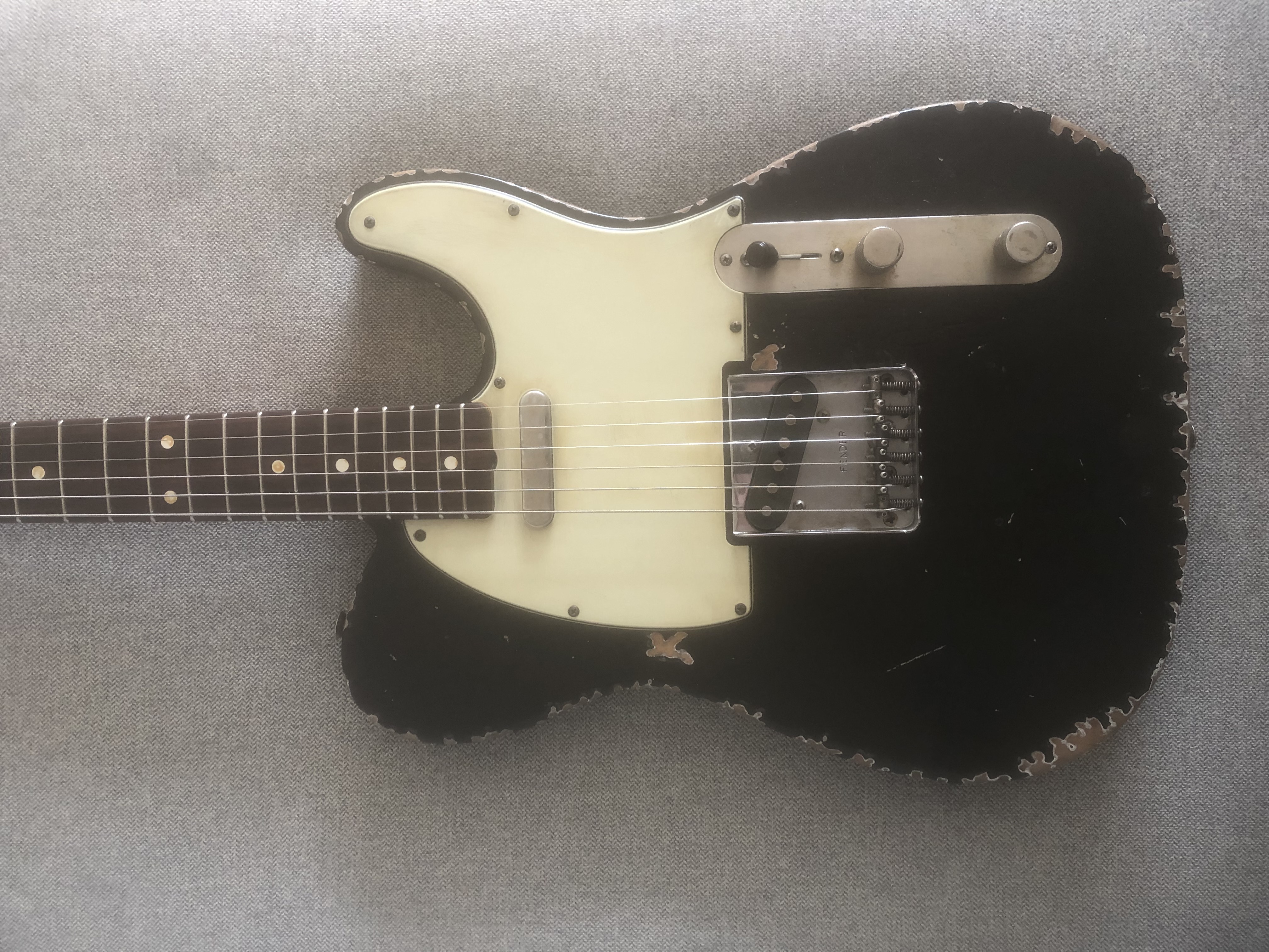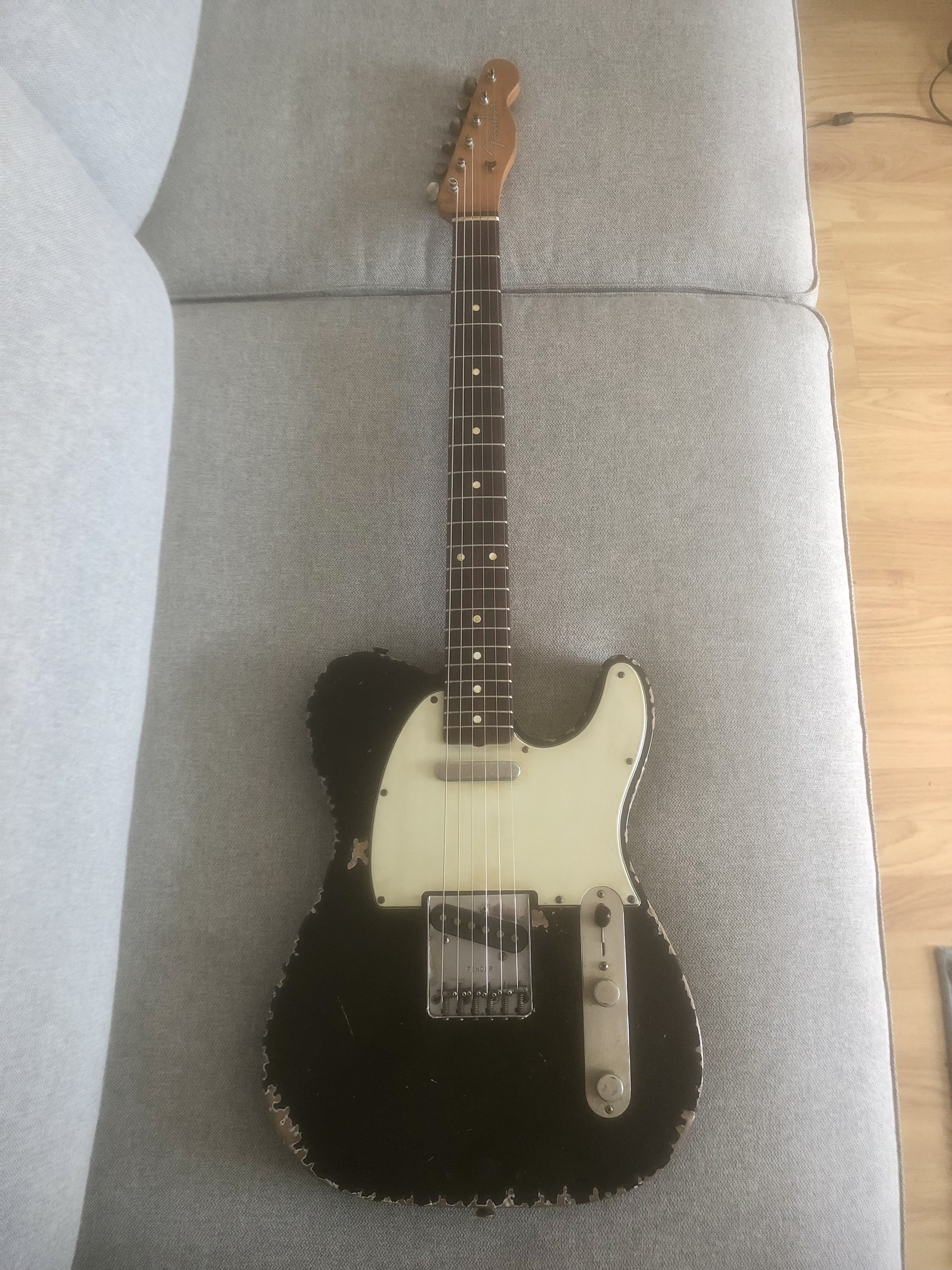 C’est la première édition de la série Joe Strummer de 2007. Le relic a été amélioré par un luthier.Les pickups ont été remplacés par des Texas spécial bien meilleurs que les originaux et l’électronique changée pour du CTS. Le son est fabuleux. Très rock!