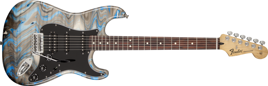 La nouvelle finition Swirl appliquée aux guitares de série Fender Standard utilise plusieurs couleurs travaillées façon marbre. Le caractère aléatoire de ce traitement fait que chaque exemplaire possède une finition unique.