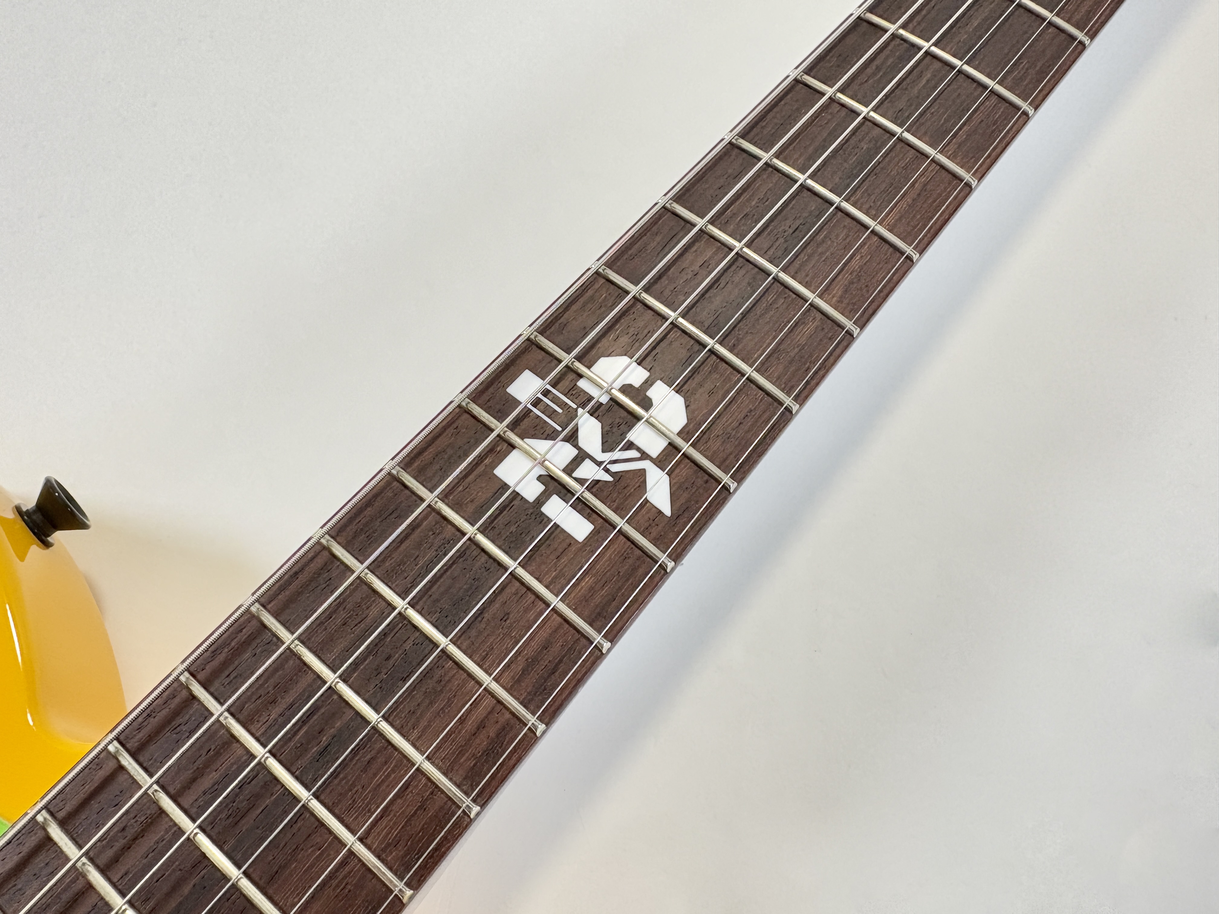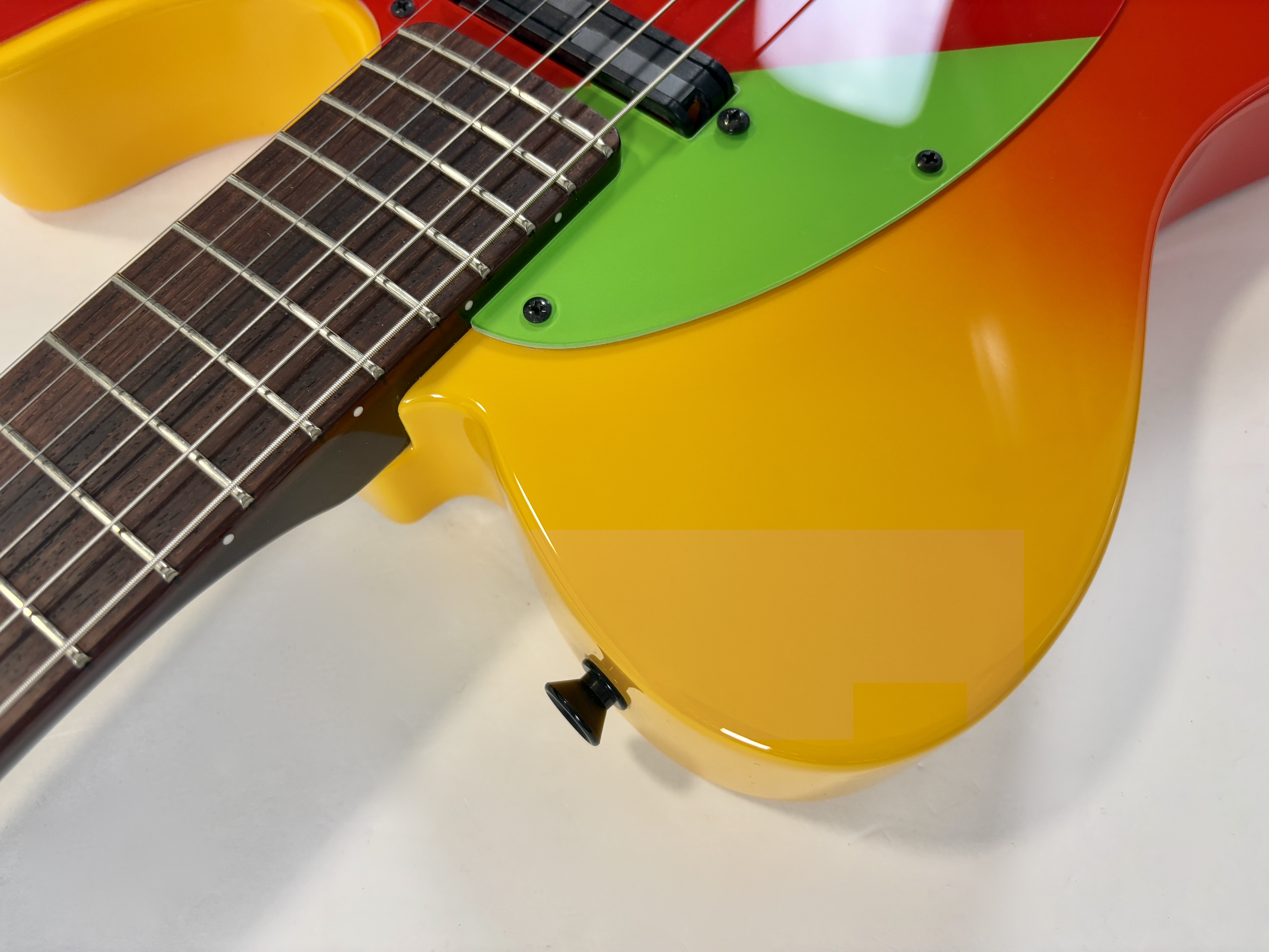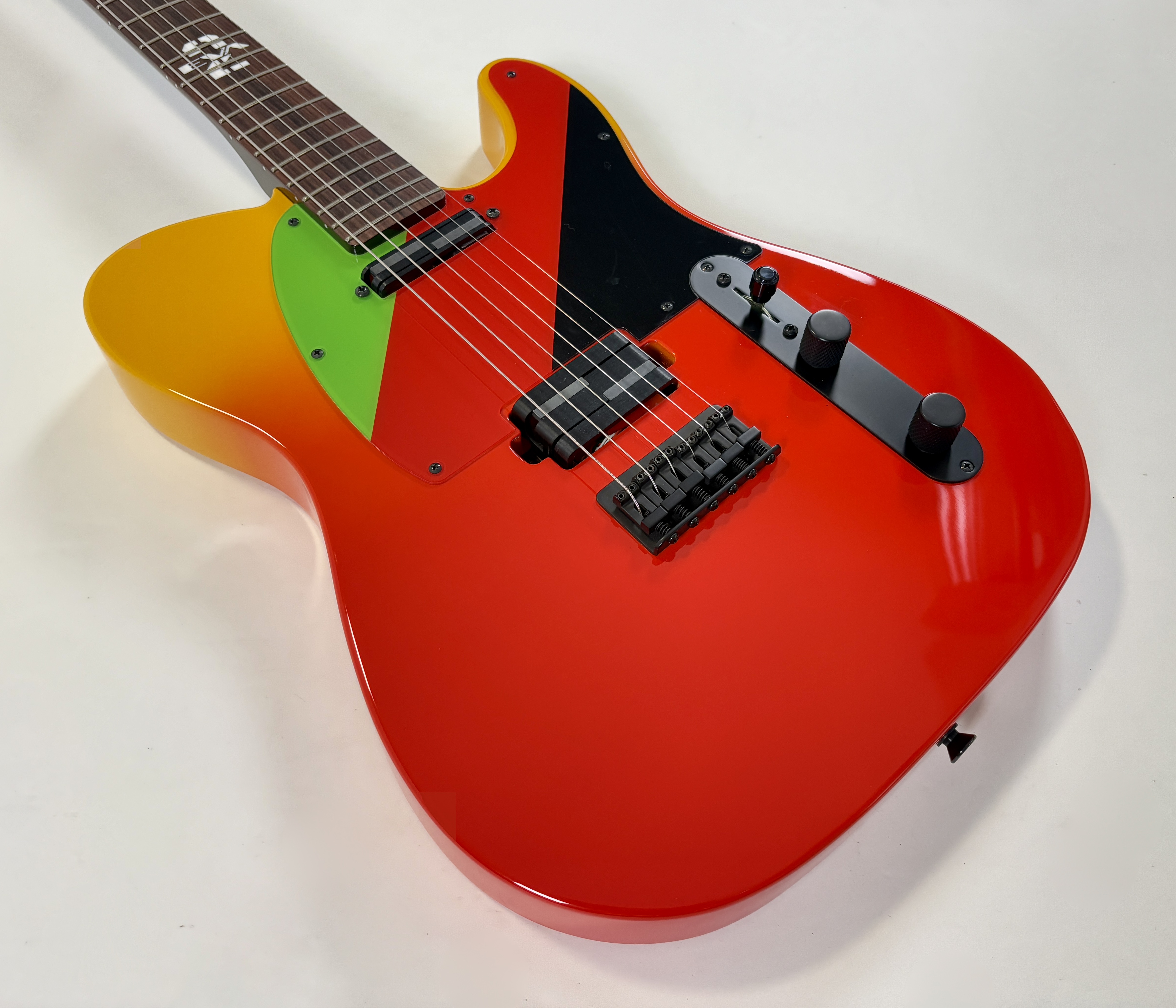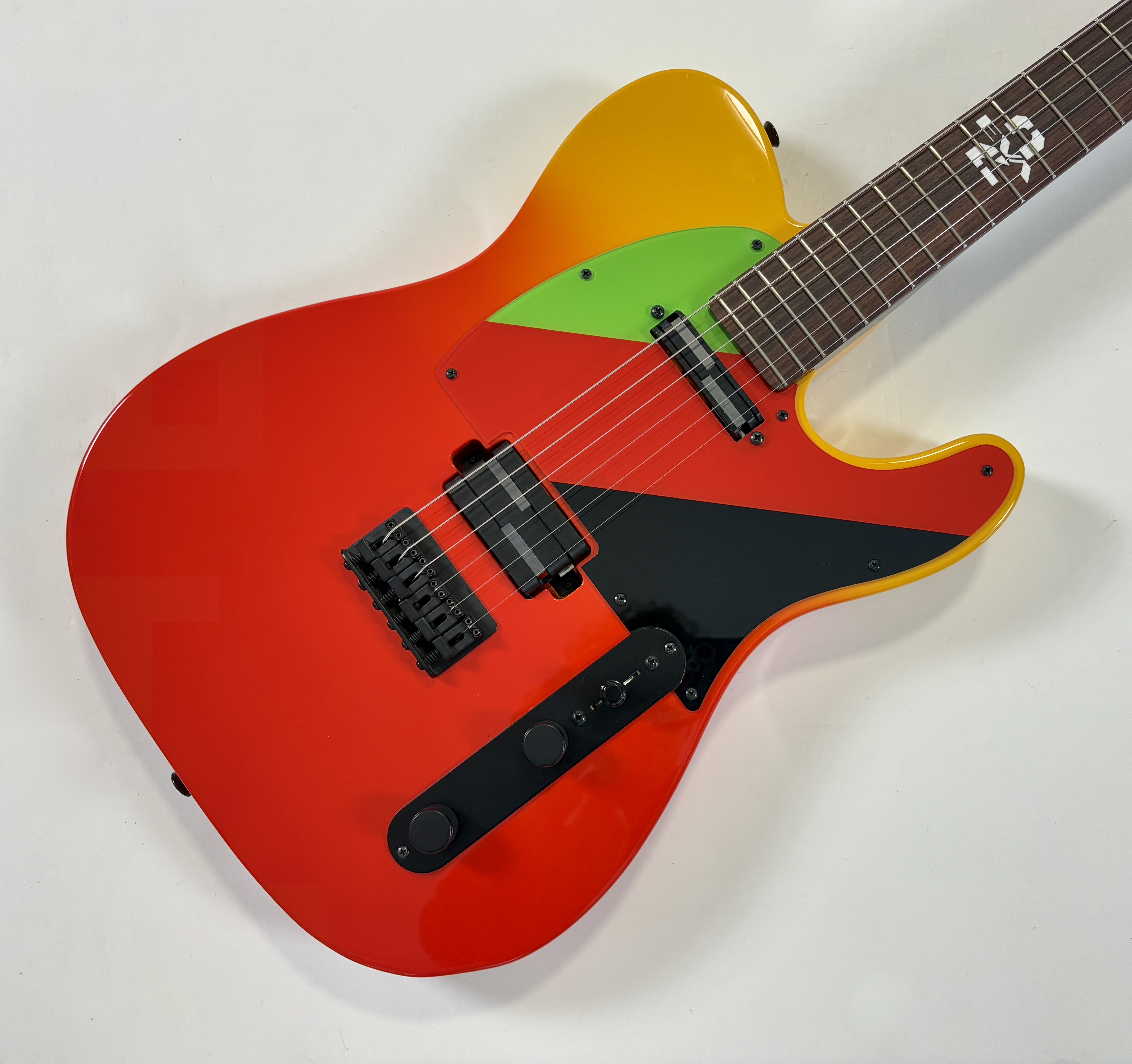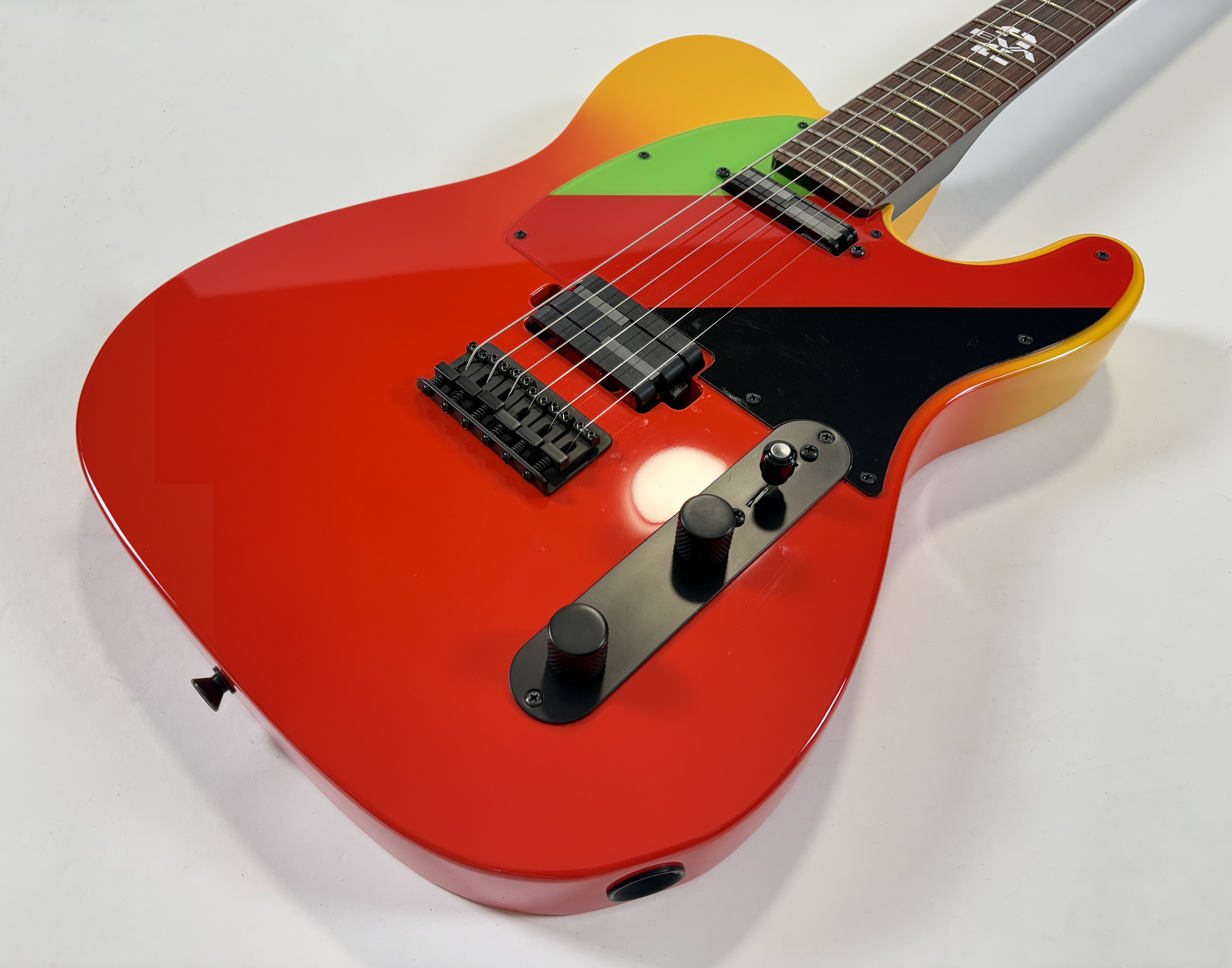 Issue de la série d'animation japonaise Neon Genesis Evangelion cette Telecaster s'offre un design unique ! La lutherie est assez classique : corps en aulne, manche en érable avec touche palissandre au radius de 9,5 pouces. En revanche la partie électronique configuration HS change puisqu'elle est dotée d'une paire de micros Lace Alumitone, un simple en manche et un double en position chevalet. Celle-ci porte le numéro 311, vendue avec son certificat d'authenticité, dans son étui rigide.Location, achat, vente, reprise, dépôt-vente.