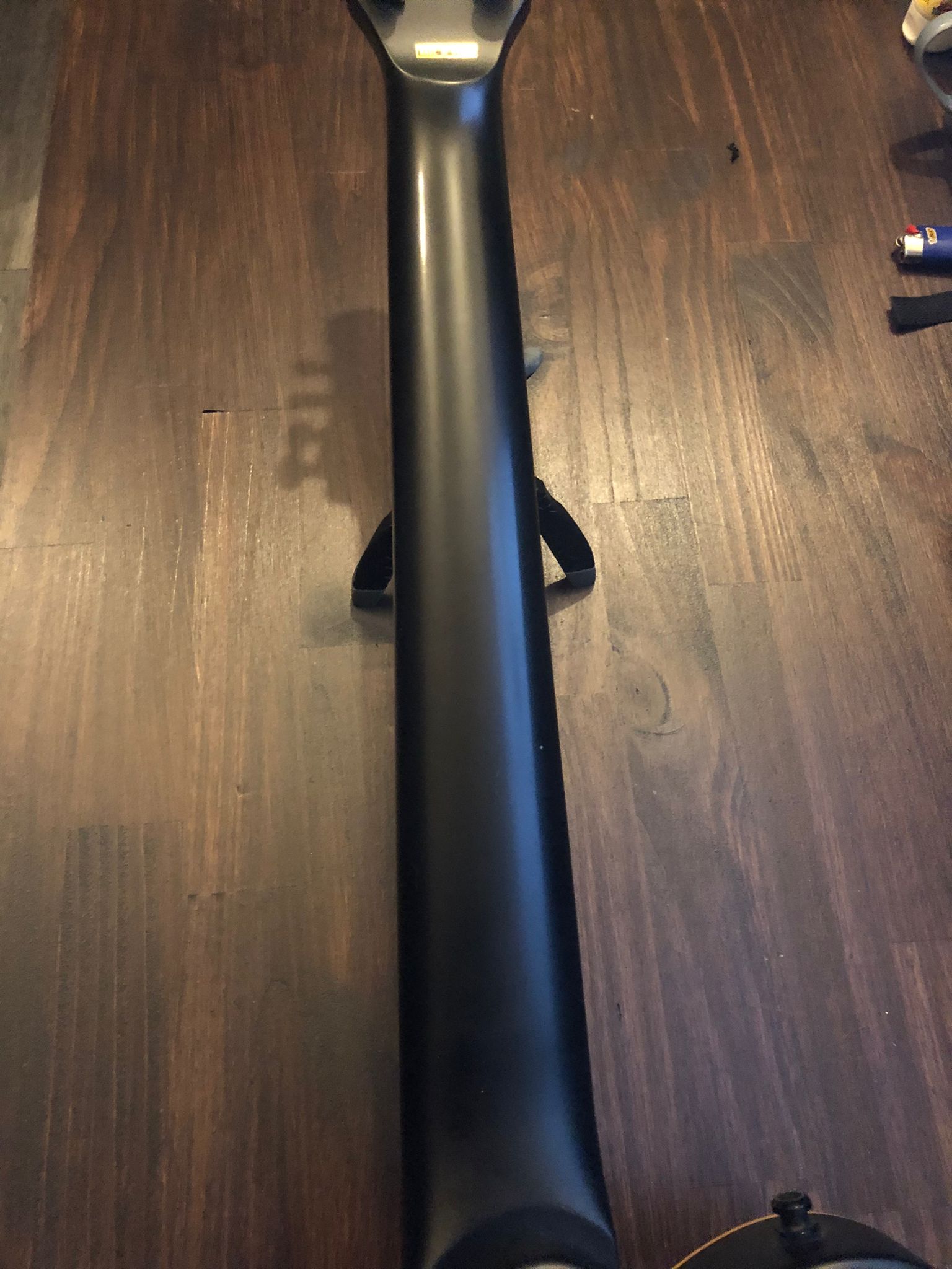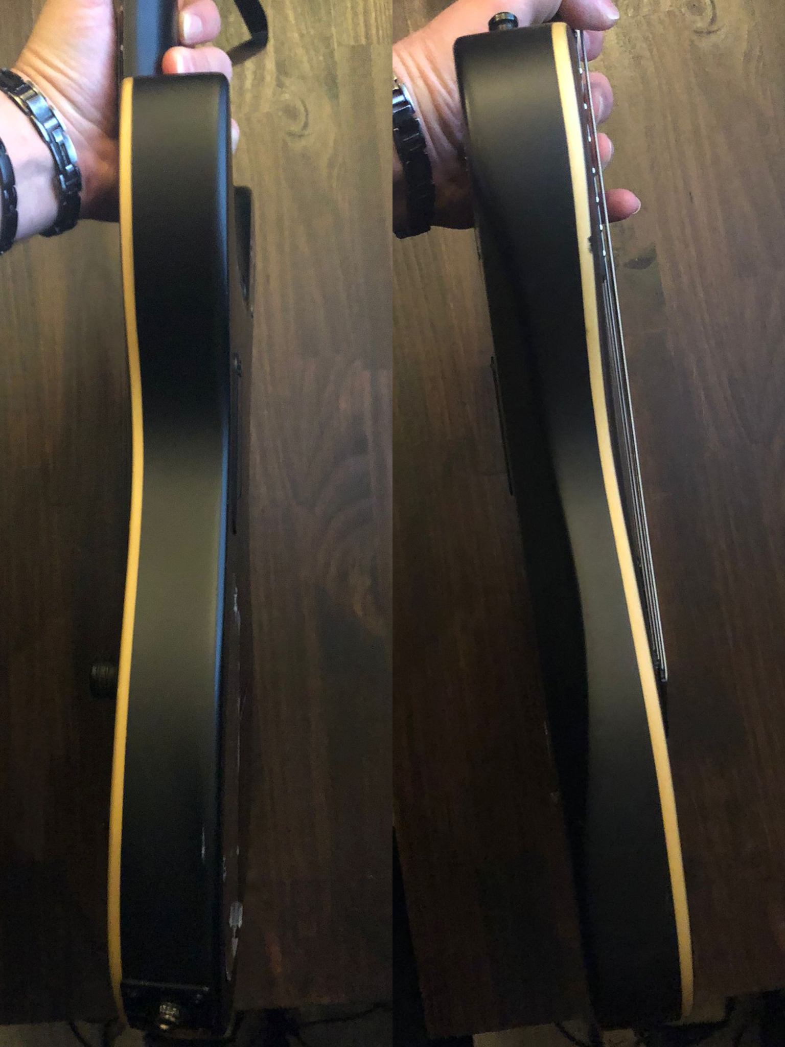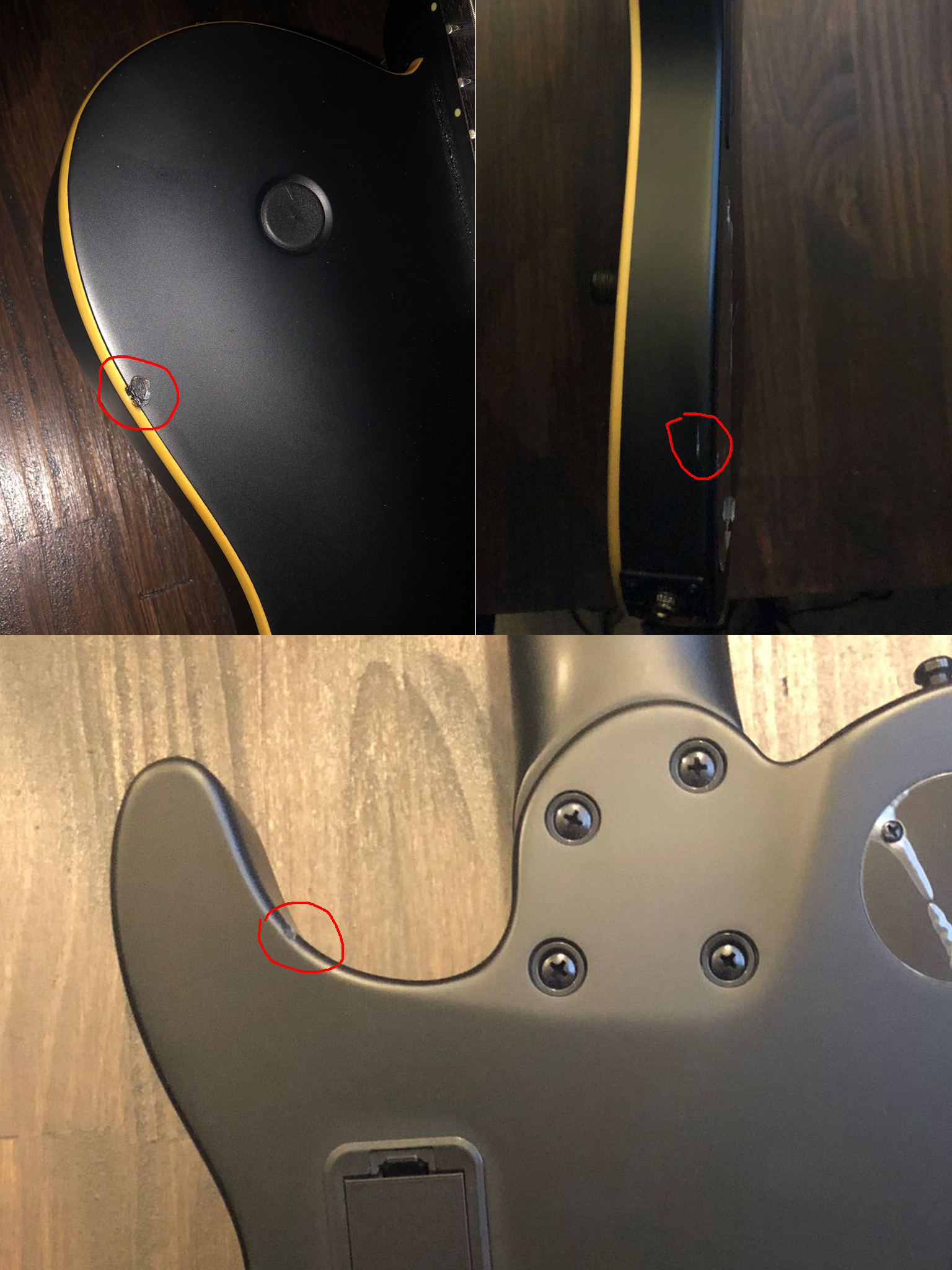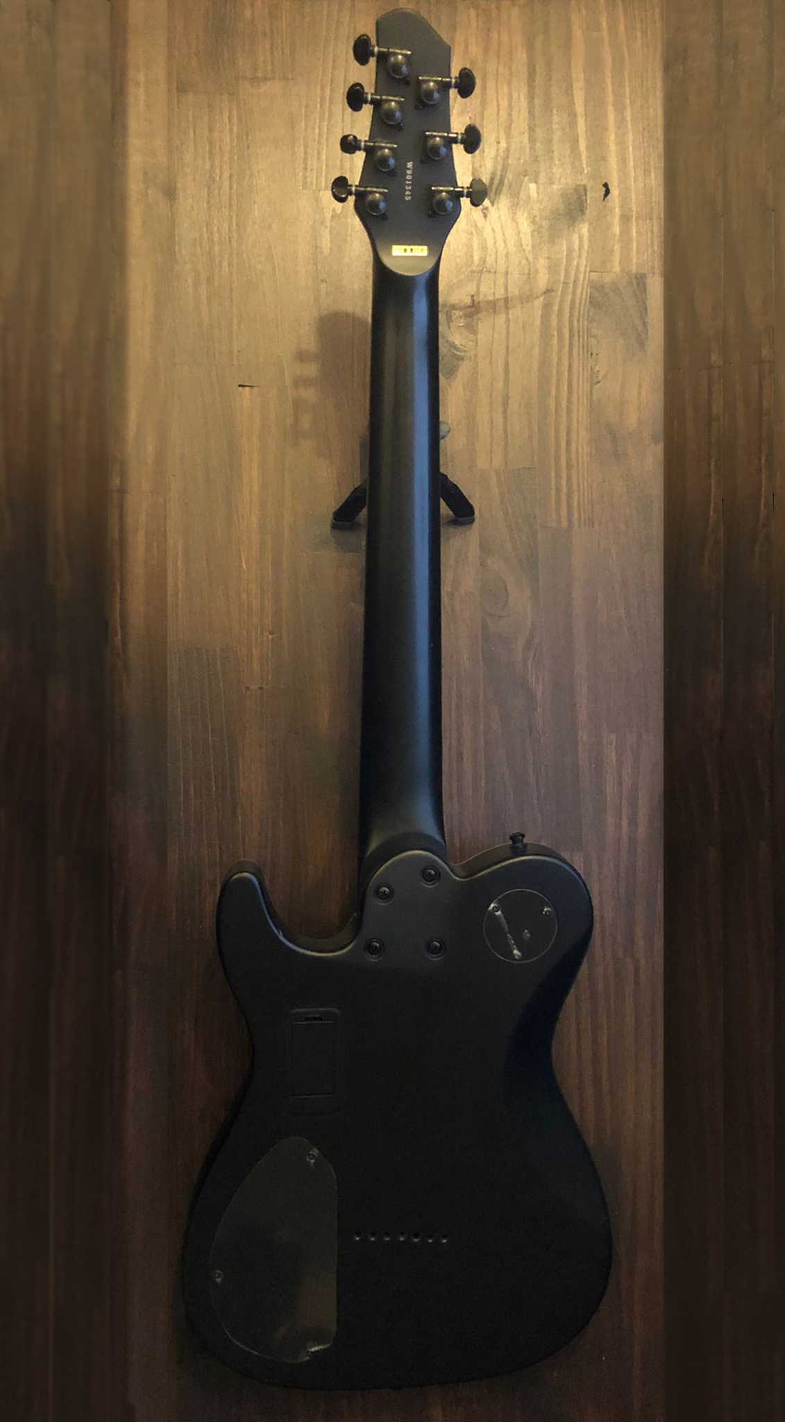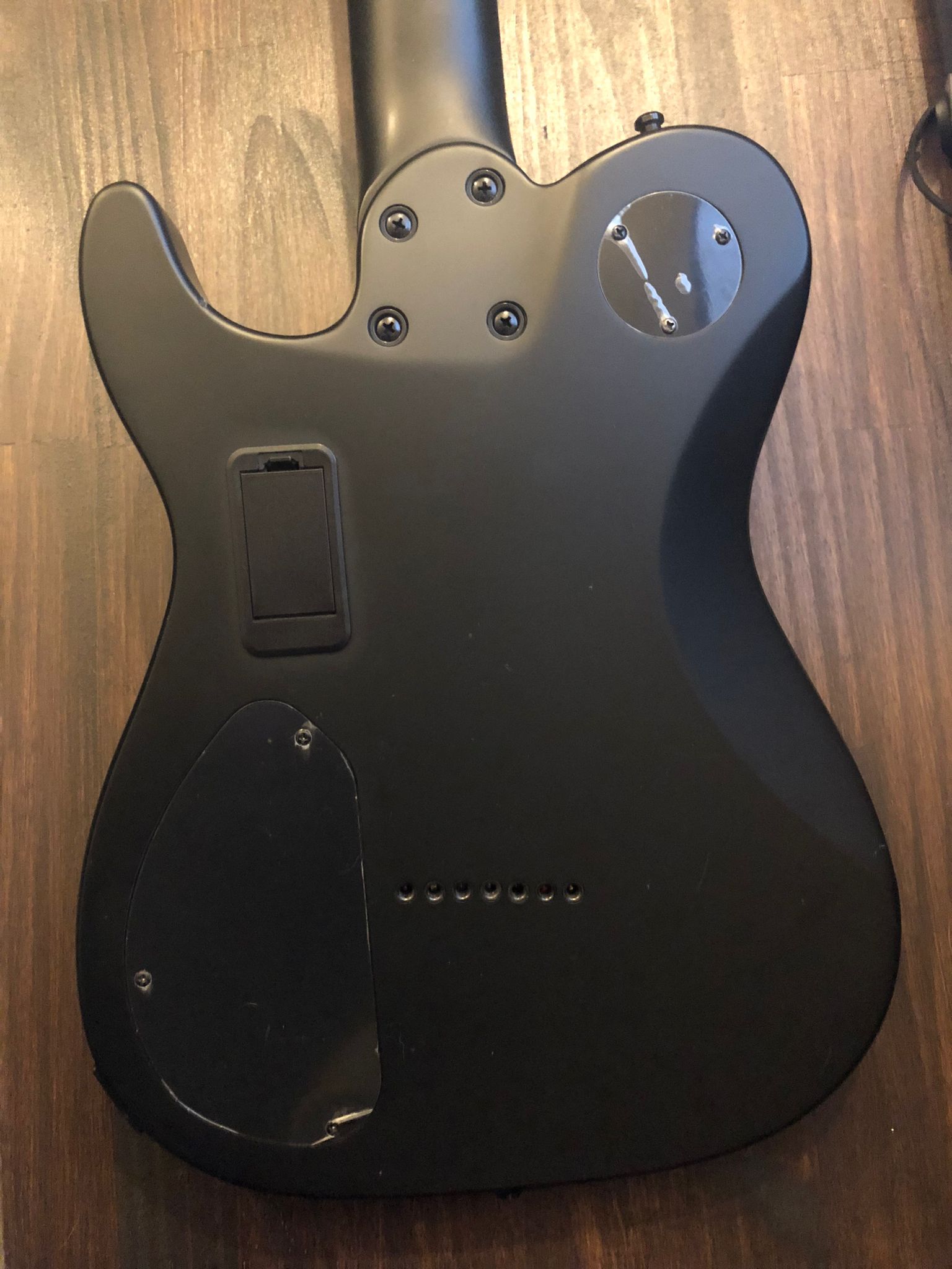 D'origine livrée avec un fishman fluence, la trappe pour pile 9v est restée vide à l'arrière et un des trous d'un ancien selecteur (en haut du corps) a été bouché de manière réversible.
