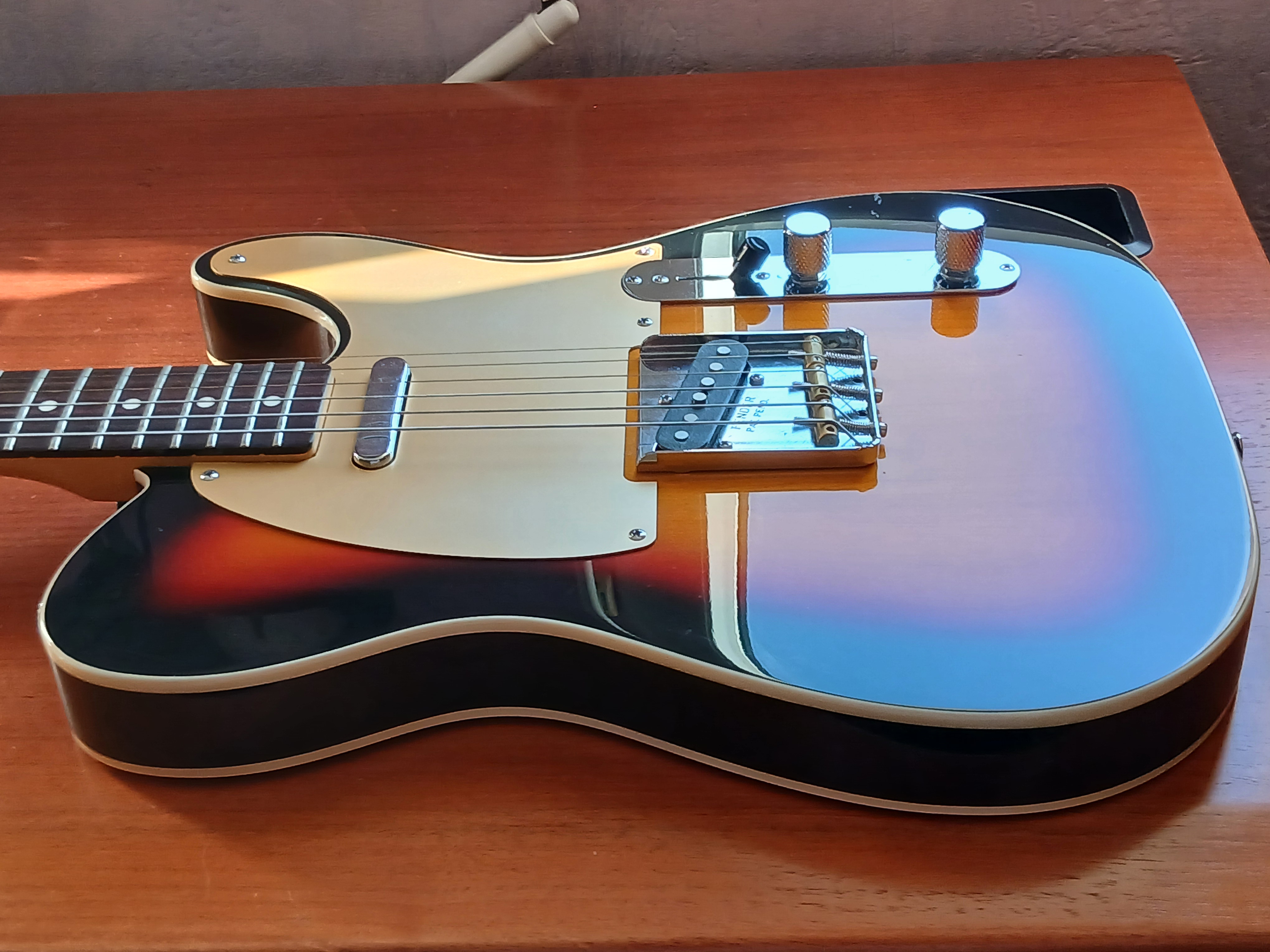 Excellente base pour un upgrade, surtout que le corps est très beau, j'ai depuis changé l'électronique pour le l'US et des CTS et les micros (wide range et SD Hot tele) et posé un Bigsby, elle a vraiment de la gueule et un super son !