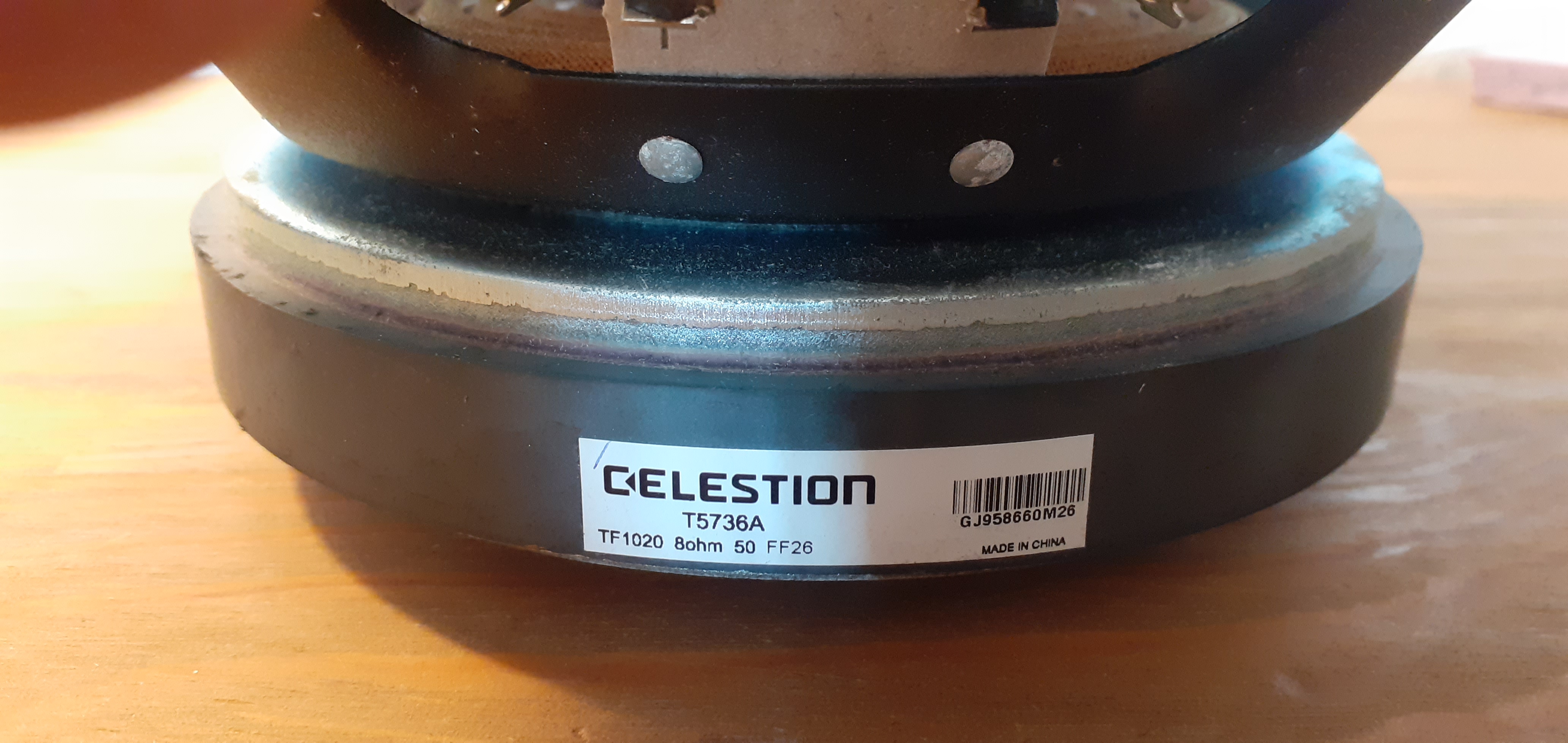 Je vends un haut-parleur Celestion TF 1020 en bon état. C’est un 10 pouces (25 cm) 8 Ohms, il développe 150W. C’est un haut-parleur qui a une bonne linéarité. Il peut s’utiliser pour la guitare et la basse ou comme enceinte de sonorisation.
