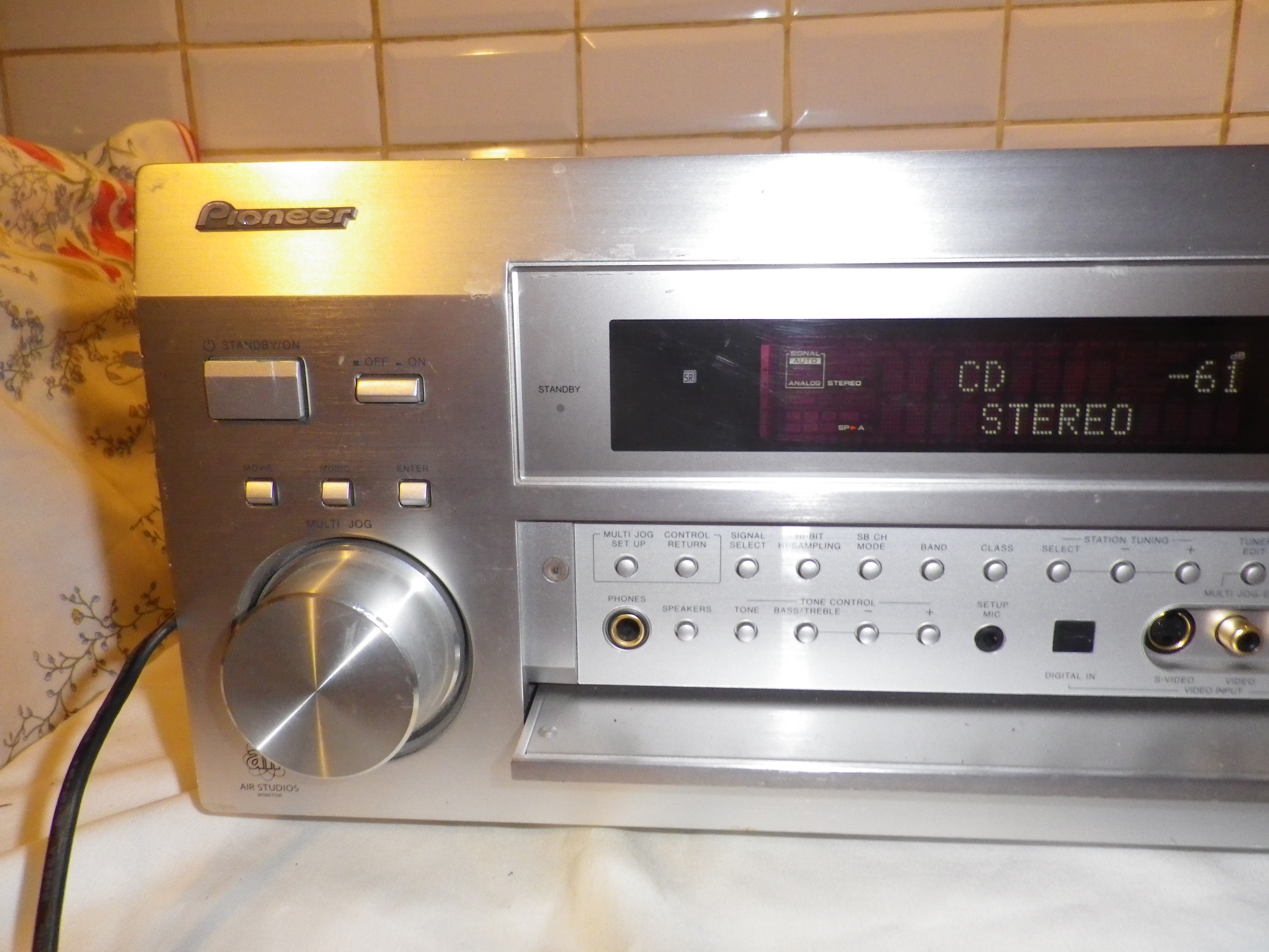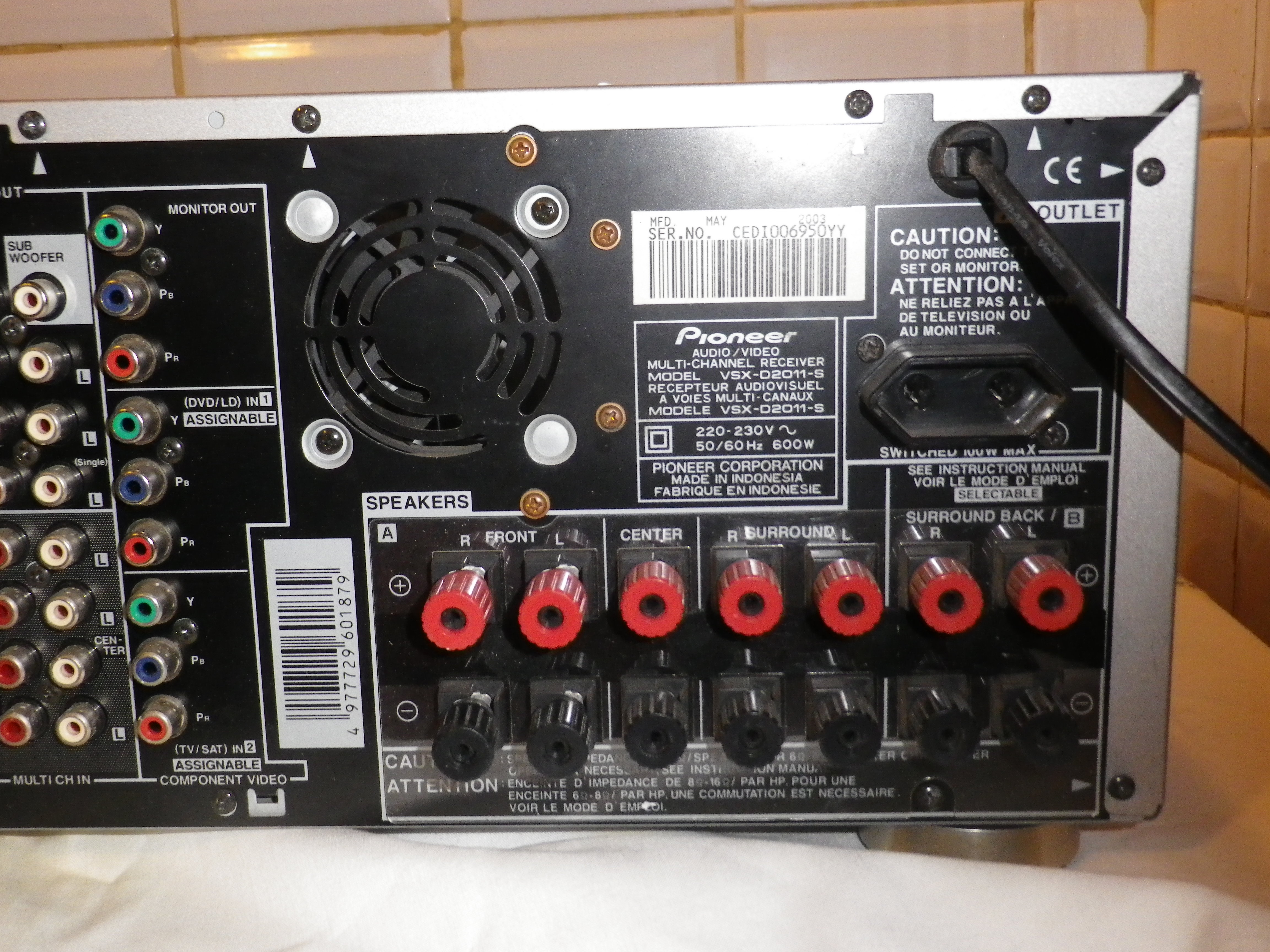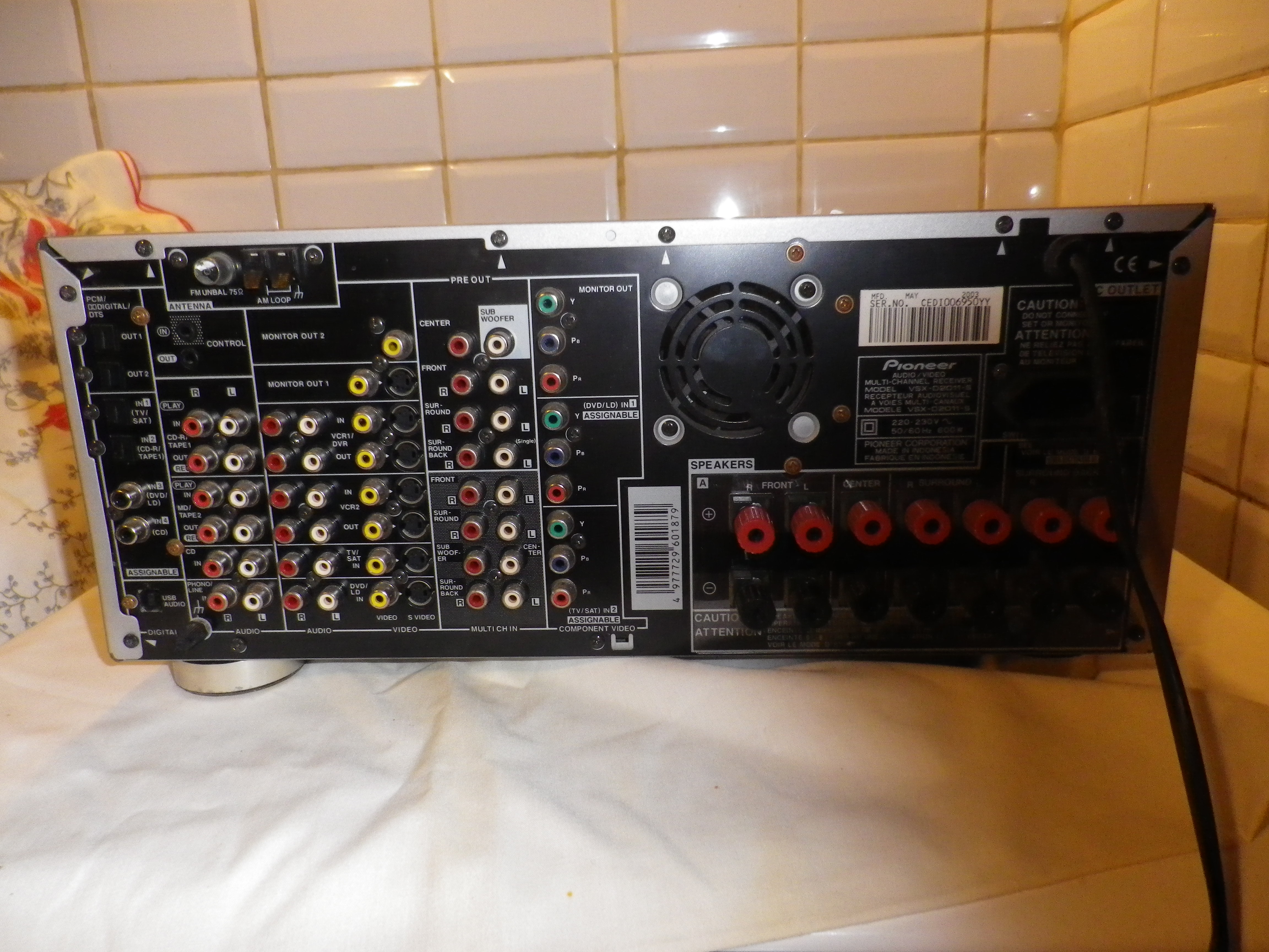 l'extraordinaire amplificateur radio Pioneer VSX-D2011 de 7 x 100 watts, compatible THX et DTS. Un appareil imposant de près de 20 kilos, doté d'une multitude de fonctionnalités, de réglages et de connectiques. télécommande inclus.