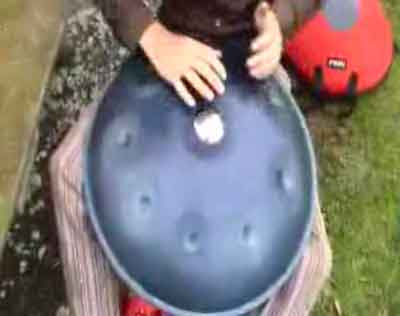 l'instrument etais a moitier ovale et rond it devait surement etre en metal et le gars donnait des petit coup de paume dessus ce qui fesait raisonné un son dans l'instrument
