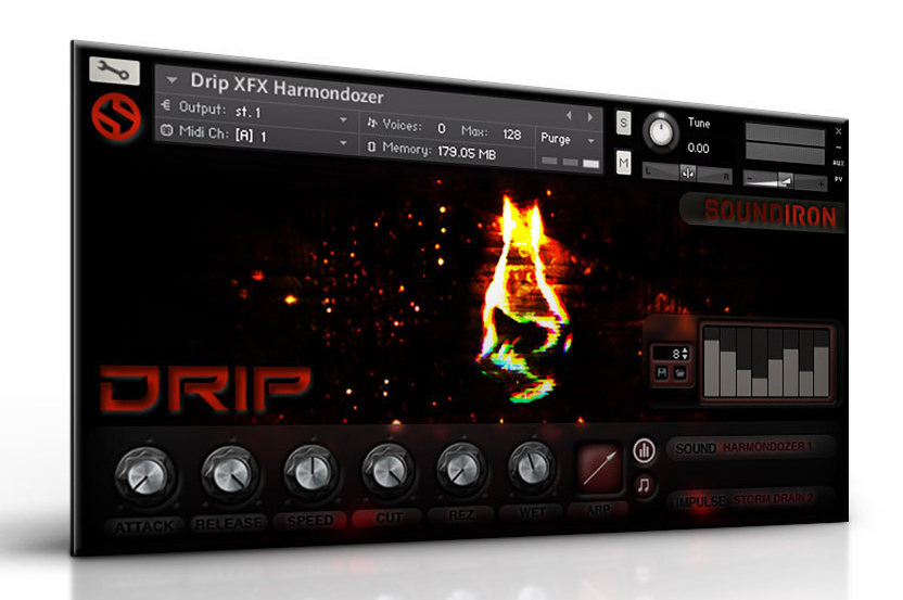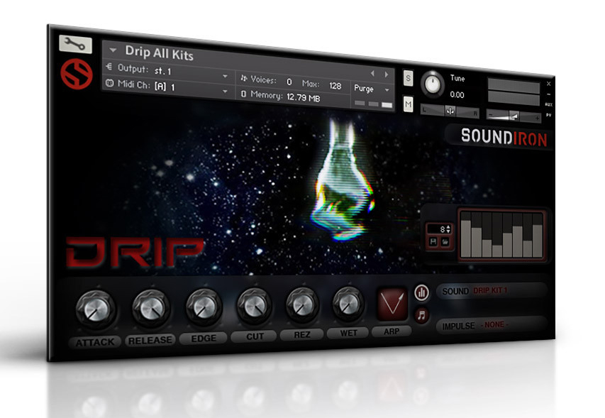 Drip requiert la version complète de Kontakt 5.1. La banque est vendue au prix de lancement de $19 au lieu de $35 pendant une période limitée sur soundiron.com.