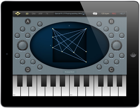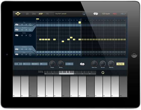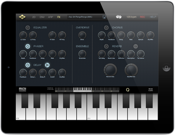 - Compatible CoreMIDI, Virtual MIDI, Audiobus (sortie), copier/coller de l’audio