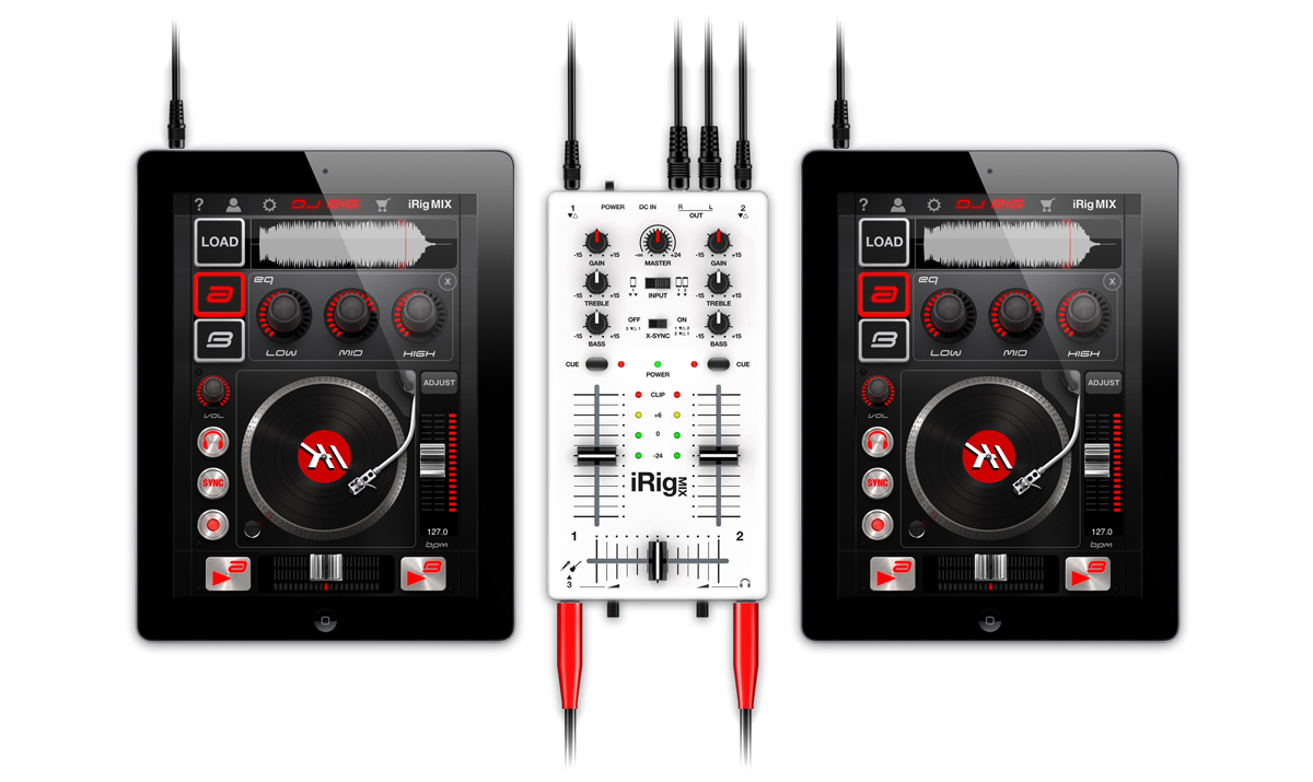 L’iRig Mix est livrée avec les applications AmpliTube, VocaLive, GrooveMaker et DJ Rig. Cette dernière est une solution de mixage incluant deux plateaux virtuels, l’accès instantané à la bibliothèque de l’iPhone, et des fonctions de synchronisation au tempo X-Sync, d’enregistrement et une palette d’effets DJ. La fonction X-Sync permet de synchroniser automatiquement l’audio joué dans l’appli avec n’importe quelle source audio externe.