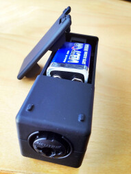 En vis-à-vis de ce dernier, on trouve sur le côté gauche un connecteur au format minijack qui permet, via le câble fourni, de disposer d’une entrée MIDI sur DIN 5 broches. Mine de rien, nous sommes bien en présence de la première interface audio/MIDI ultraportable pour iOS. Bien joué IK !En effet, l’alimentation fantôme qui permettra de se servir un micro statique ne provient pas de l’iDevice mais d’une pile 9 volts dont le compartiment se trouve au dos de l’appareil, cependant qu’un petit switch permettant de l’activer ou de la désactiver se situe sur la côté droit de l’iRig Pro.