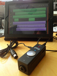 Du côté MIDI, rien à redire, ce qui n’a rien d’étonnant vu qu’IK s’était déjà fendu d’une interface dédiée. La seule réserve qu’on pourrait émettre de ce côté est plus d’ordre conceptuel : histoire de rester dans l’ultra-nomade, on adorerait pouvoir brancher un mini clavier comme l’iRig Keys ou encore un Korg MicroKey ou Nanokey. Or, ces derniers sont dépourvus de connectique DIN 5 broches et se contentent pour l’énorme majorité d’une simple prise USB. Du coup, le recours à la connectique DIN traditionnelle implique d’utiliser des claviers autrement plus imposants (M-Audio Oxygen8 par exemple qui est énorme pour un 25 touches), ce qui fait perdre son côté nomade à la solution. Il aurait été donc plus judicieux d’offrir un connecteur USB à l’iRig Pro lui permettant de gérer un iRig Keys. Mais le prix comme la taille de l’appareil s’en seraient forcément ressentis.