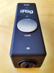 Reprenant le look de la série iRig, cette version Pro est sensiblement plus grosse que l’iRig HD que nous avions précédemment testée, principalement à cause de la connectique qui substitue au Jack 6,35 mm de l’iRig HD un connecteur hybride Jack/XLR. Ce dernier permettra donc de connecter une guitare ou une basse (entrée haute impédance), mais aussi n’importe quel signal de niveau Ligne (un clavier par exemple) ou un micro, quel que soit son type, vu qu’une alim fantôme est présente sur l’appareil, laquelle explique aussi l’embonpoint de cette version Pro par rapport à la HD.