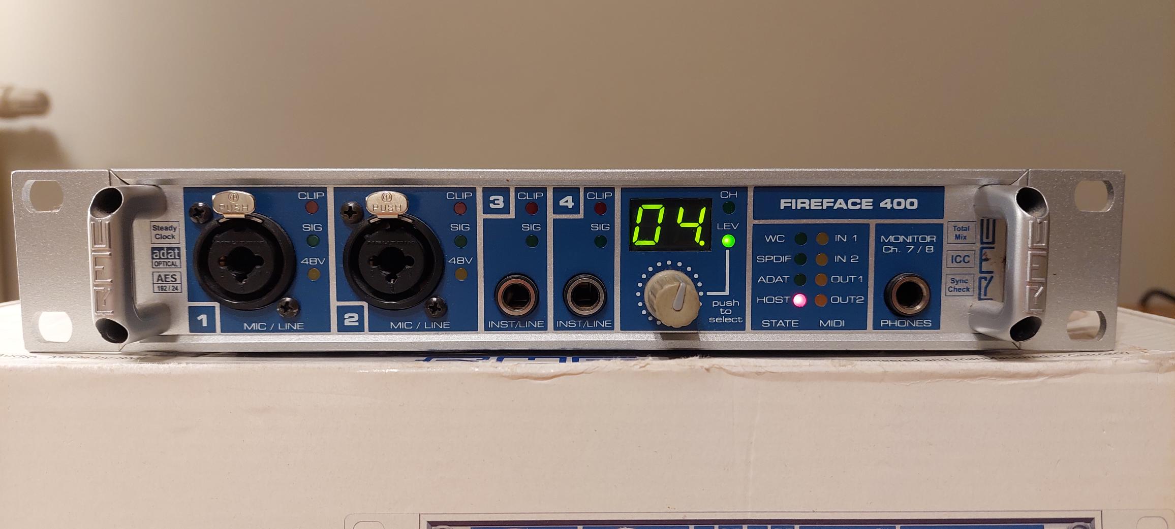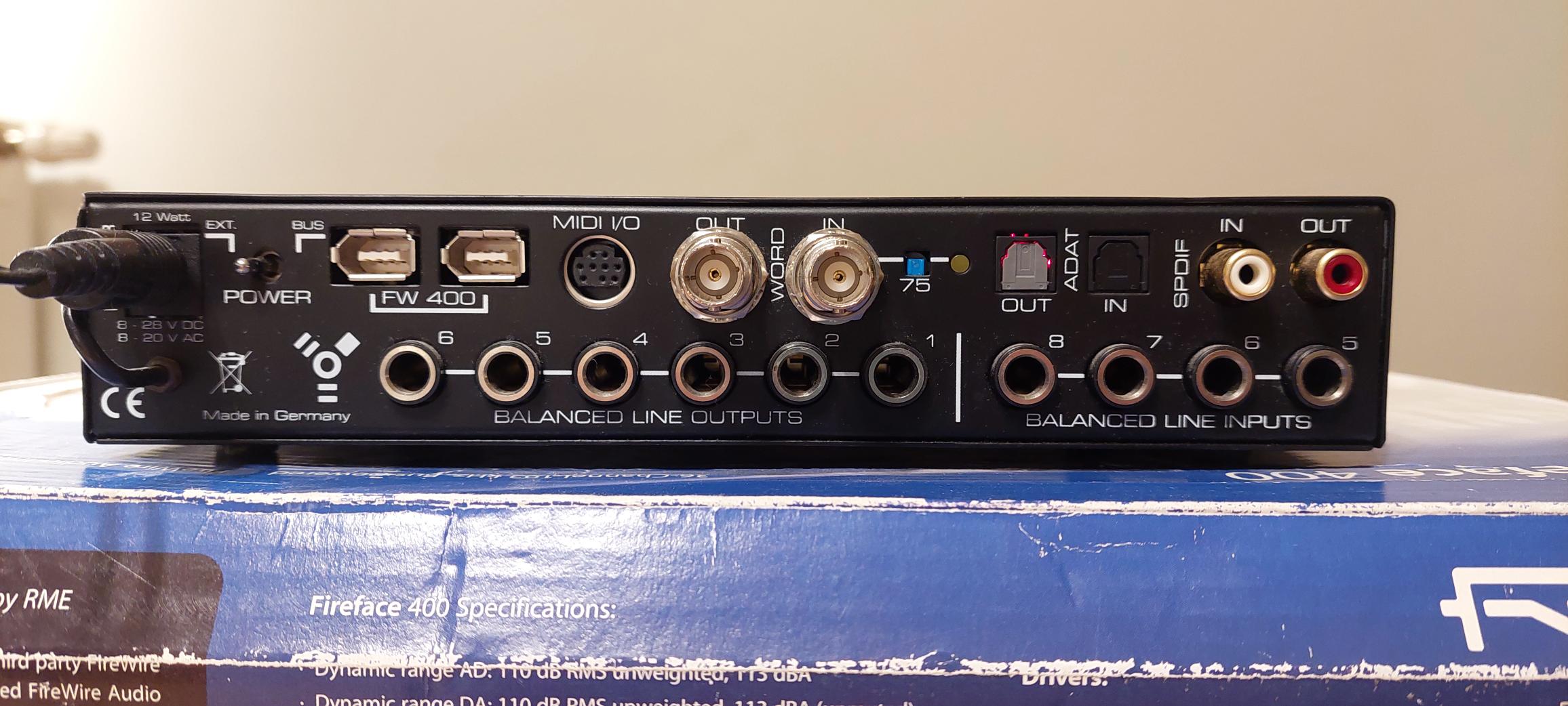 Je vends cette interface audio RME Fireface 400, un excellent choix pour les enregistrements et la production audio professionnelle. Peut être utilisée avec un PC/MAC (ou en stand alone)il existe des adaptateurs si vous n'avez pas de Firewire et des drivers récents..