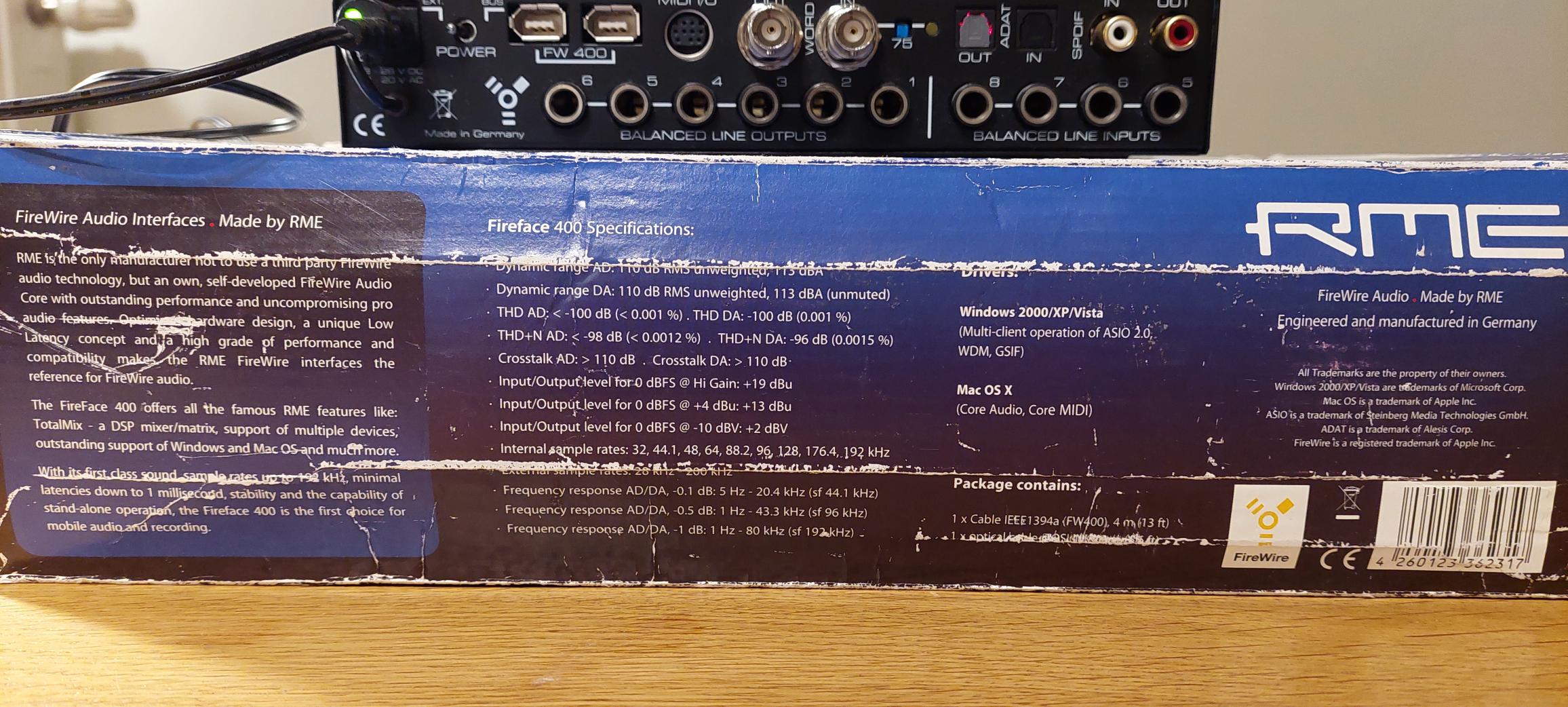 RME Fireface 400 Carton son exceptionelle