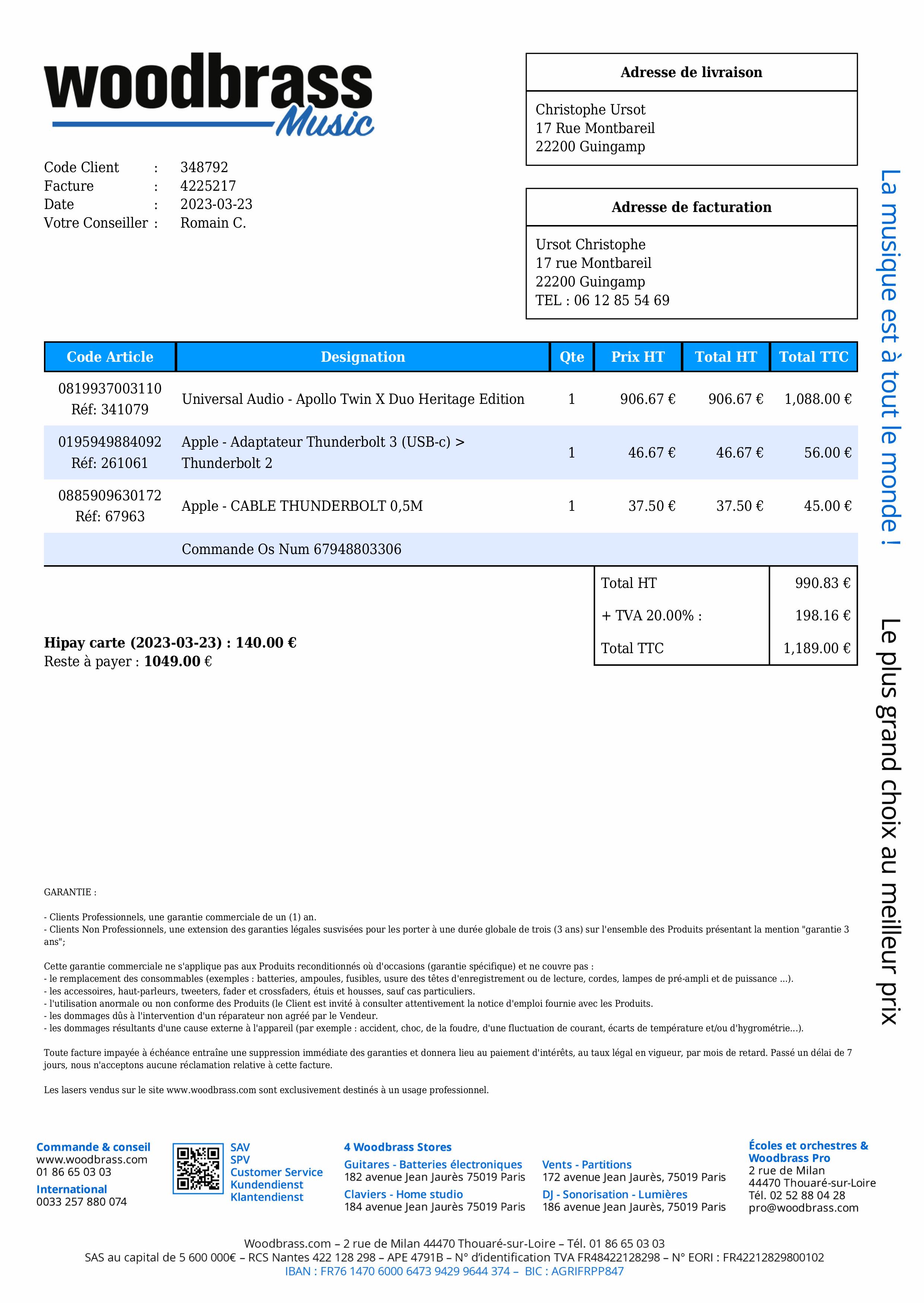 Vous trouverez la liste des Plug-In dans les photos que j'avais étoffée après achat.