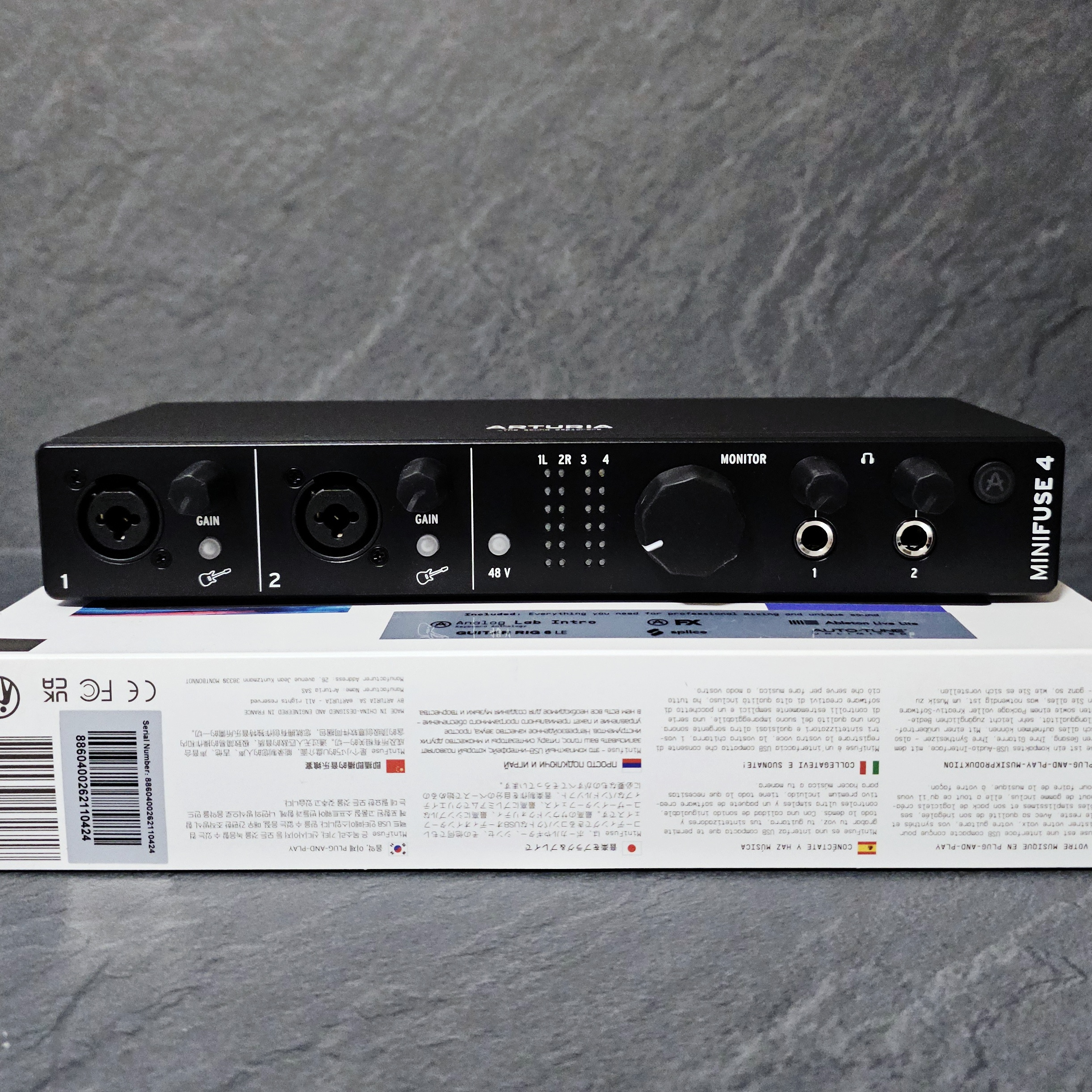 Je vends mon interface audio Arturia Minifuse 4, état neuf et impeccable sans traces ni rayures, sous garantie, dans son emballage d'origine avec câbles usb et alimentation d'origine.Achetée le 01 Nov 2025, elle n'a servi que 3 fois dans une pièce non fumeur (débutant home studio), fonctionne parfaitement, et n'a été activée qu'une fois sur le site officiel Arturia (il reste 4 enregistrements / activation).