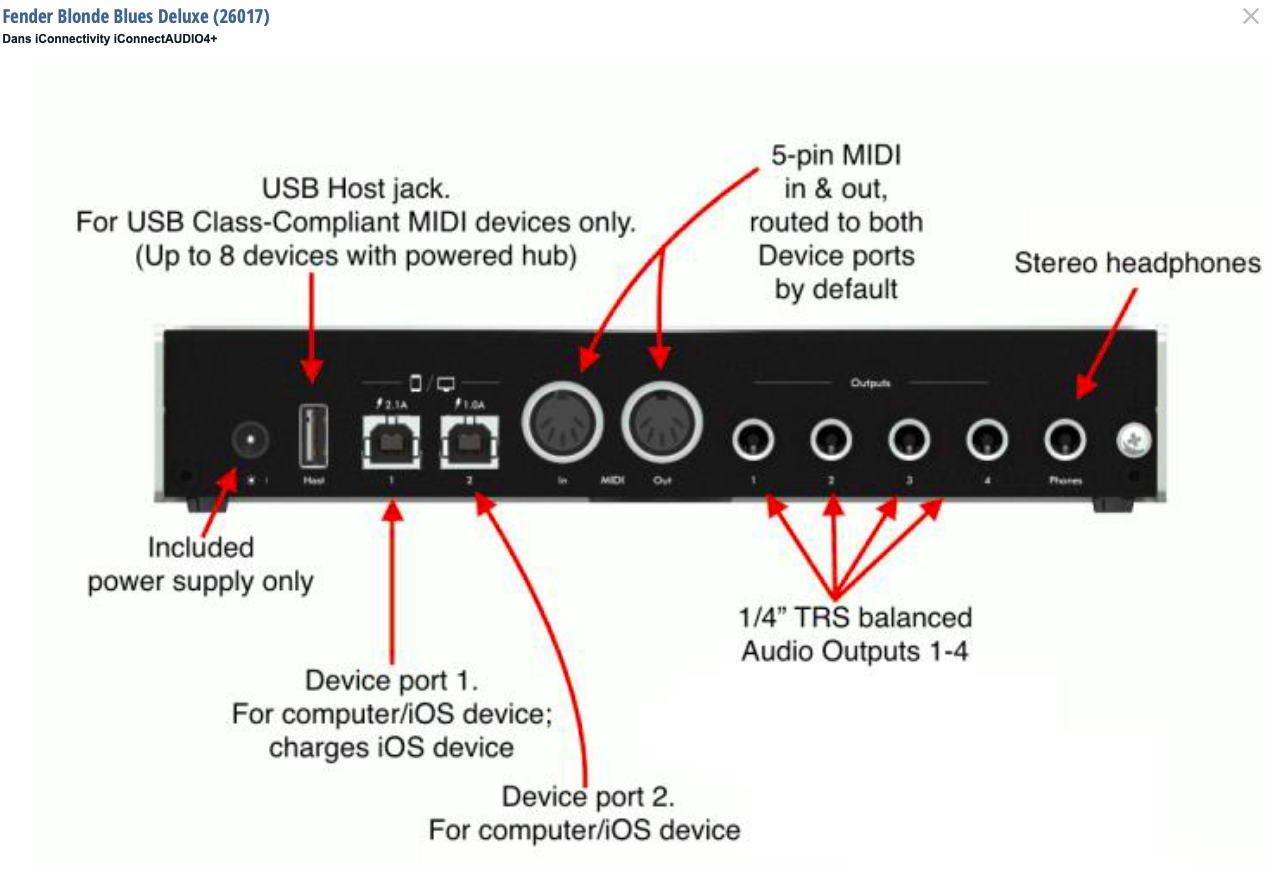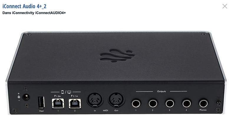 Cause double emploi, je vends une interface audio iConnectivity iConnectAudio 4+ en excellent état, n'a pas quitté le studio (non fumeur).Interface polyvalente stable et de qualité audio reconnue (voir la presse spécialisée et audiofanzine), idéale pour la MAO, le home-studio, les configurations hybrides ordinateur / iPad / iPhone, ou les setups multi-machines.