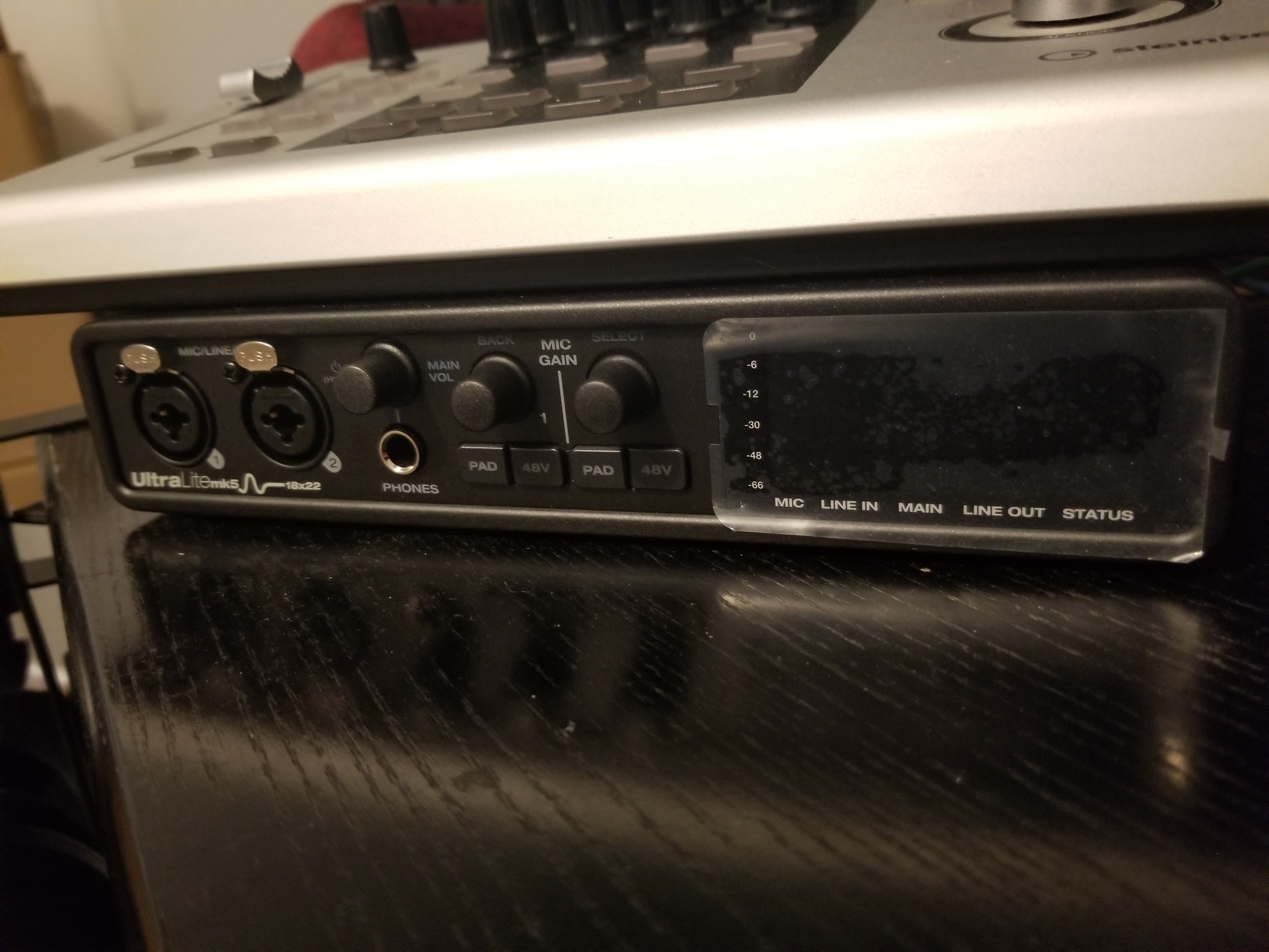 Affichage LED des niveaux, état MIDI, fréquence d’échantillonnage