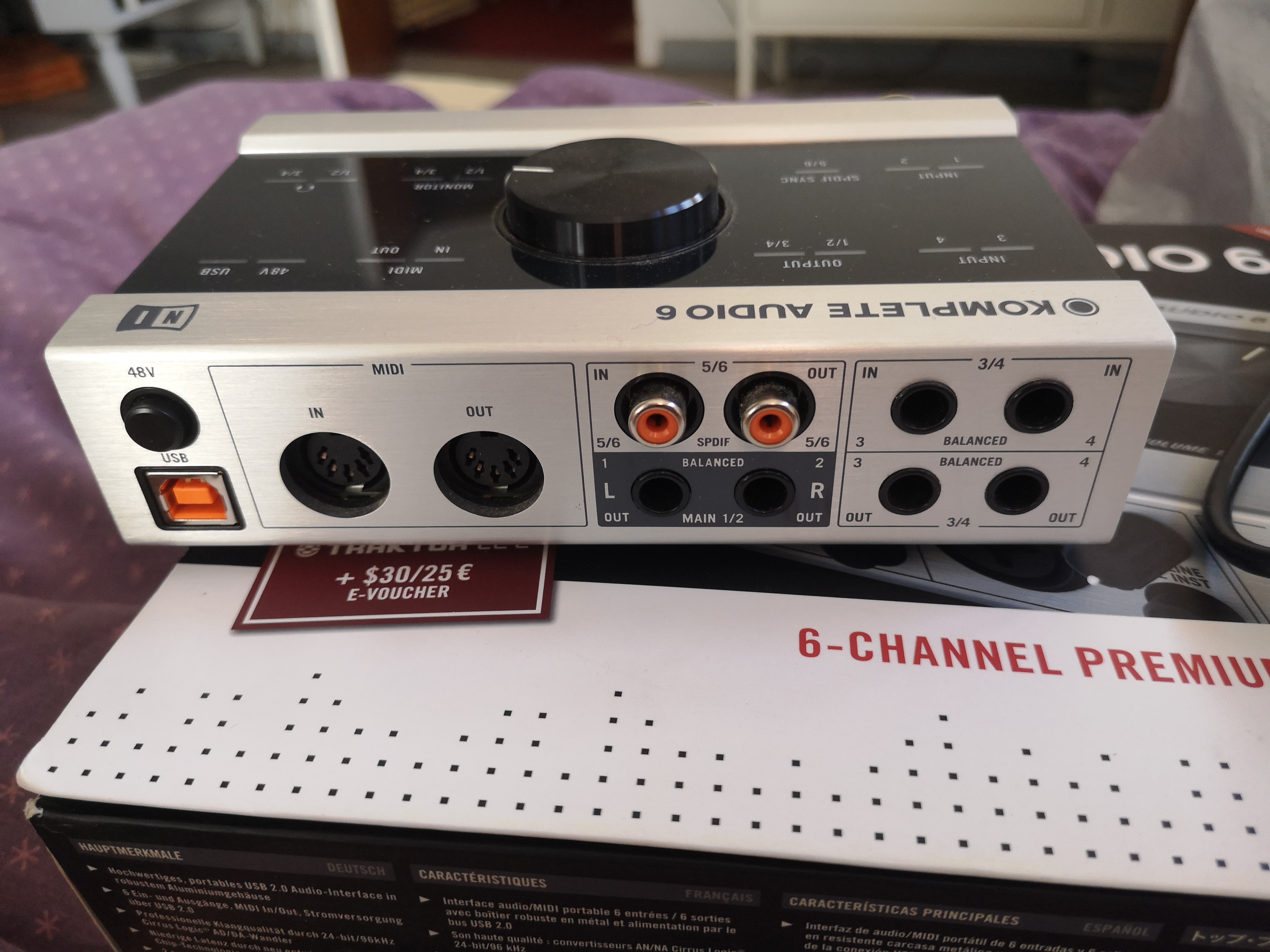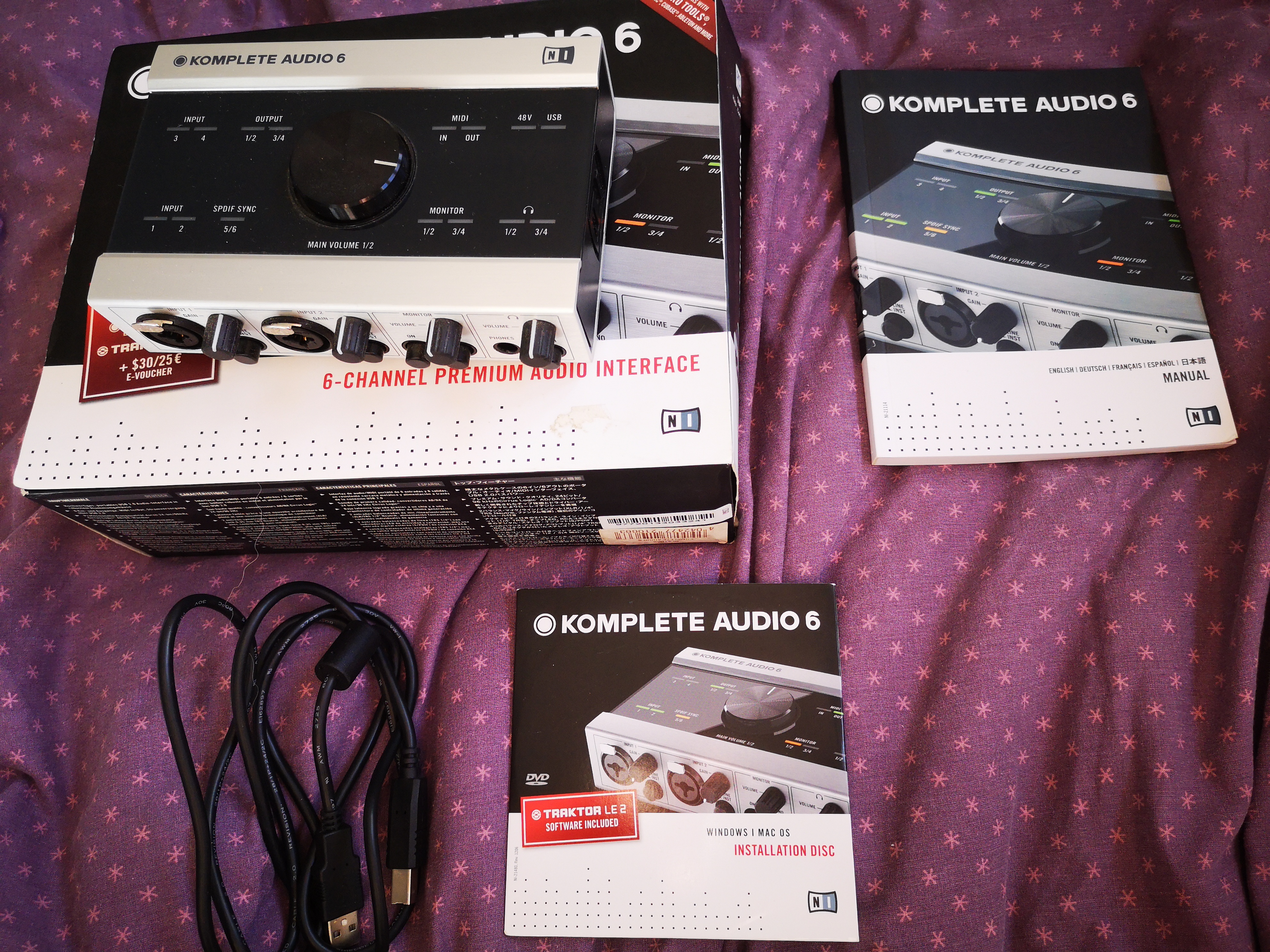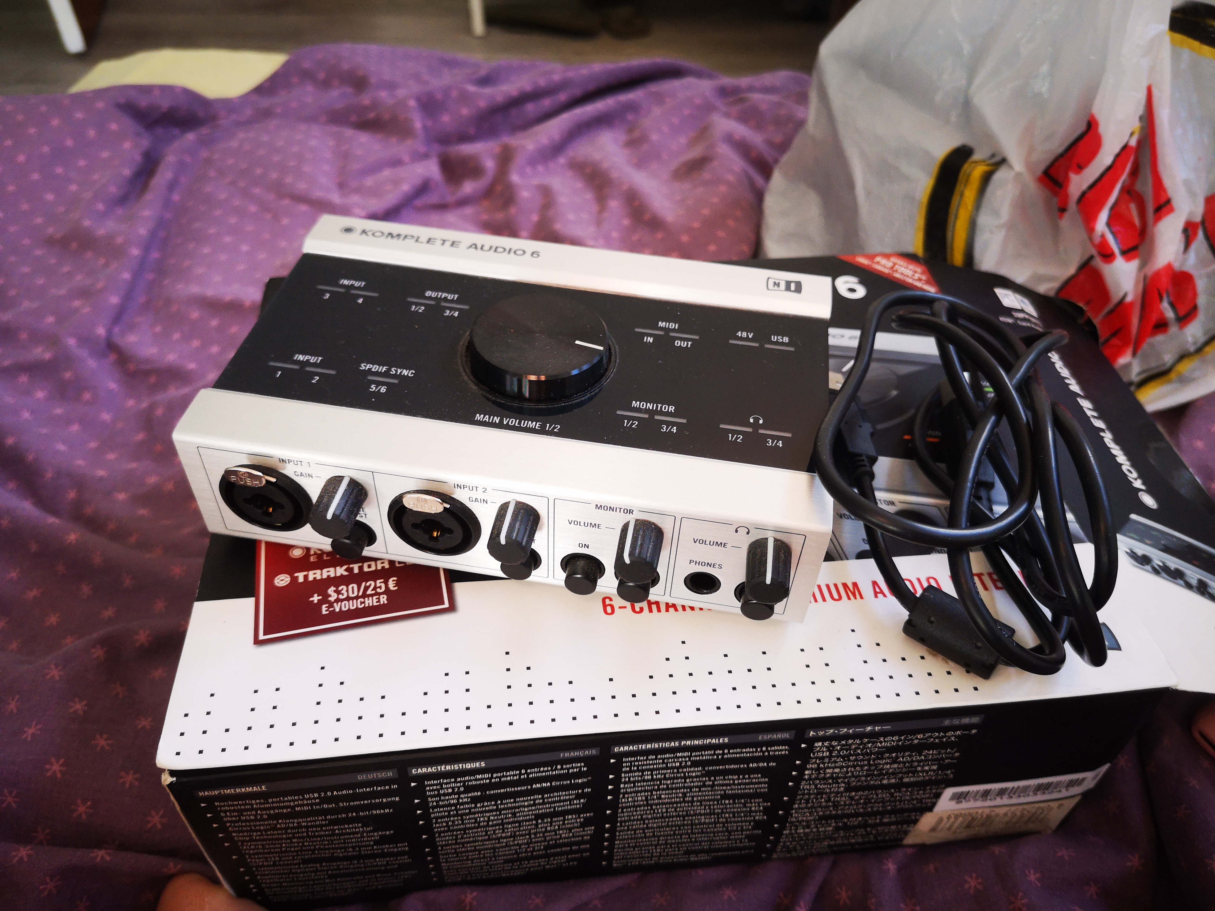 Carte son de chez Native Instrument, Komplete audio 6 première version, super état, câble USB, boite, cd d'installation et mode d'emploi, très peu servie
