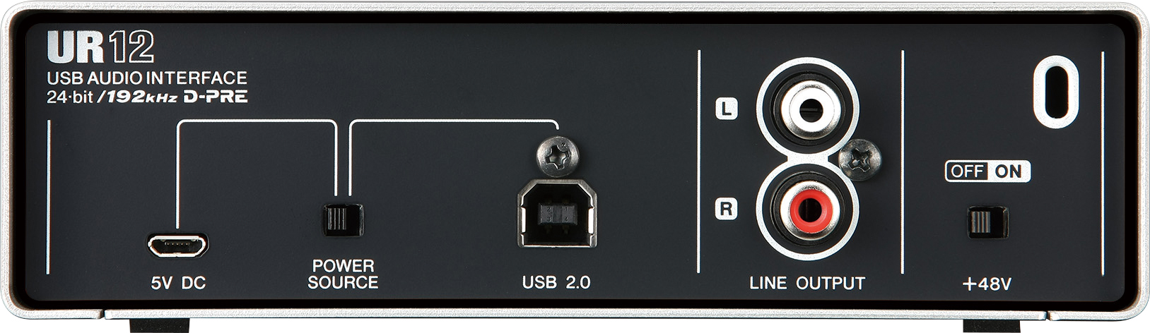 L’UR12 supporte des résolutions audio allant jusqu’à 24-bit et 192kHz, vous pourrez la brancher à votre Mac, PC ou votre iPad via le kit de connexion USB d’Apple ou un adaptateur compatible. Elle est alimentée par le port USB, un port mini-USB est également disponible pour l’alimentation lorsque vous utilisez l’UR12 avec un iPad.